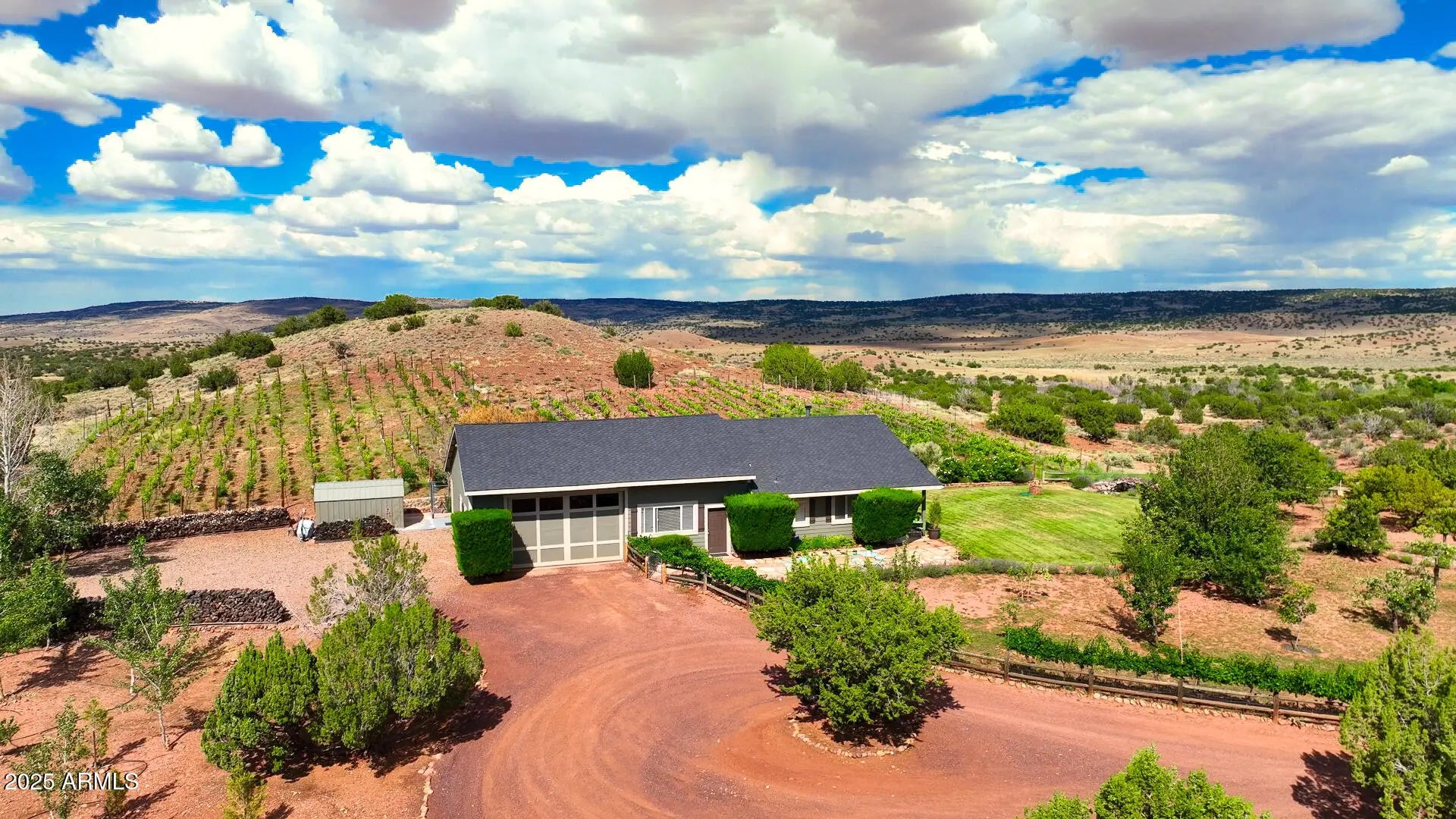 PRICED WELL BELOW THE APPRAISAL COMPLETED IN 2024, THIS ONE OF A KIND PROPERTY HAS ENDLESS POSSIBILITIES!! Combining the Red Rock Bluffs of Sedona and the Lavender Fields and Vineyards of Provence in Southern France, welcome to this established 21 year old vineyard and lavender farm at an elevation of 6,100 feet and over 120 fenced acres is up for sale for the first time! This Estate will provide you everything you could imagine and more. Cottonwoods, Red rock bluffs, stocked fish ponds with docks, water features, barns, a greenhouse and over 12,000 producing vines, 35,000 lavender plants and over 60 developed fruit trees, this lush oasis is an absolute dream away from it all. Although an active turnkey operation as it sits, the capabilities for expansion are endless! (MORE!) Online and on property, active wine and lavender sales. Four kitchens and eight barbecues on site, entertaining and serving others is abundant. All structures are built to be virtually maintenance free with the elements in mind. Each structure has its own septic system and 3 industrial built wells (grandfathered water rights) pumping over 40 GPM. Purchase as it sits to expand as you wish, or as a packaged business. The time has come for you to have your own tasting room, wine label, lavender aromatherapy brand and so much more. With the underground power, fiber optics, heating and cooling, water rights, and multiple structures built, this one of a kind compound is unmatched!