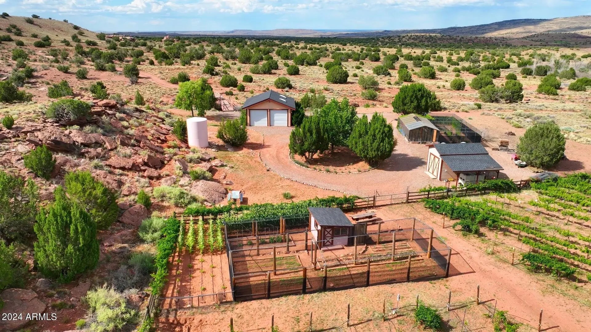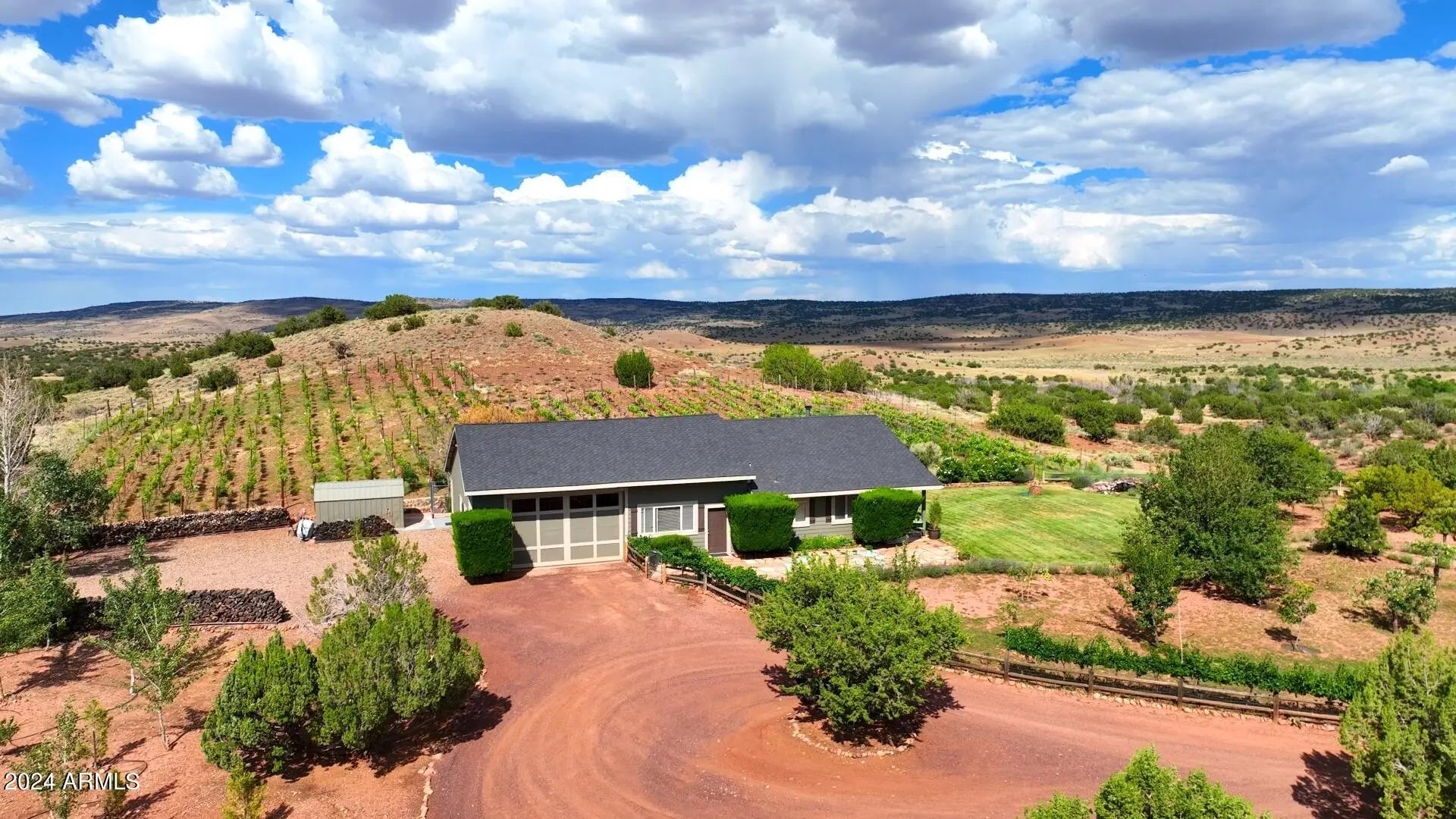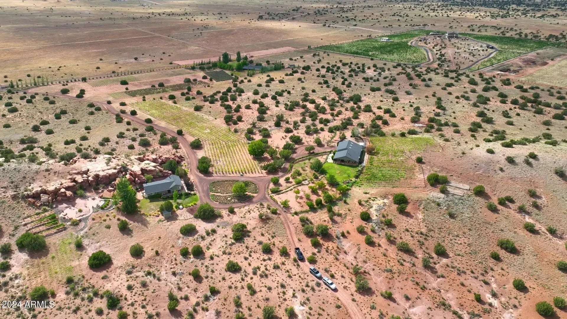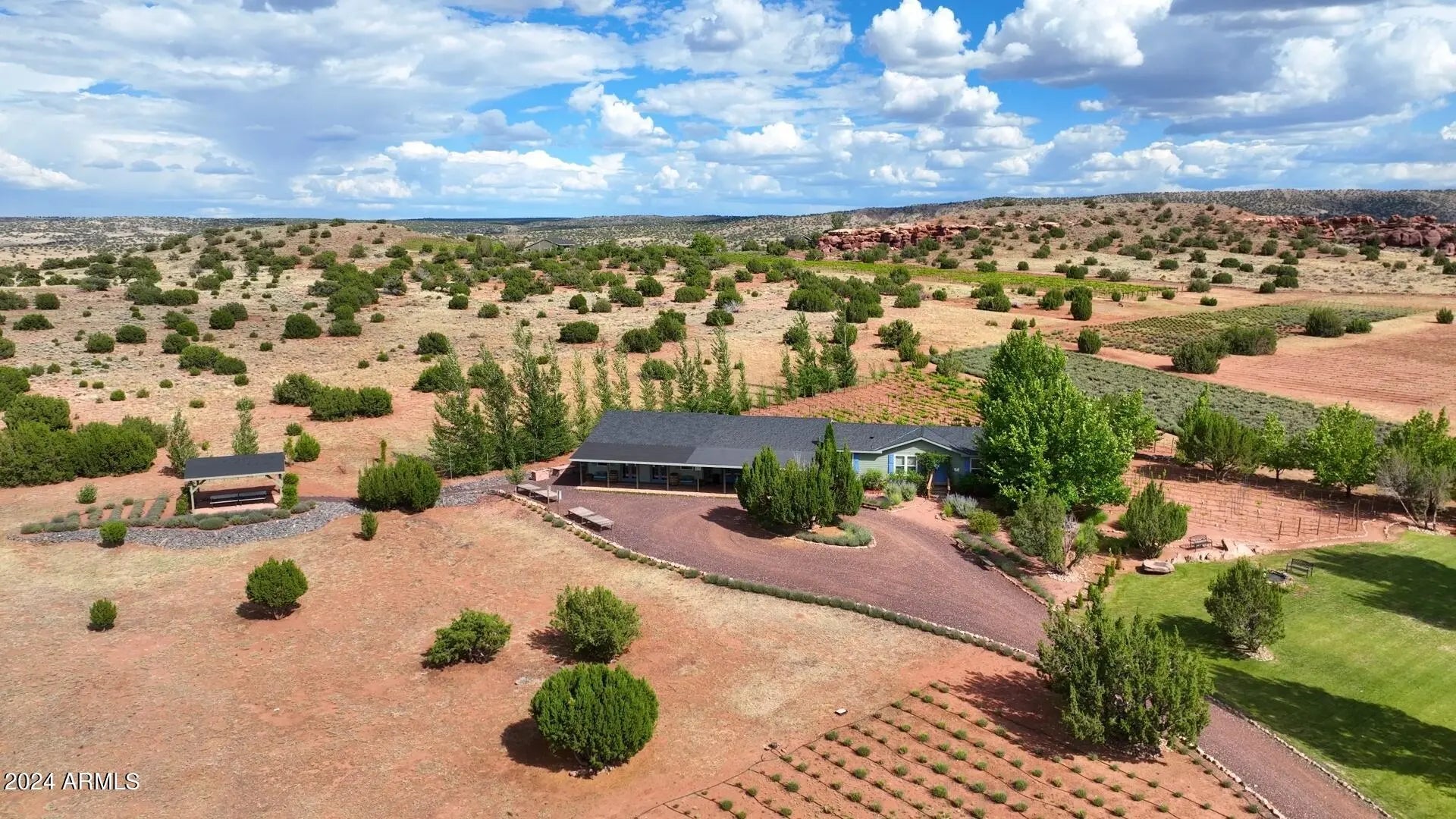 PRICED WELL BELOW THE APPRAISAL COMPLETED IN 2024, THIS ONE OF A KIND PROPERTY HAS ENDLESS POSSIBILITIES!! Combining the Red Rock Bluffs of Sedona and the Lavender Fields and Vineyards of Provence in Southern France, welcome to this established 21 year old vineyard and lavender farm at an elevation of 6,100 feet and over 120 fenced acres is up for sale for the first time! This Estate will provide you everything you could imagine and more. Cottonwoods, Red rock bluffs, stocked fish ponds with docks, water features, barns, a greenhouse and over 12,000 producing vines, 35,000 lavender plants and over 60 developed fruit trees, this lush oasis is an absolute dream away from it all. Although an active turnkey operation as it sits, the capabilities for expansion are endless! (MORE!) Online and on property, active wine and lavender sales. Four kitchens and eight barbecues on site, entertaining and serving others is abundant. All structures are built to be virtually maintenance free with the elements in mind. Each structure has its own septic system and 3 industrial built wells (grandfathered water rights) pumping over 40 GPM. Purchase as it sits to expand as you wish, or as a packaged business. The time has come for you to have your own tasting room, wine label, lavender aromatherapy brand and so much more. With the underground power, fiber optics, heating and cooling, water rights, and multiple structures built, this one of a kind compound is unmatched!