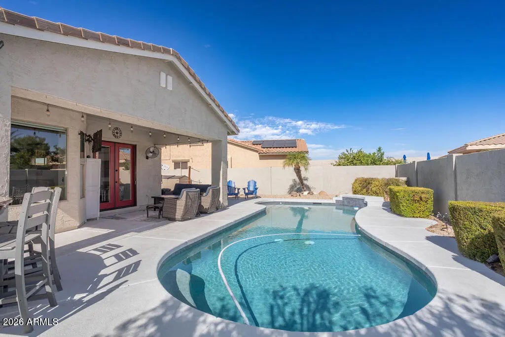 Check out this lovely home in PRIME CHANDLER LOCATION! This single level, 2334 sf, 4 bedroom home offers about everything you could possibly need. Open concept floorpan, eat-in kitchen featuring stainless steel appliances, granite countertops, island w/ barstool seating, walk-in pantry and breakfast nook. Primary suite includes soaking tub, separate walk-in glass shower, and large walk in closet. This home sits on a nice cul-de-sac lot and is a great home for entertaining! East facing backyard has pebble-tec pool, built-in BBQ w/ bar seating, and mini fridge and covered patio with misting system and speakers. Charming curb appeal with paver slab for additional parking at RV gate and slab behind gate for all your toys! Garage features epoxy floors, built-in cabinets with workbench, and storage racks. All around GREAT HOME and Chandler Excelling Schools.