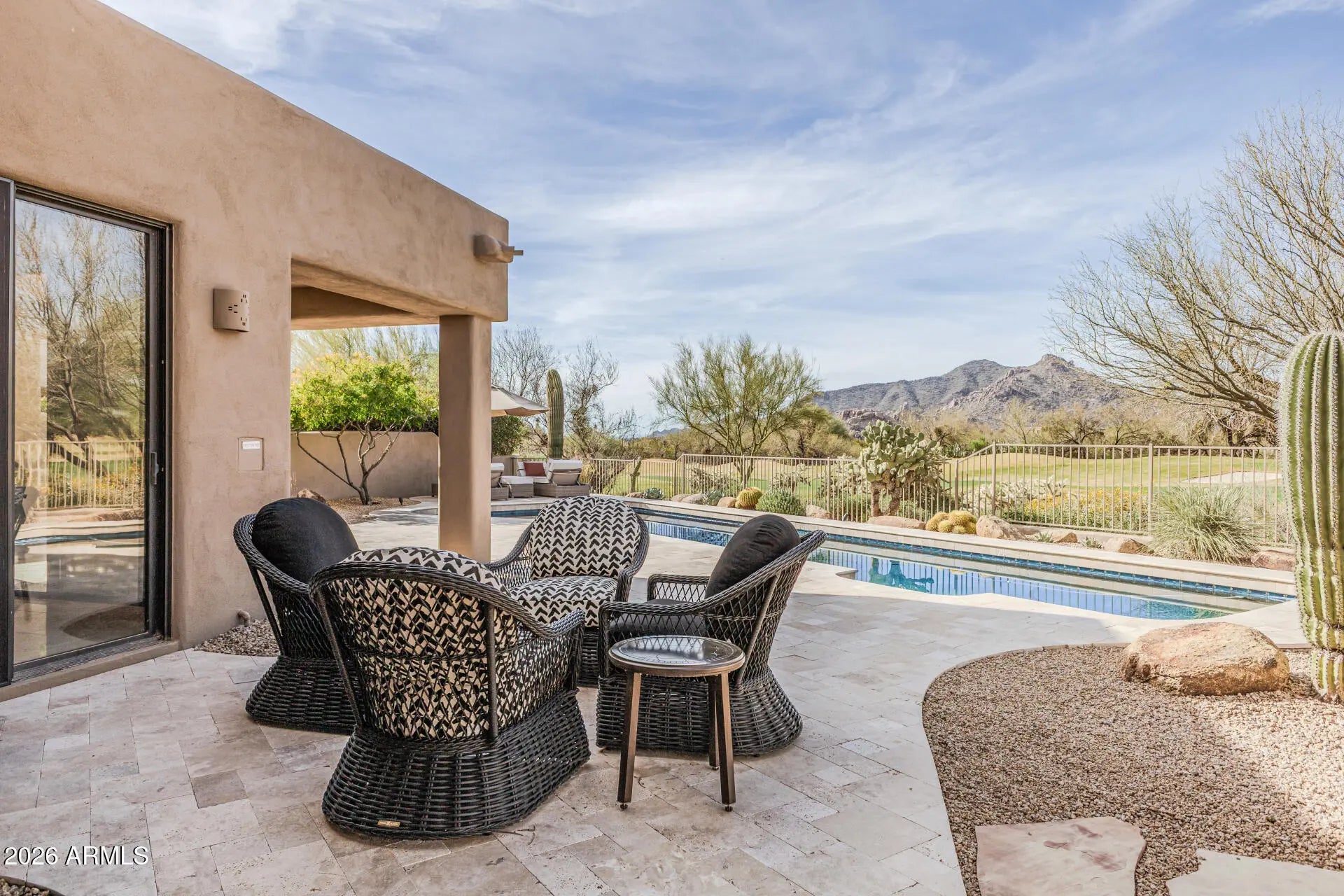 Turn-key luxury in North Scottsdale with views of Black Mountain, golf course, and available furnished. This open-concept home offers seamless indoor-outdoor living with expansive windows to enjoy the views. The kitchen features granite, stainless appliances, and island overlooking breakfast area. The spacious primary suite with patio access, and generously sized guest rooms for privacy and comfort. Entertain at your private pool & BBQ at home or head to the community amenities to enjoy. This low-maintenance residence is ideal as a full-time home, lock-and-leave. This community offers world-class golf, tennis, pickleball, dining, and spa. Located minutes from upscale shopping, fine dining, hiking/biking & convenient access to Carefree/Cave Creek. Blending privacy, security, resort living