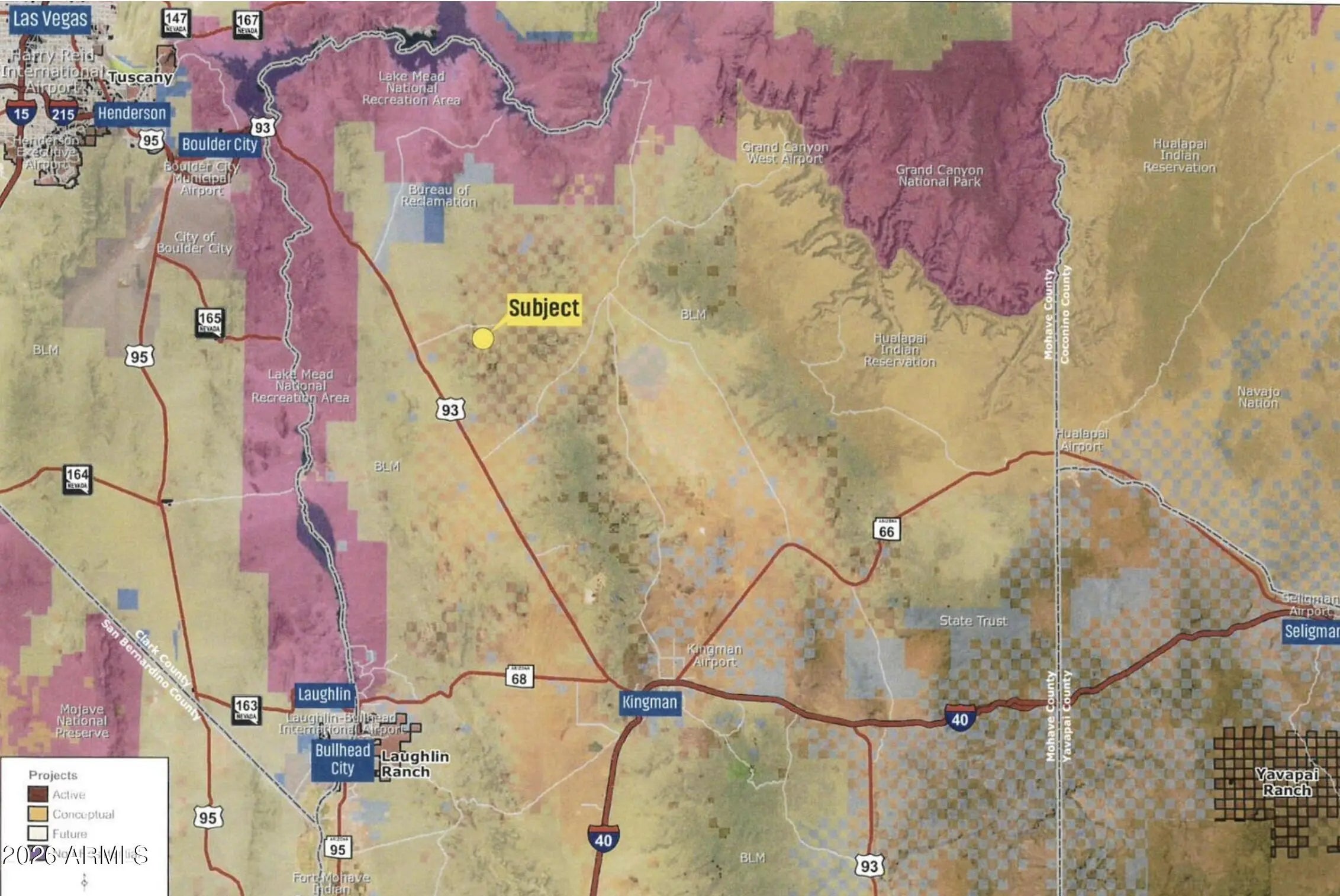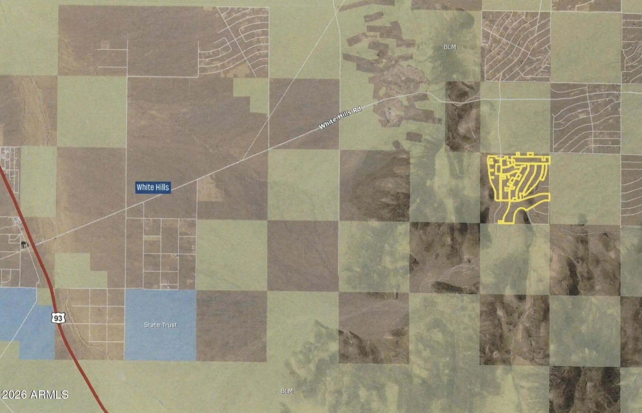 Welcome to White Hills, a Premier package of 282 Residential Zoned One +/- Acre Surveyed Lots. Situated just 50 miles from the vibrant city lights of Las Vegas, 280 miles from the heart of Los Angeles, and 250 miles from the metro city of Phoenix. Electricity close, zoned mixed use, residential, and commercial. The elevation is 3,000+/- feet, offering a pleasant climate and spectacular views of the surrounding mountains. The property is conveniently situated just off Highway 93, making it easily accessible. Level land imagines ease for development. Thriving developed subdivisions in the local area. Owner short term financing available!