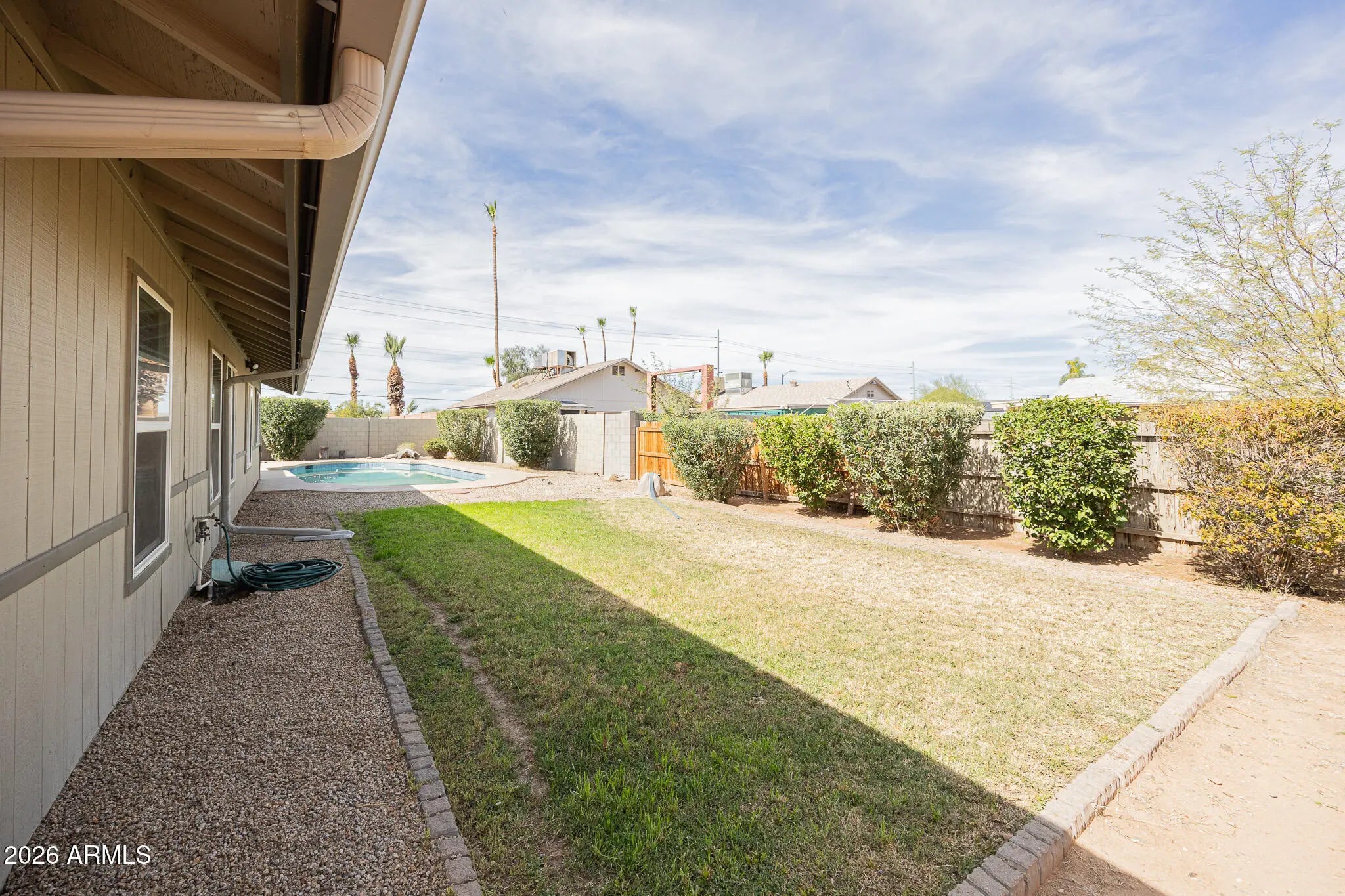 Welcome to this delightful 3/2 Phoenix house. Step inside and discover a harmonious blend of comfort and style, with tile and carpet flooring creating a cozy atmosphere. The spacious living room seamlessly transitions to a modern kitchen, bathed in natural light and offering a picturesque view of the large private swimming pool. The master bedroom is a true oasis with its ensuite bath and roomy walk-in closet. Cozy rooms await your personal touch, and updated baths add a touch of luxury. Outside, a covered garden beckons for al fresco dining and relaxation in your private sanctuary. Nestled in a quiet cul-de-sac, this home offers tranquility and space. Plus, the 2-car garage provides convenience and security for your vehicles. Embrace the Arizona lifestyle in this charming desert haven.
