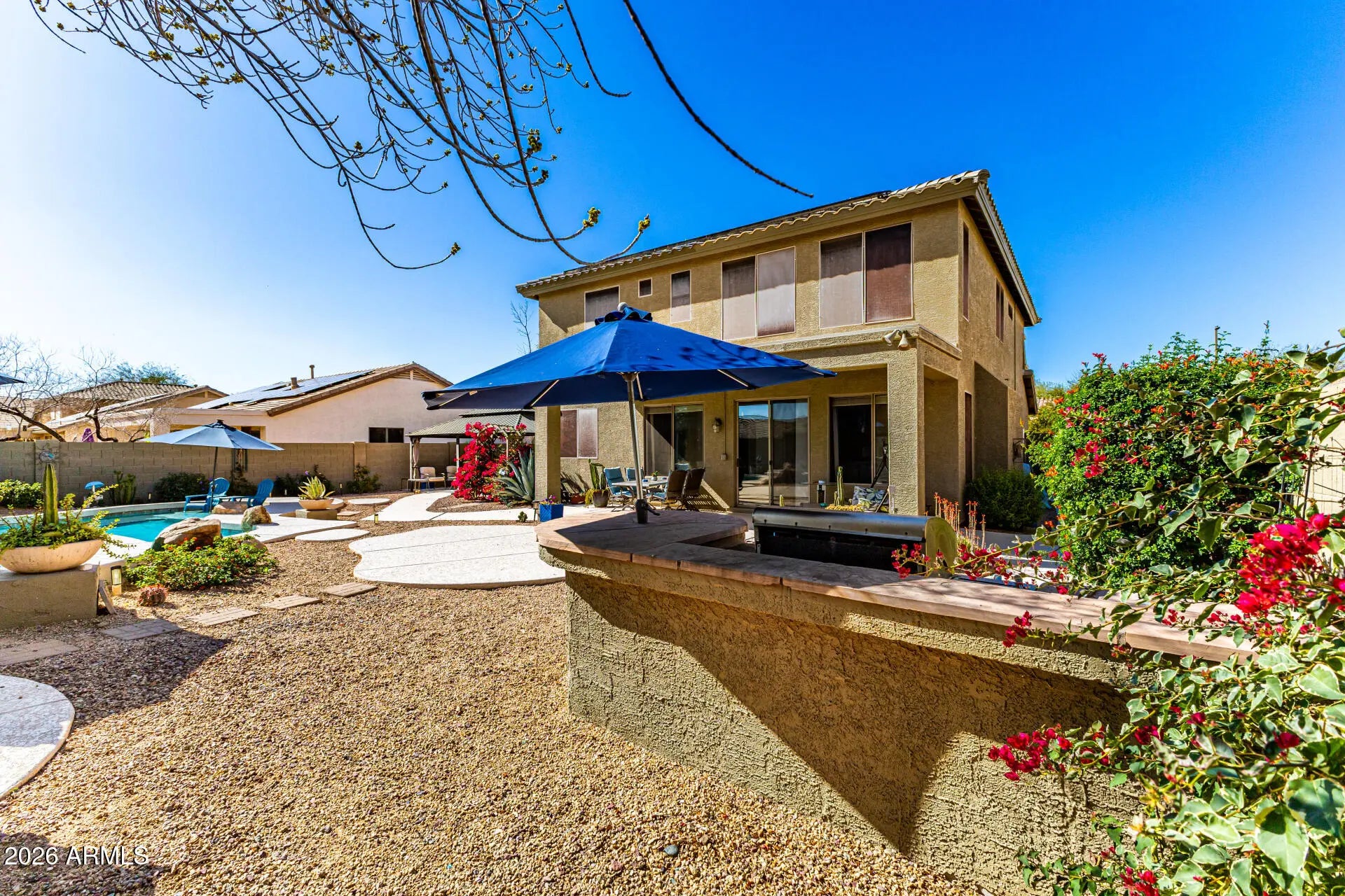 Located in the highly desirable Anthem Parkside community, this beautifully maintained 4-bedroom, 2.5-bath home offers space, flexibility, and incredible outdoor living. A versatile bonus room can easily serve as a home office, playroom, or 5th bedroom to fit your needs. Step outside to your amazing backyard retreat featuring a heated pool and spa, built-in BBQ, outdoor fireplace, and a gazebo -- perfect for entertaining or relaxing year-round. Extensive updates provide modern style and peace of mind: 2021: New A/C, new flooring, and new gas range - 2022: New cool decking, sidewalks, and exterior paint - 2023: Gazebo added - 2024: New roof, interior paint, and all-new irrigation system - 2025: Kitchen updated with new granite countertops, sink, faucets, and garbage disposal. With major systems and key upgrades already completed, this move-in-ready home combines comfort, function, and resort-style living in one of the area's most sought-after neighborhoods