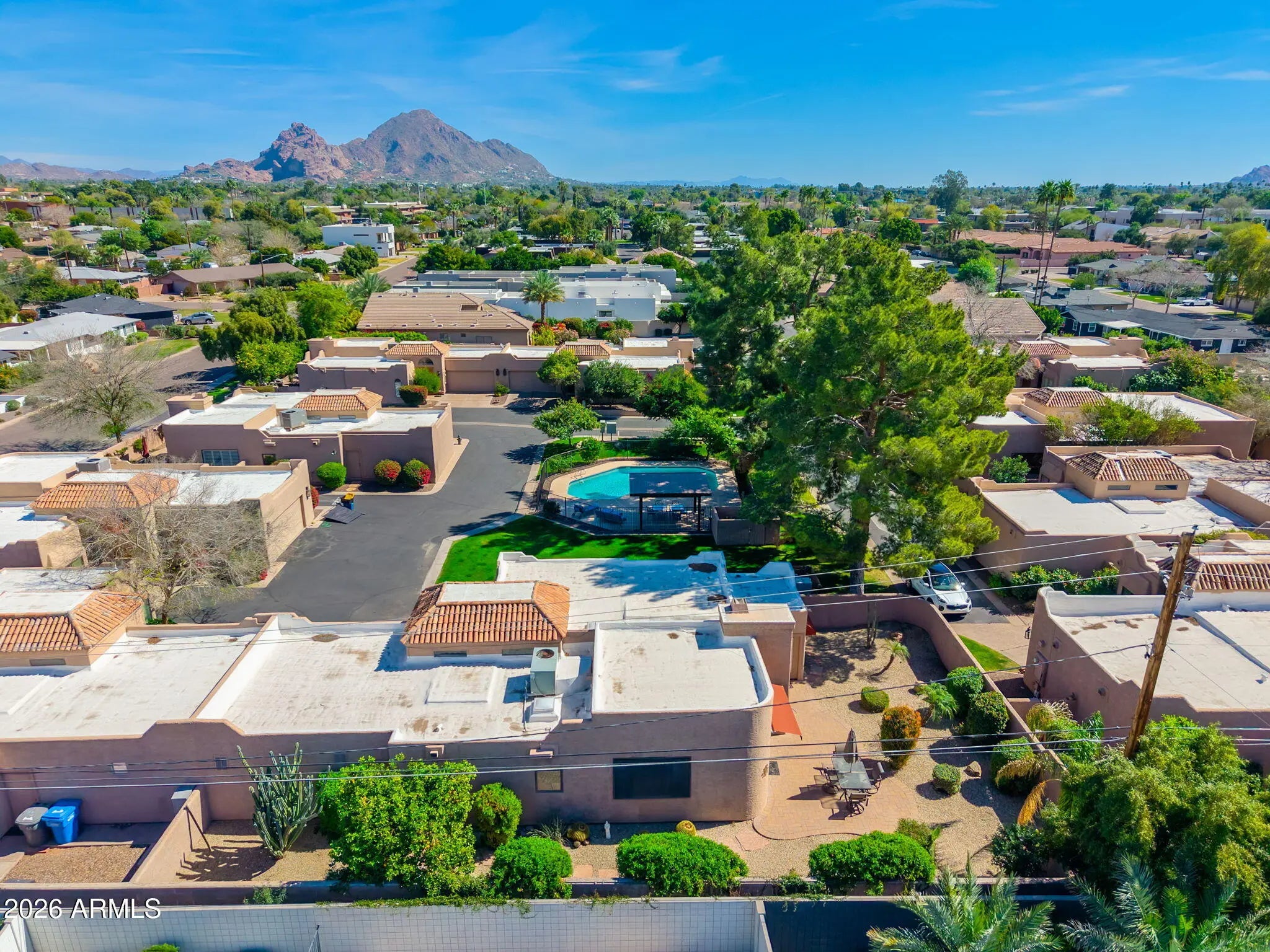 IMAGINE living in this Biltmore hidden gem of a community. Los Escondidos is known for its distinct beauty. Massive pine trees shade the lovely pool and green grassy grounds. Spend your mornings in your backyard, complete with a healthy grapefruit tree. The natural light makes it's way into the rooms at just the right times. Spend your day at the pool right outside your front door. Walk to Chop Shop, bike to La Grande Orange Grocery & Pizzeria. Shop at the Biltmore and Scottsdale Fashion Parks. Hike Piestewa Peak and Camelback Mountain trails. Meet friends for happy hour at Hermosa Inn. Catch the game at Keegan's. Need to catch a plane or get on the freeway? Not a problem. LOVE your life living here in beaautiful Los Escondidos at Camelback. Come see this quaint, private, gated home today.