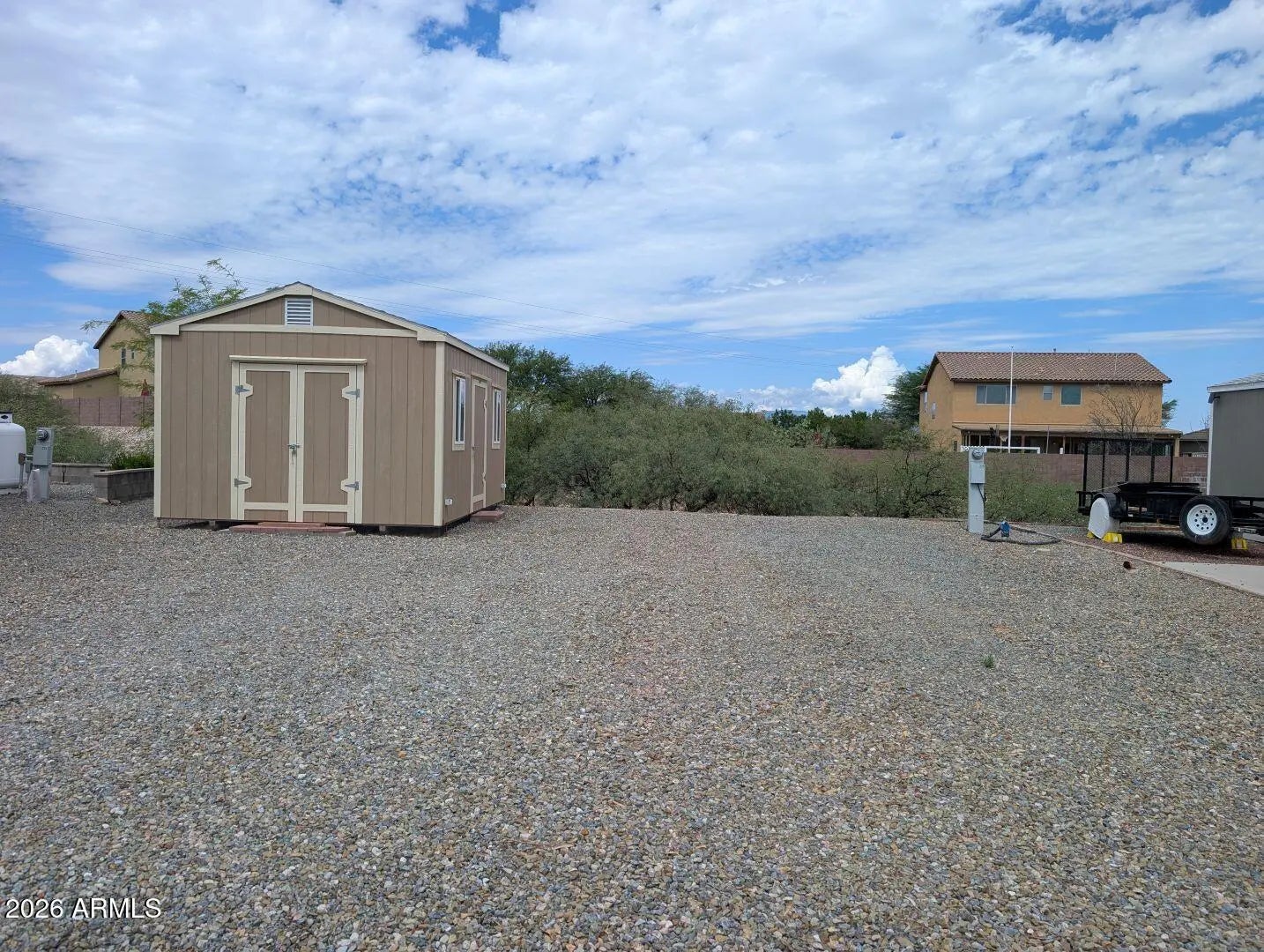 RV lot #225 is for sale. Located in the beautiful Cochise Terrace Communities known as CTRV Resort. This RV Lot is 2278 sq ft located at the high point of Snowbird hill overlooking the wash and walking trail. The 12 x 16 building is fully insulated with water and electricity. There is a lightly used whirlpool washer and dryer with a point of use hot water heater. Has a ceiling fan that provides light along with vinyl flooring. This lot has 50 amp electric (upgradeable) , water , sewer and cable. Your water , sewer and garbage is paid for by the HOA. Electric is paid in the office. If your a snowbird you can shut your electric off when gone. HOA dues are 480.00 per year. There is also a facility fee of 544.00 a year which pays for the maintenance of the park . Total of 85. Property taxes was 502.22 for 2025. The park is very well maintained and always looks great. There is a dog park and another place for bathroom duties. Bags are provided. You can live here full or part time (snowbird). You will have full time neighbors that are really nice people. It's your property so you can put a park model on it if you want to. The town of Benson is 5k people. Has a Safeway, Walmart , hospital , dentist , ace hardware . Tucson is 40 minutes away and Sierra Vista is 30 minutes. The winters are beautiful here. The sun shines here 300 days a year. On Average dead winter is 30's to 40's at night and 60's to 70's in the afternoons. This resort is in a great central location 1 mile off I-10.