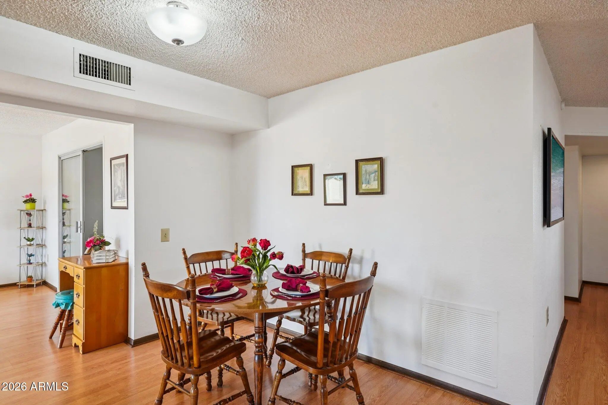 Highly sought after END UNIT w/ a PRIVATE PATIO - No Shared Patio wall * Light & Bright w/ Skylights * 2 BED / 2 BATH * 1.5 CAR GARAGE * Well cared for home w/ the same owner since 1995 * NEW LENOX AC 2023 * NEW WATER HEATER 2023 * Eat-in Kitchen * Large Living/ Dining Combo * Large Primary Suite w/ Shower, Walk-in Closet * AZ Room w/ slider to Flagstone Patio/ Private Back Yard * Full Hall Bath with Tub/ Shower * Large 2nd Bedroom * Laminate Flooring , LINO & carpet in beds * Original DUAL PANE Windows * Plantation Shutters / Blinds * NEW Washer/ Dryer 6/2025 * NEW Fire Rated Door to Garage * Professionally cleaned home & carpets * Xtra Parking in back * Dishwasher As-Is * Located in Prime area of Sun City Phase 3 close to Shopping, Banking, Dining & Medical * 2 PETS 40lb * NO RENTALS * Furniture can convey - Staging decor does not convey * The Bell Recreation Center & Marinette Recreation Center close by * Sun City offers many amenities! 7 Rec Centers with swimming pools, lap pools, walking pools, Hot tubs and every activity, work shop, & craft you can think of! Bowling! Pickleball! Shuffle Board! Pool Tables! Darts! Tennis! Ground Bowling! Mini Golf! Lake Activities! 9 Public Golf Courses & Reduced prices with Rec Card. 2 Private Golf Courses open to the public! And much more! Close to shopping, restaurants & entertainment! Close to Spring Training Base Ball Fields. Close to Arrowhead Mall, Lake Pleasant and all of it's growing amenities, medical facilities, hospitals, entertainment, shopping & restaurants!Close to Grand Ave, Bell Rd & 101 access! The list goes on & on!