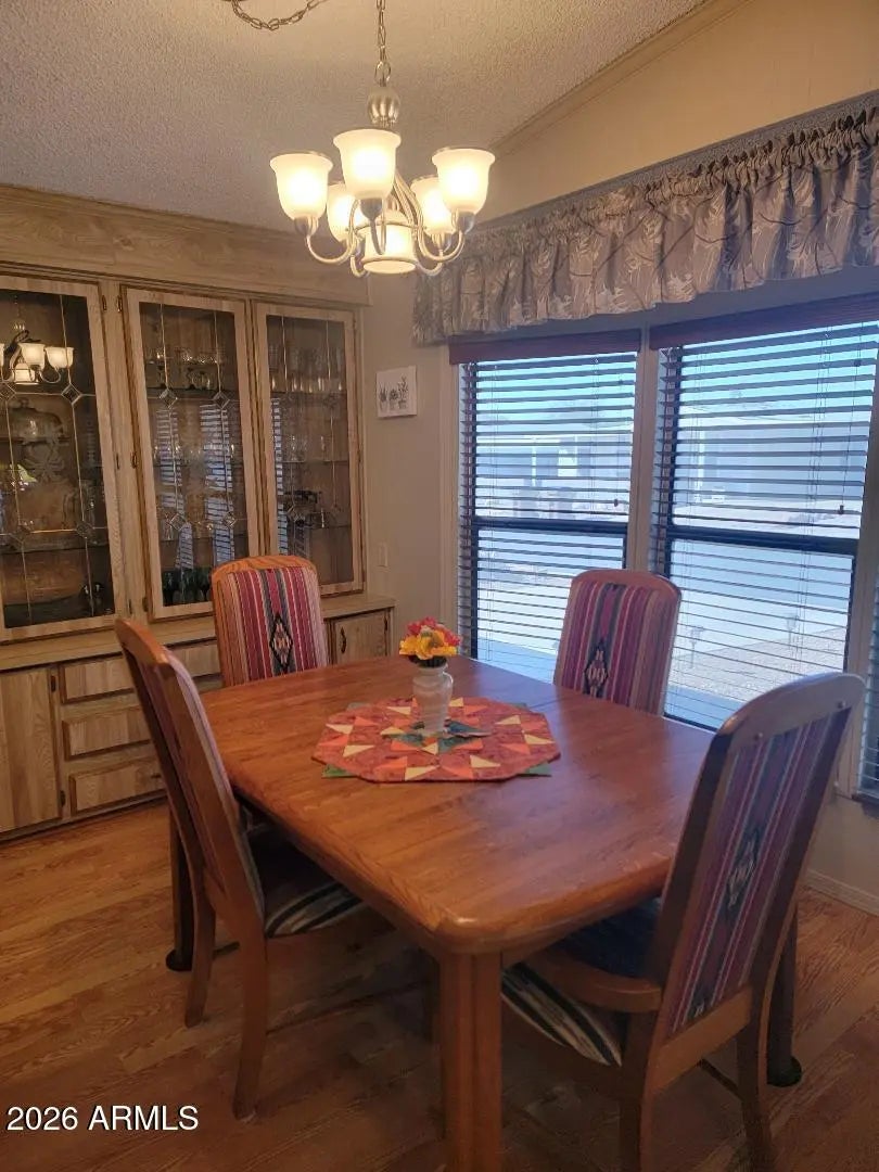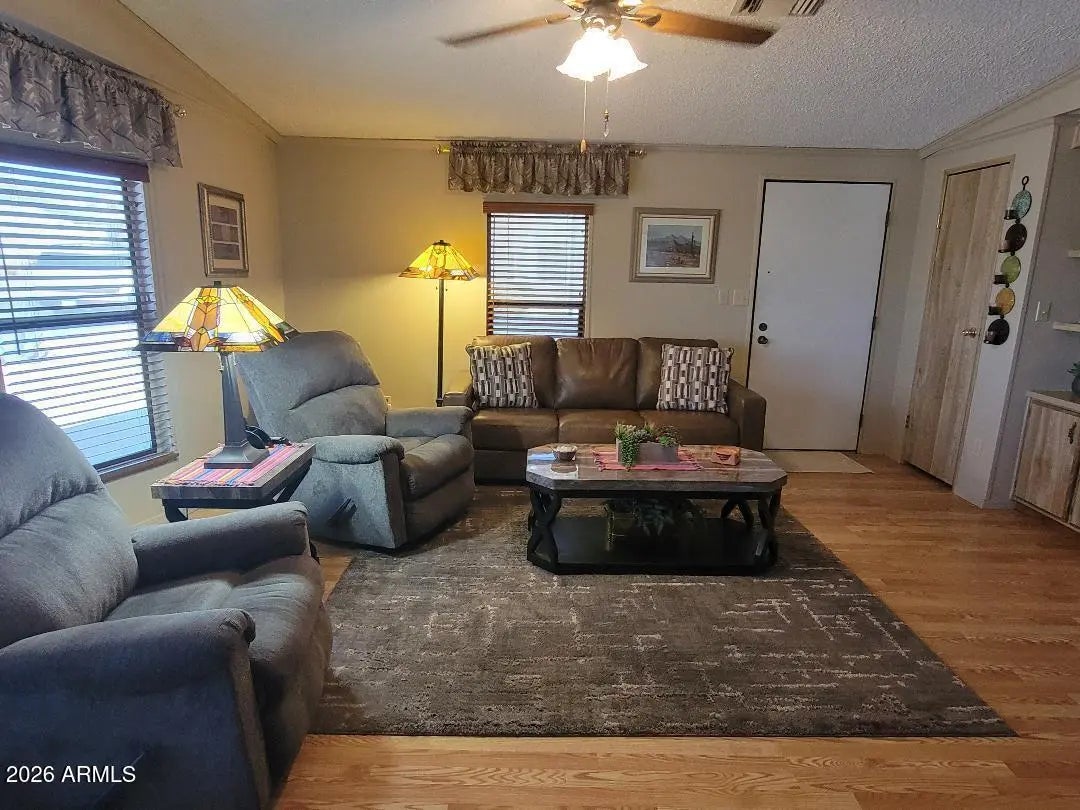 This is a beautiful 2 bedroom 2 bath furnished home with Arizona room. Double doors into Arizona room for Golf cart or toy parking! This home is in immaculate condition and shows pride of ownership inside and out. The kitchen has had an update with new countertops, appliances and flooring. Beautiful laminate floors throughout...no carpet! New vinyl water proof flooring in master bathroom and new shower door as well. Ample storage with linen closet and medicine closet. The bedrooms have fans and master bedroom has large closet! The Az. room is wonderful addition with an additional 380 sf (not added into the square footage). The backyard is an oasis with a beautiful Pergola for shade to entertain and a built in firepit area as well! Just a great yard!! Come see this beauty.... won't last!