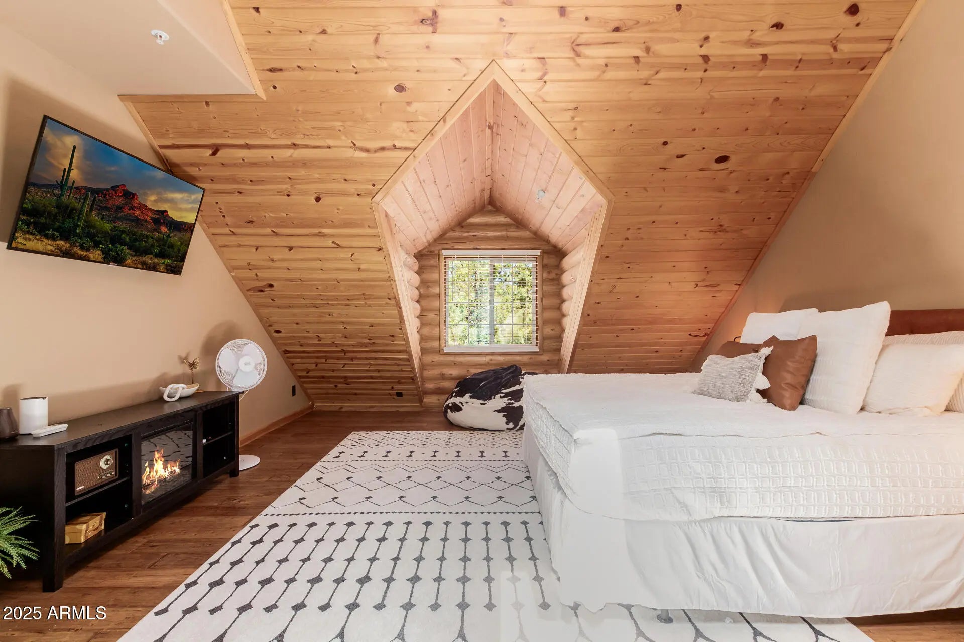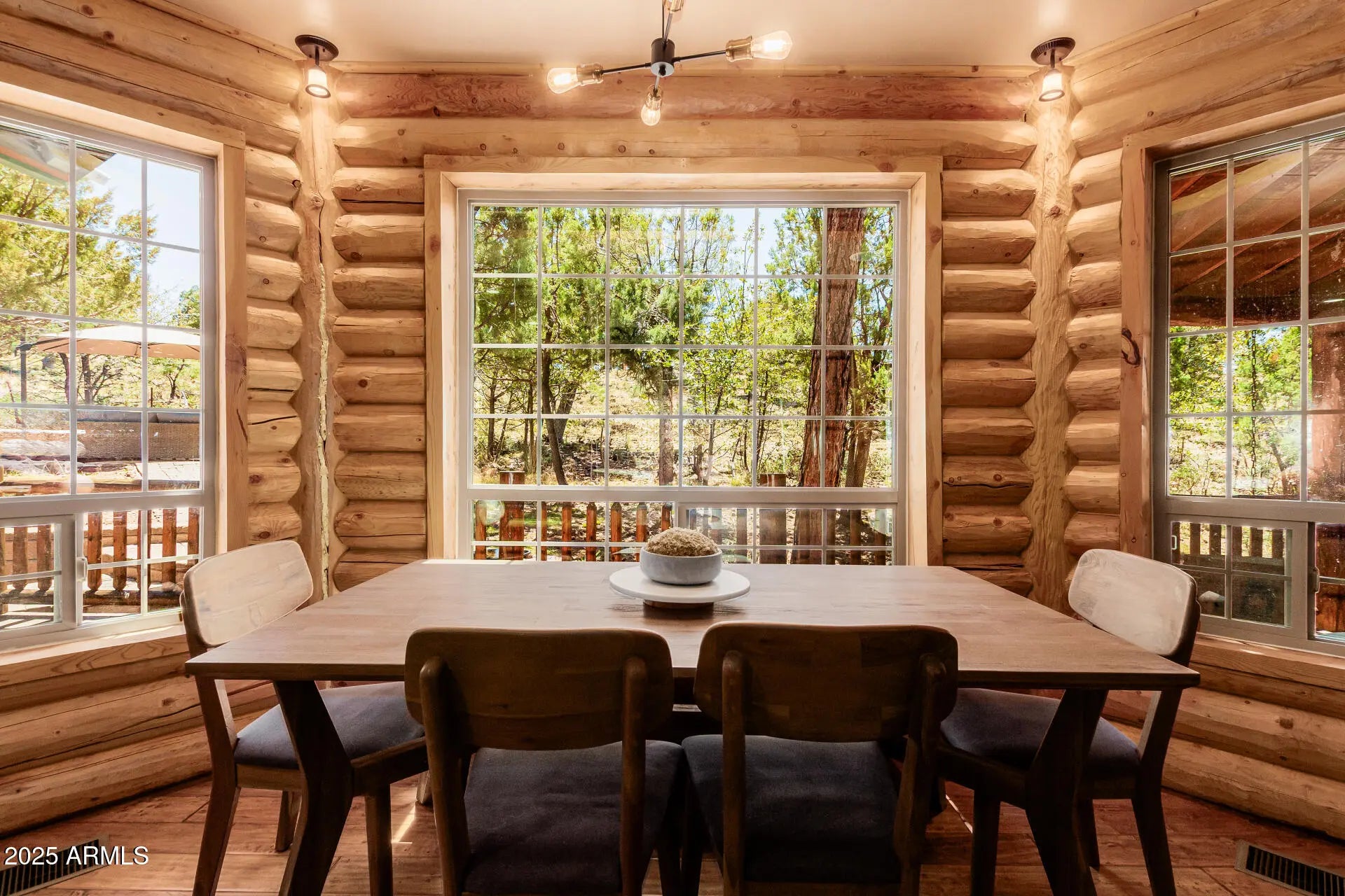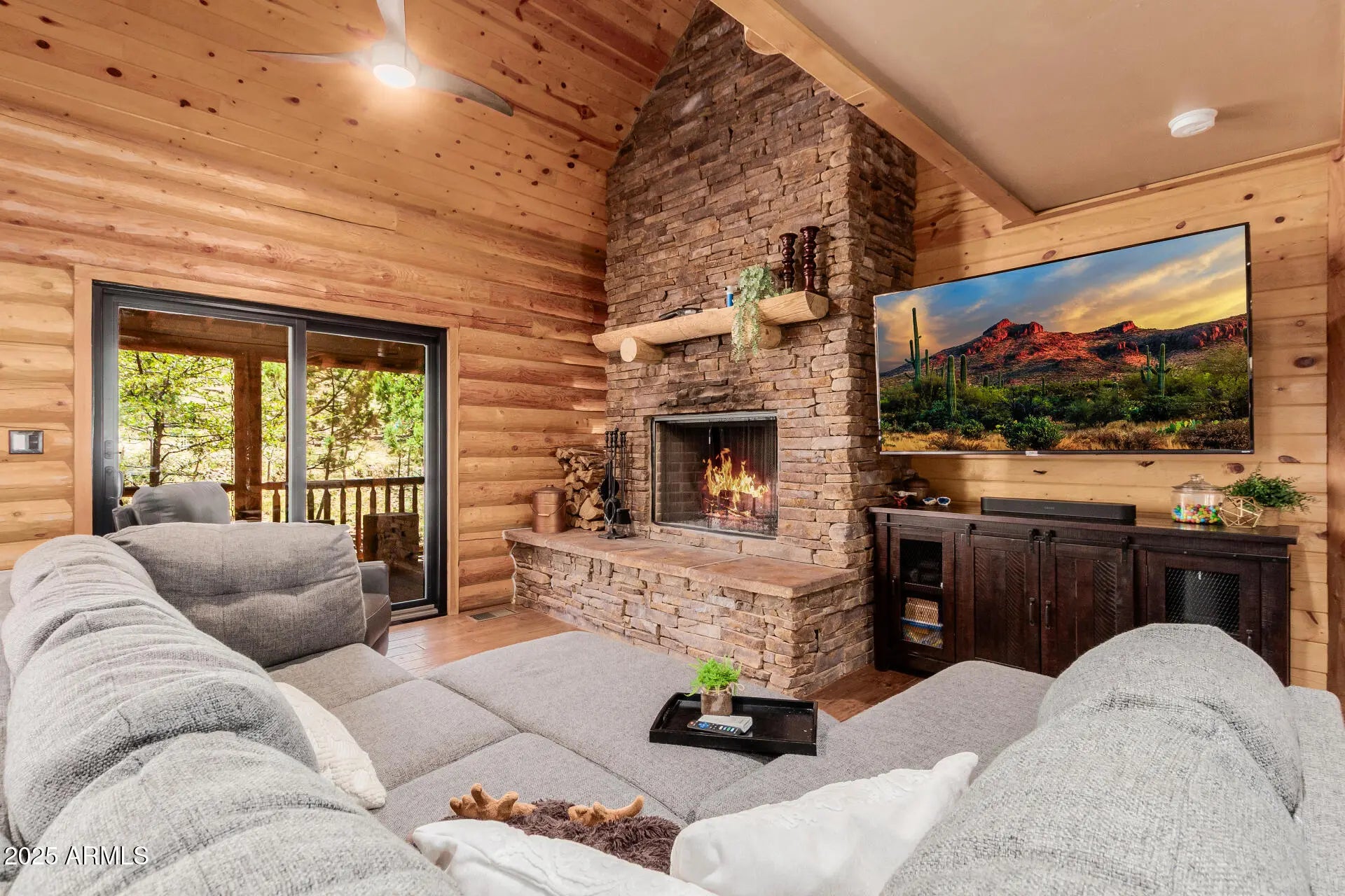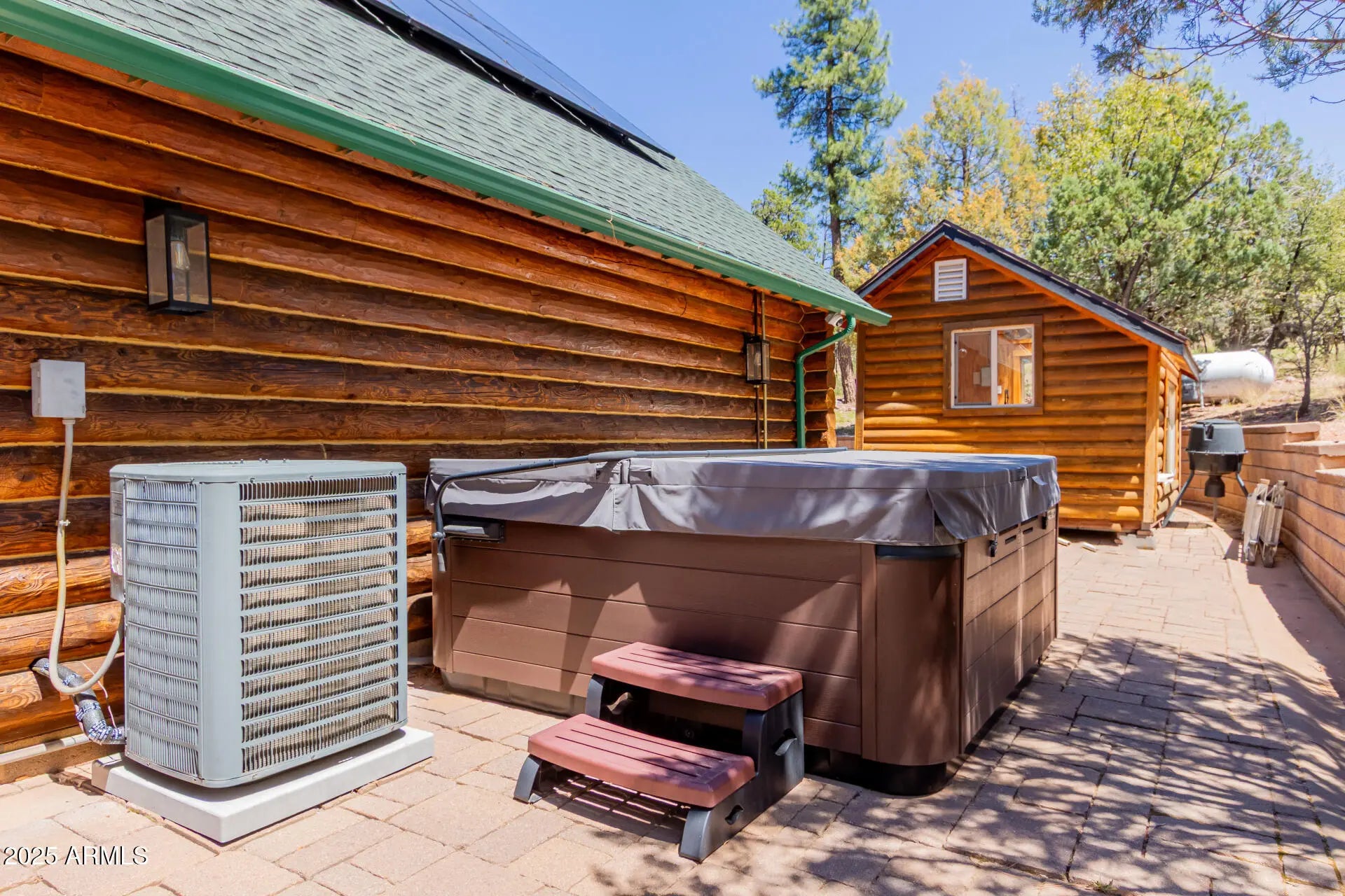 Fully furnished, beautiful Full Log construction home is situated on the edge of the Tonto National Forrest with thousands of acres to explore. Enjoy mountain living at it finest, with unobstructed views, daily wildlife sightings, & the fresh mountain air! Notable features of this stunning home are: paid off solar, Tesla Powerwall battery, Generac backup generator, 2,500 gallon water backup water reserve tank, Starlink internet hardwired, & a state of the art camera monitoring system to keep an eye on the home while you are away. The ultimate off grid capable mountain retreat, with no HOA! Recent updates include: freshly chinked & stained, anew roof, new AC, alternative septic systems, new Anderson sliding doors, Bullfrog hot tub & much more