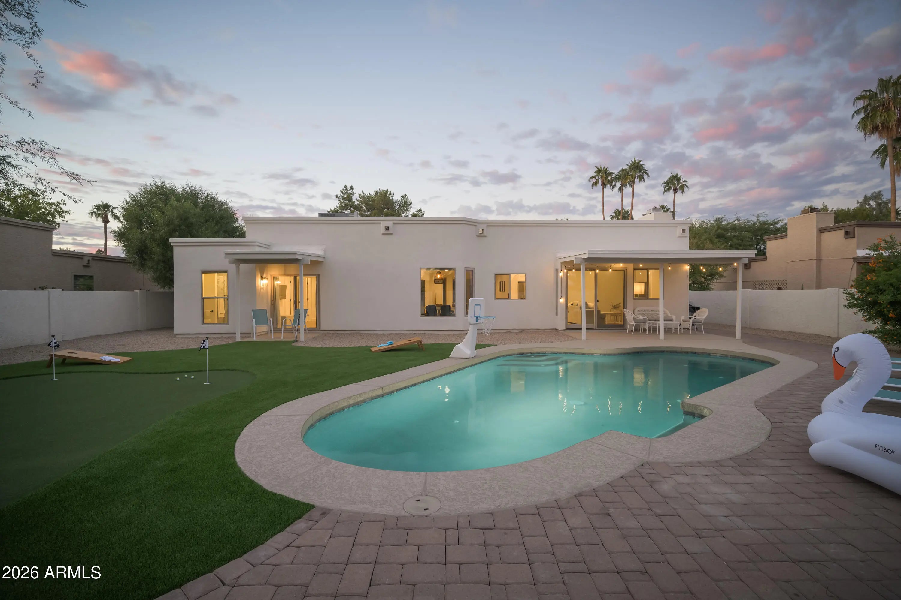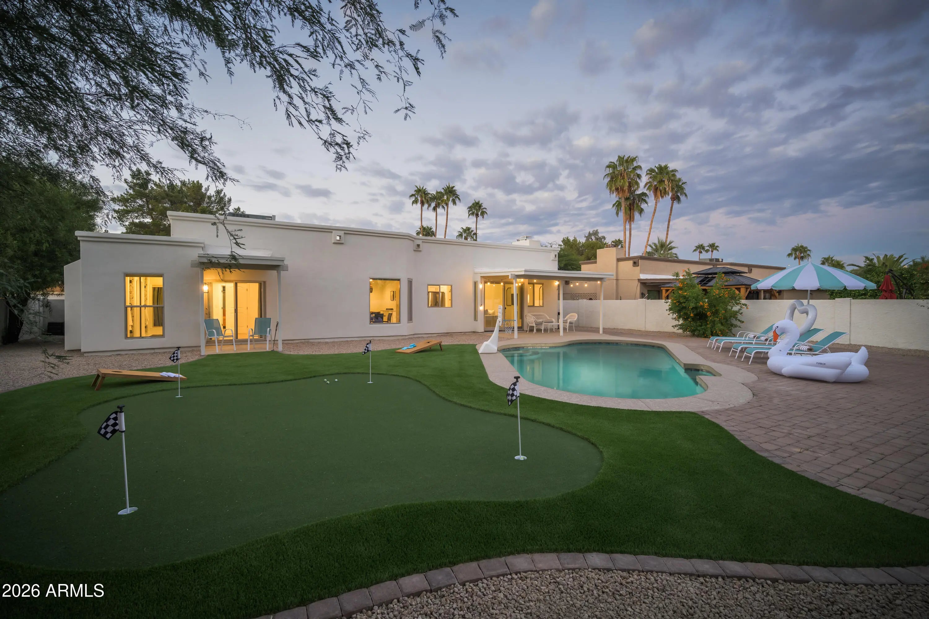 Welcome to Viva Le Marche! Fully remodeled in 2022, this stunning home was rebuilt from head to toe and thoughtfully designed for comfort and style. Enjoy a large private yard with a heated pool and putting green. Hang out inside at the breakfast bar with a pool table, and fully stocked kitchen -- all located in a peaceful, family-friendly neighborhood. Centrally located near the 51 and 101 freeways, just minutes from Paradise Valley, Scottsdale Quarter, Kierland Commons, Desert Ridge, and the Waste Management Open. Sold fully furnished with everything needed to continue operating as a turnkey short-term rental or vacation home. Truly move-in or rent-ready from day one!