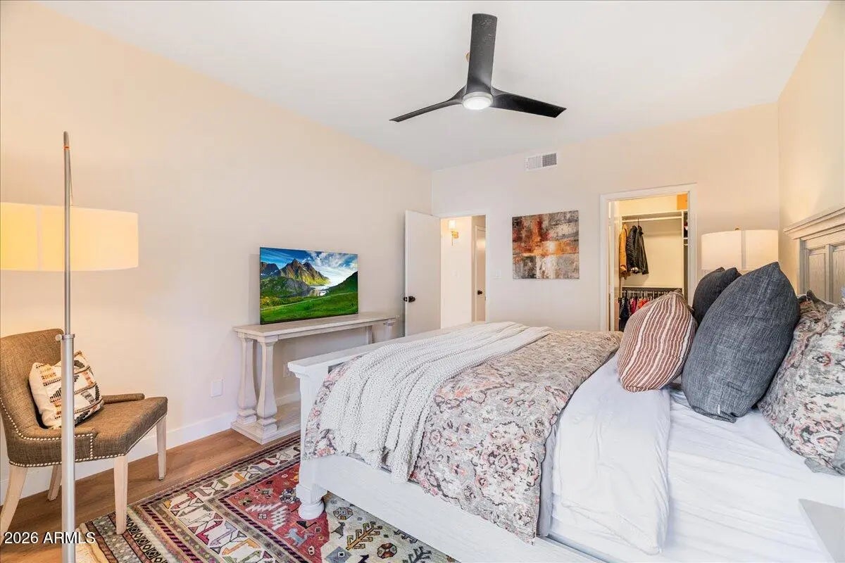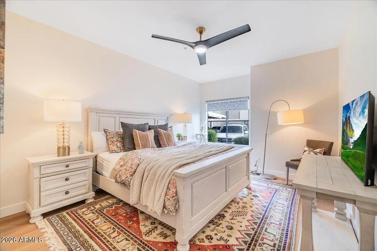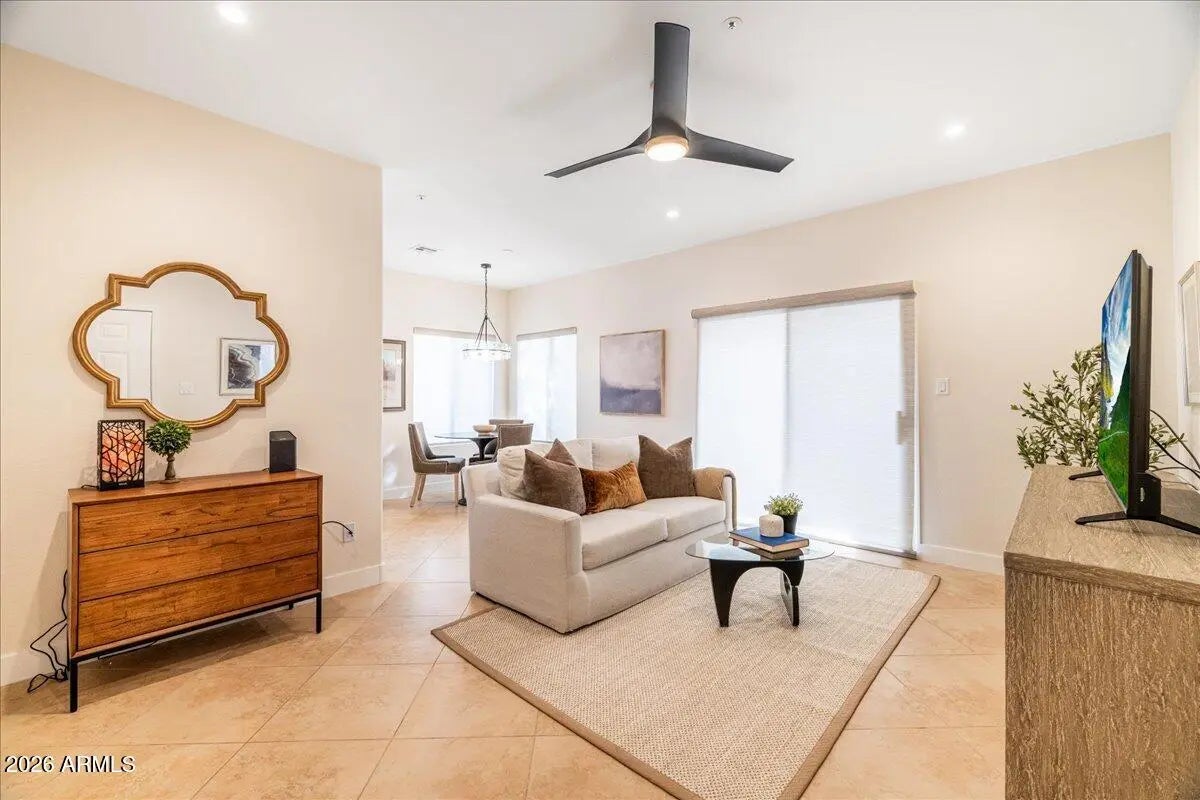 RENT ONE WEEKEND, ONE MONTH,OR MORE. 2026 Renovated FIRST-floor condo in the highly sought-after Presidio at McCormick Ranch community. Ideally located just min from Loop 101, HonorHealth, Mayo Clinic, shopping, dining, spring training, great schools like w/ Desert Mountain HS an Basis. This condo has designer-curated finishes and major system upgrades. Complete plumbing replacement (PEX), Goodman HVAC system (2/2026), WALK-IN shower, updated electrical outlets and GFCIs, recessed lighting, fresh interior paint, baseboards, California Closets, Quartz, REVERSE OSMOSIS, newer kitchen sink, roof (2020), exterior painted 2023, resurfaced parking lots. & more. Residents enjoy resort-style amenities including a heated sparkling pool & spa, fitness center, and clubhouse.