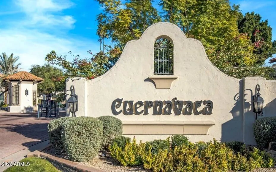 Indulge in refined elegance in this exquisite one-level townhome in prestigious gated Cuernavaca. Featuring 2024 renovated bedrooms & baths plus a sophisticated library/den, this architectural delight blends timeless design with modern comfort. Wood floors, exposed beams, vaulted ceilings, new designer lighting & a soft neutral palette create an elevated ambiance. Inviting living room features a charming media wall w/built-in niches. Renovated chef-inspired kitchen showcases abundant cabinetry, quartz C-tops & backsplash, stainless appliances & a pantry w/useable attic storage. Serene owner suite enjoys dual vanities, spa-like shower, custom cabinets & 2 walk-in closets. New Pella windows & French door enhance backyard beauty adding efficiency. Enjoy backyard lush artificial turf, multiple sitting areas & a 2025 renovated deck. Extended 2-car garage w/epoxy floors & new opener features a work room w/cabinets. HOA maintains (newer) front yard landscaping, irrigation and front courtyard. In addition to amenities including heated pool, heated spa, tennis, pickleball & a clubhouse, this home is located in a sought-after gated enclave offering privacy, charm, convenience & a fantastic location!