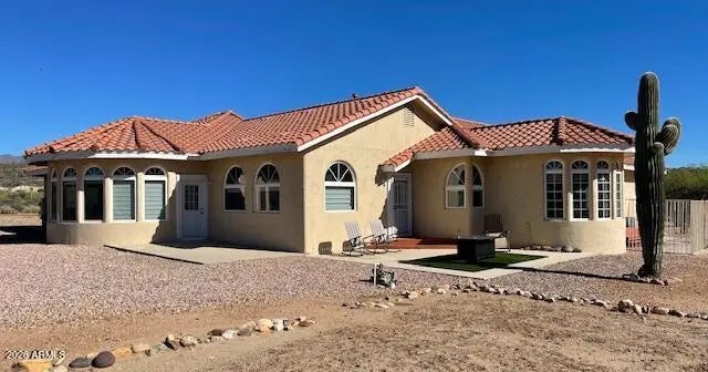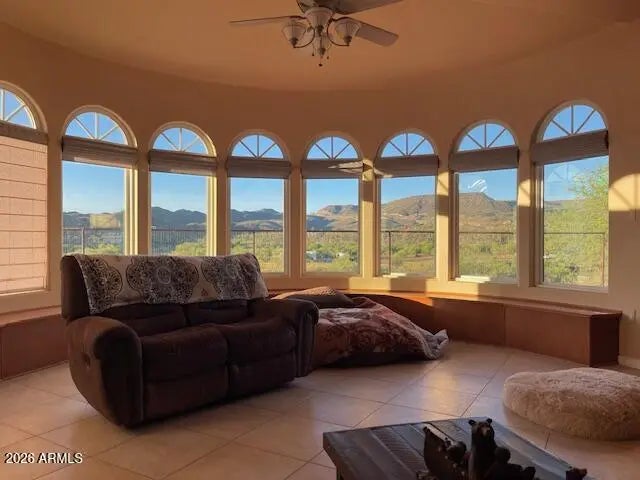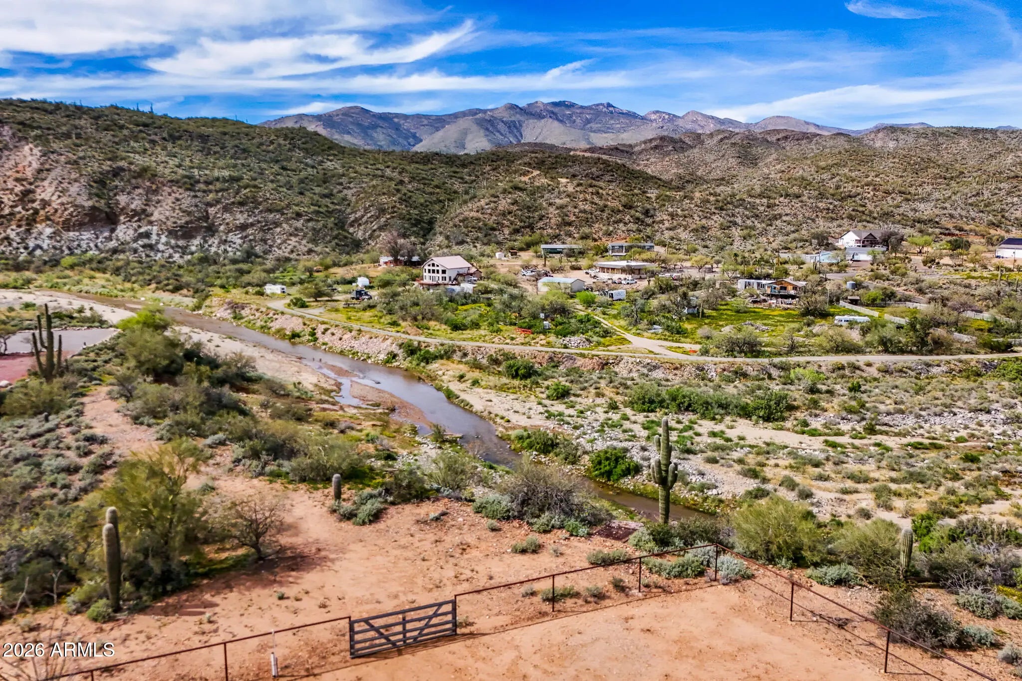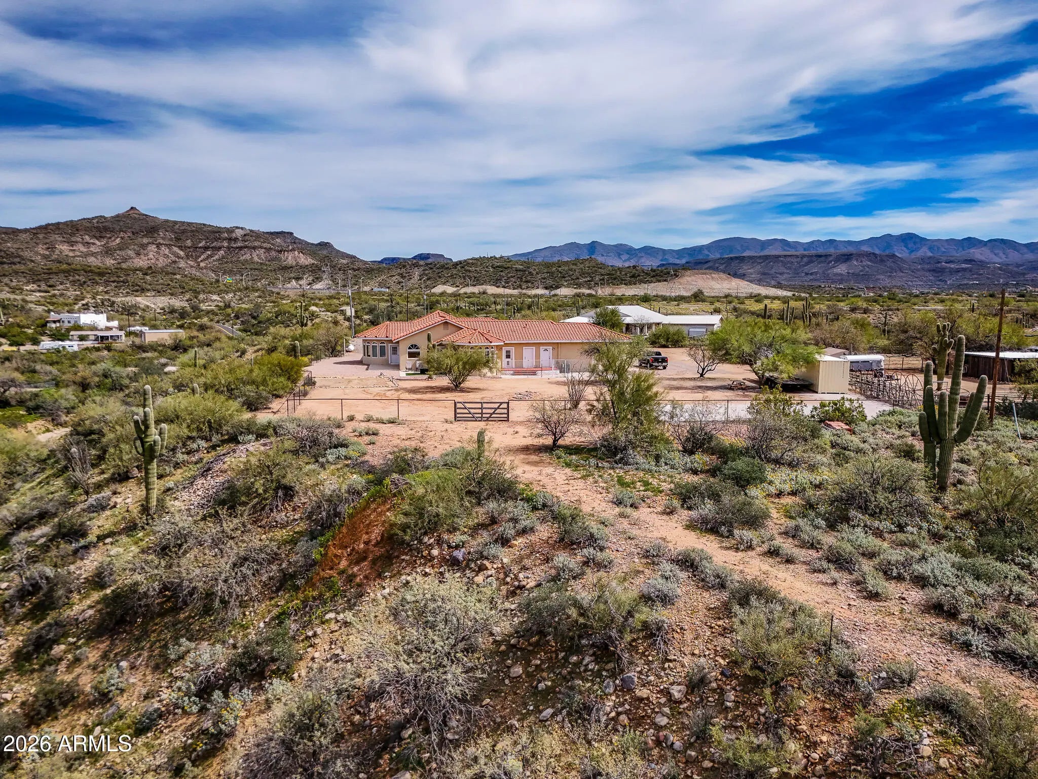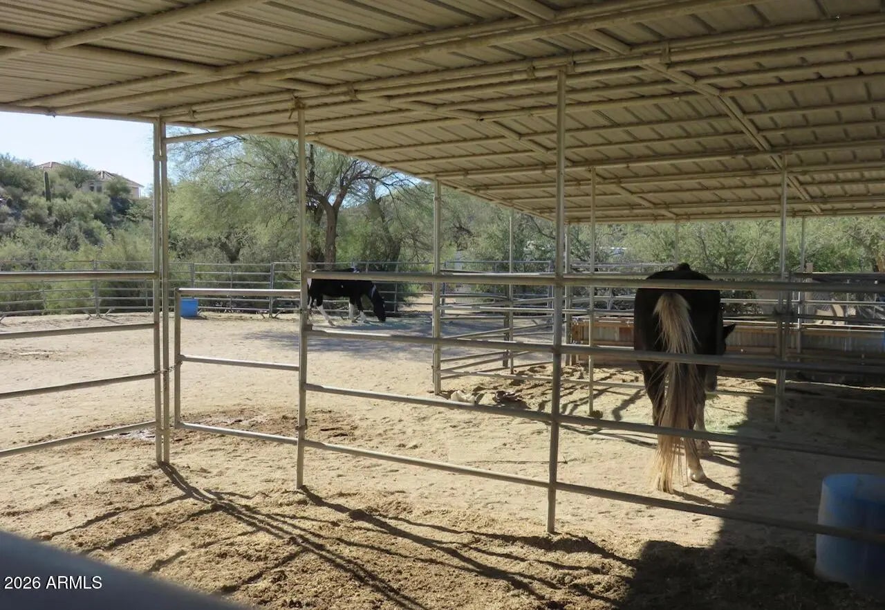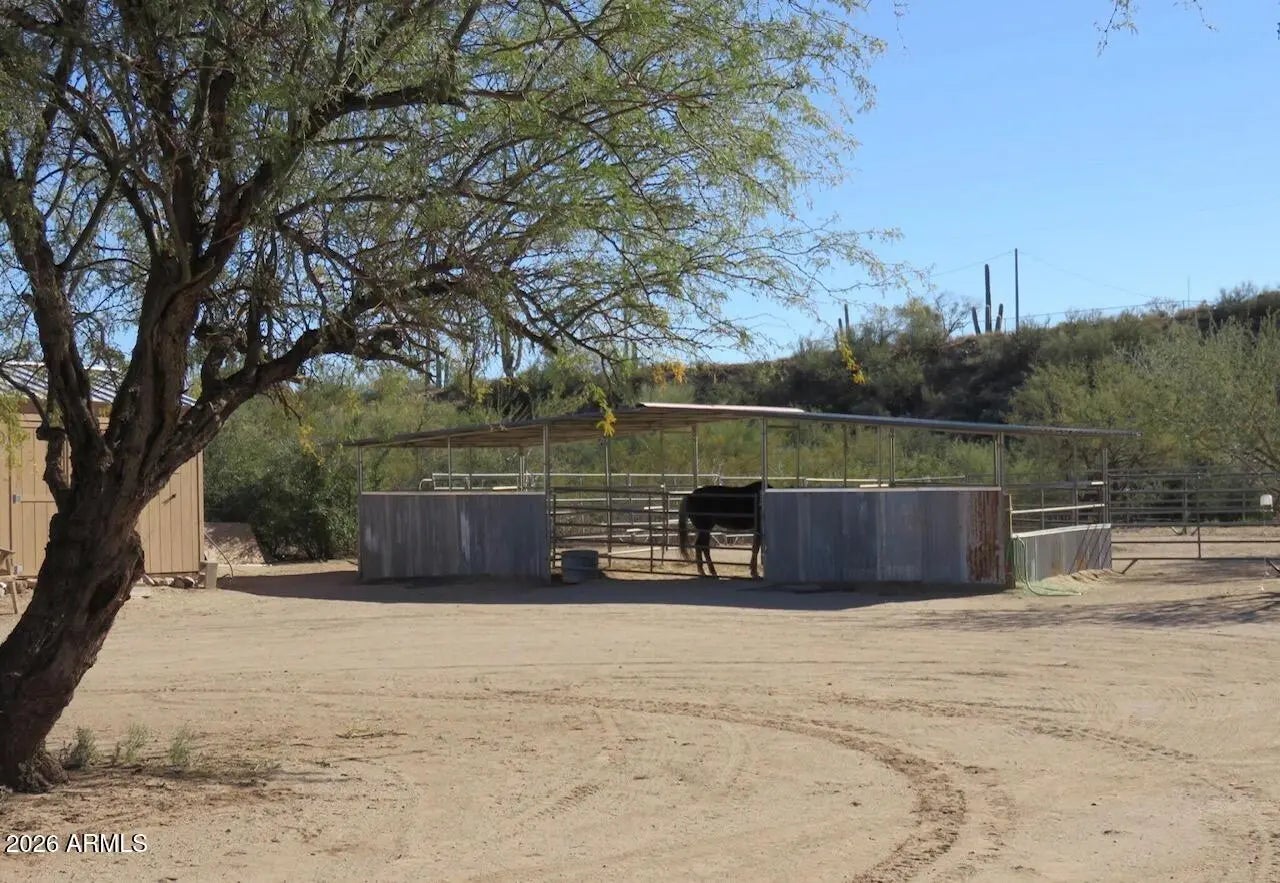 Reimagine your world in this unparalleled Sonoran Estate! Astonishing panoramic mountain views with creek side splendor! In a class by itself, this home was constructed with Keeva Concrete Form for an outstanding R-34 insulation rating! Just under 8 acres, home is situated on top of the hill with horse set up below, 3- 12x16 stalls, 50x50 turn out, tack-shed, 2 year old AC/Heat Pump, 3 car garage, 30/50 RV hook-up and surrounded by miles of riding trails for horse or OHV, and the last home on a shared but private driveway! Seasonal creek goes through corner of property. Easy access and commute to newly expanded I-17. Your new lifestyle of peaceful days and starlit skies begins here, Welcome Home!