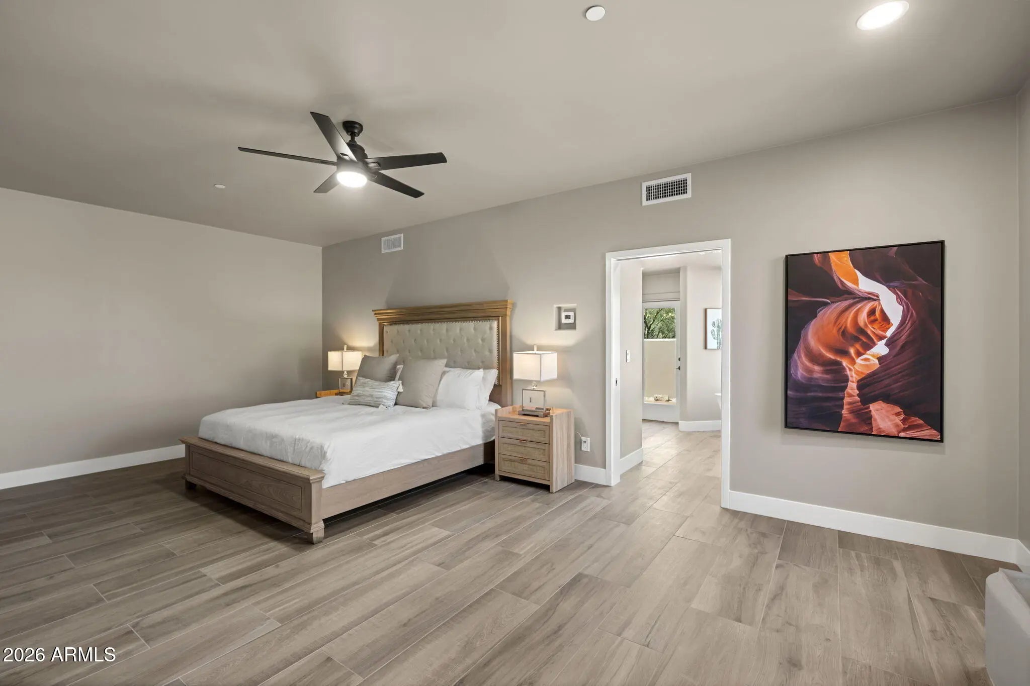 Turnkey Modern Villa with Short Term Rental Flexibility in The Boulders! This 3-bed, 3-bath newly finished villa in The Boulders Resort is being sold fully furnished and move-in ready allowing you to capitalize on immediate rental demand without the delay of renovations or furnishing. The interior has been meticulously updated with a desert modern aesthetic. Wide-plank wood-look tile flooring runs throughout the single-level floor plan, providing a sophisticated and durable foundation for high-end rental use. The neutral color palette design was intentionally used to highlight the dramatic natural landscaping and boulder formations just outside your windows. From this home, residents and guests are minutes from the community pool, two year-round championship golf courses, upscale restaurants, lively bars, the Boulder's hotel and full-service spa. Whether you are looking for a personal retreat or a refined high performing investment to add to your rental portfolio, this property offers a seamless transition into the Scottsdale lifestyle.