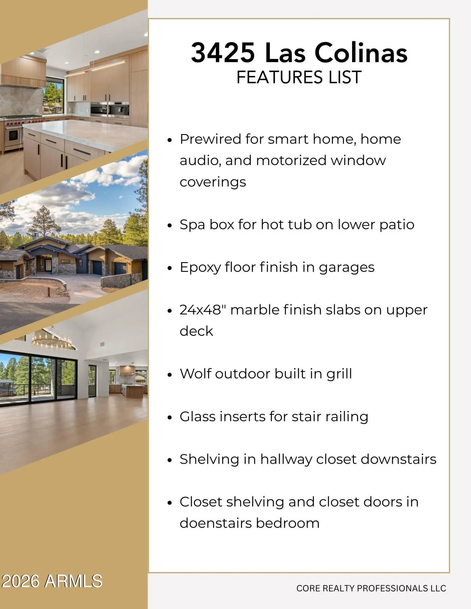 This new home in Flagstaff's premiere private golf community is now MOVE IN READY! Discover unparalleled elegance in the heart of Pine Canyon. Boasting three primary suites, two expansive outdoor patios/decks, a private study, and two massive living spaces, this precisely curated mountain retreat combines the natural beauty of the pines and peaks with an unmatched lifestyle of luxury. Experience refined finishes and materials such as Quartzite, Crema Marfil Marble, backlit Onyx, ambient/accent lighting, rift-sawn oak millwork, hardwood flooring, premium European Grohe plumbing fixtures, motion activated under-vanity lighting, heated bathroom floors, and so much more. The builder, AZ Royal Granite, continues to build homes in Pine Canyon with the highest level of pride and craftsmanship.