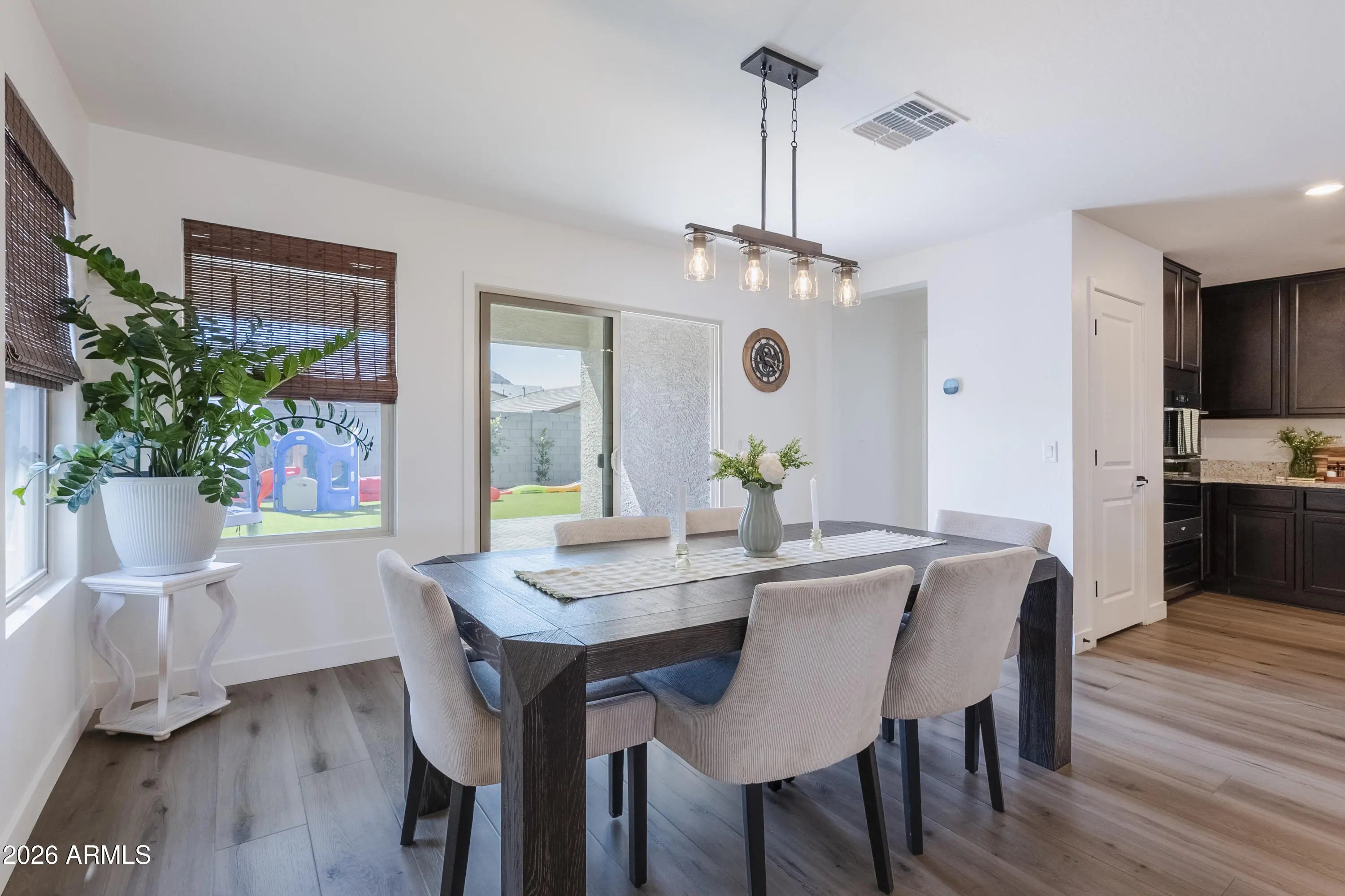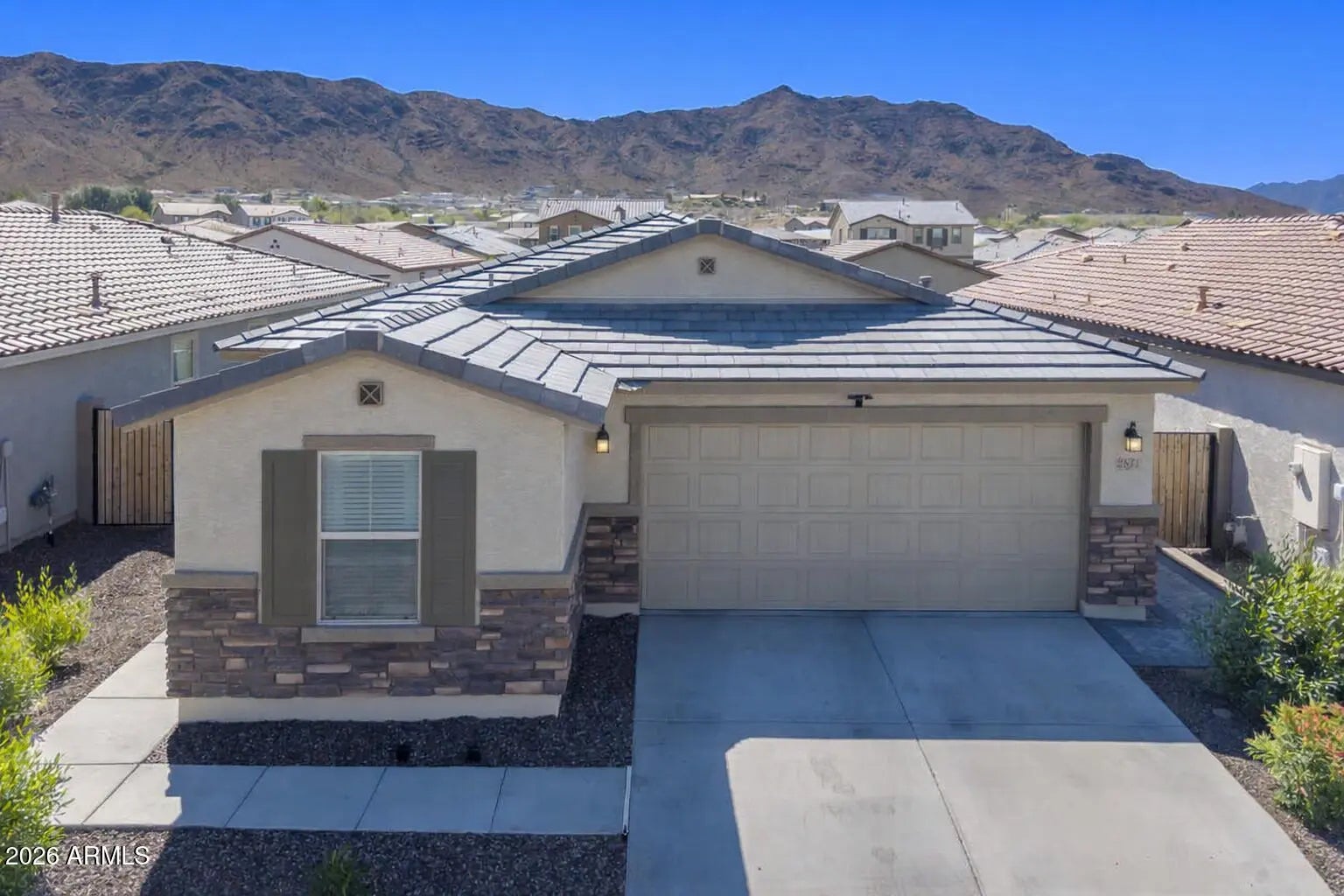 Welcome to this beautifully upgraded 2024-built home. This home offers 4 bedrooms, 2 bathrooms, and a 2-car garage with a layout designed for comfort and privacy, all nestled within a private GATED community. Gas cooktop and built-in ovens! Perfectly positioned on a premium north/south-facing lot, this home is ideally oriented to capture stunning MOUNTAIN VIEWS. Step into your PROFESSIONALLY DESIGNED backyard featuring low-maintenance, artificial turf, elegant herringbone pavers, drip system on timers and a comfortable sitting area--creating the perfect setting for relaxing evenings or effortless entertaining. Bedrooms are split, and the interior has been freshly repainted with kid friendly, smudge proof paint perfect for easy maintenance and long lasting durability. Location everything, and this home delivers! Commuters will appreciate being just 4 miles from the Loop 202 South Mountain Freeway, offering quick access to the West Valley, East Valley, and Central Phoenix. For added convenience, Eagle College Preparatory School is just up 27th Ave, making school drop off simple and stress free. A gated community, thoughtful upgrades, and a beautifully designed outdoor retreat make this home an exceptional find.