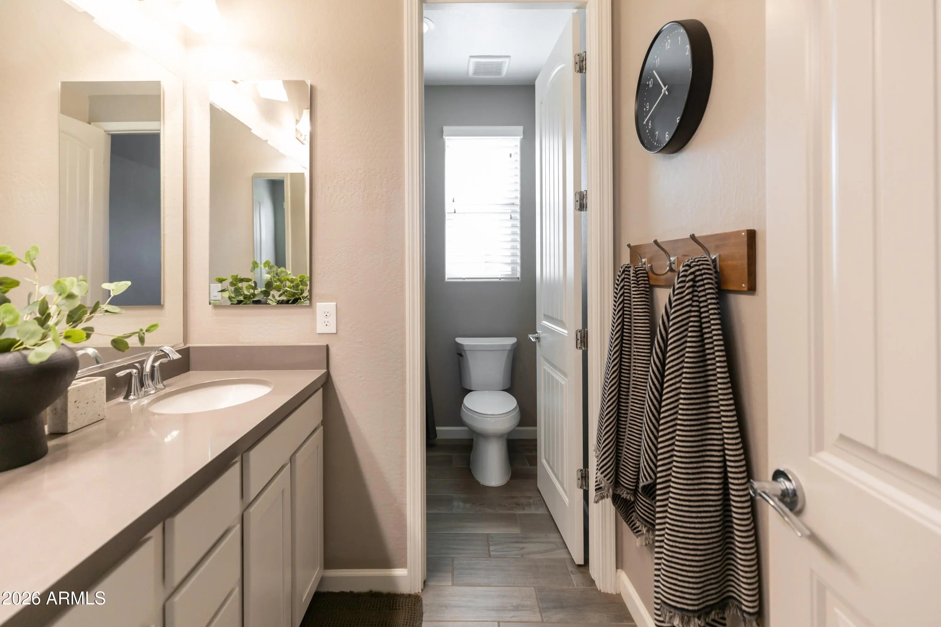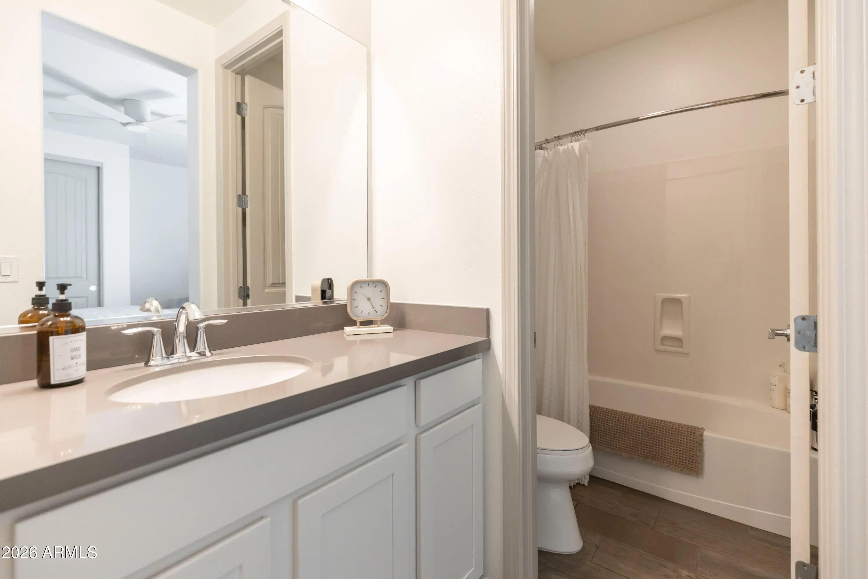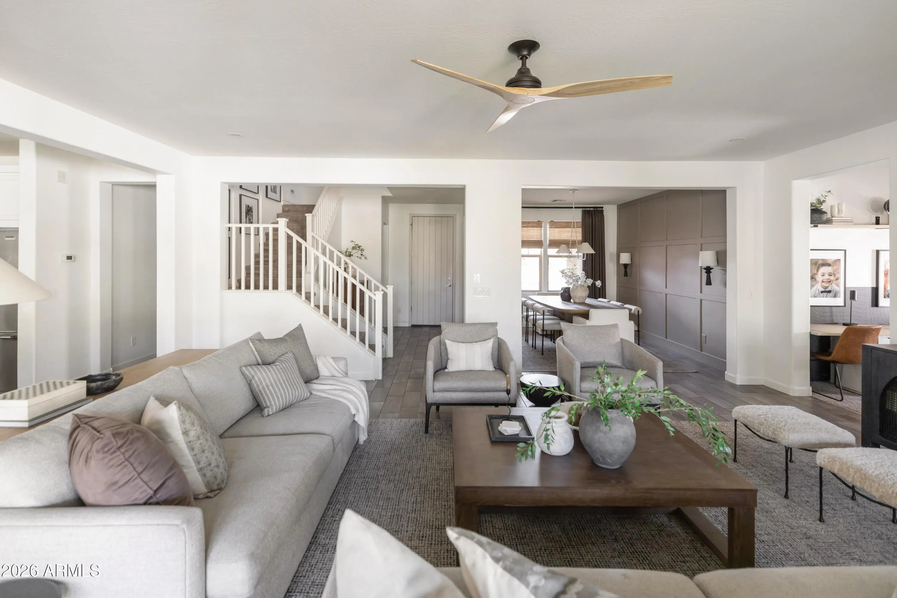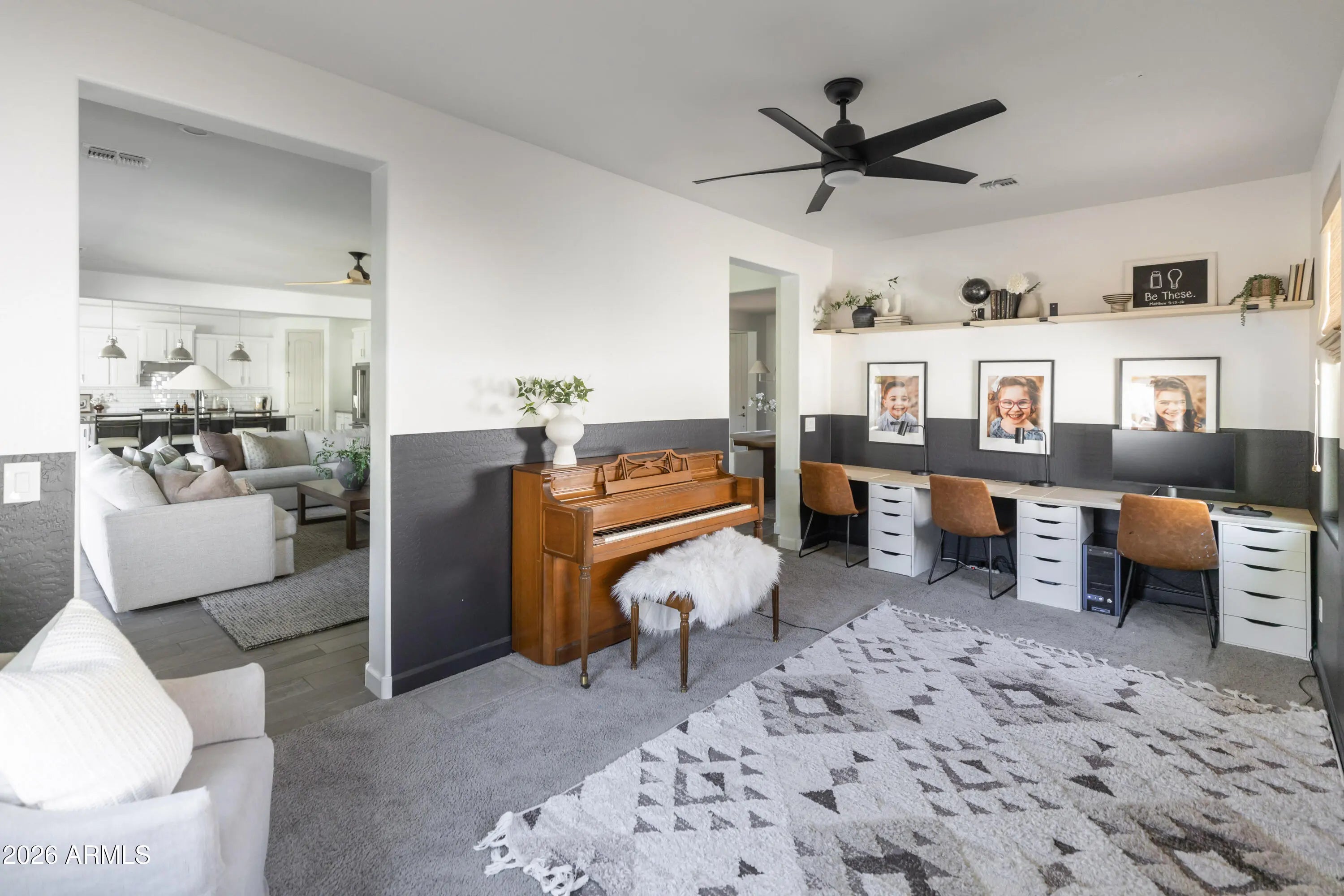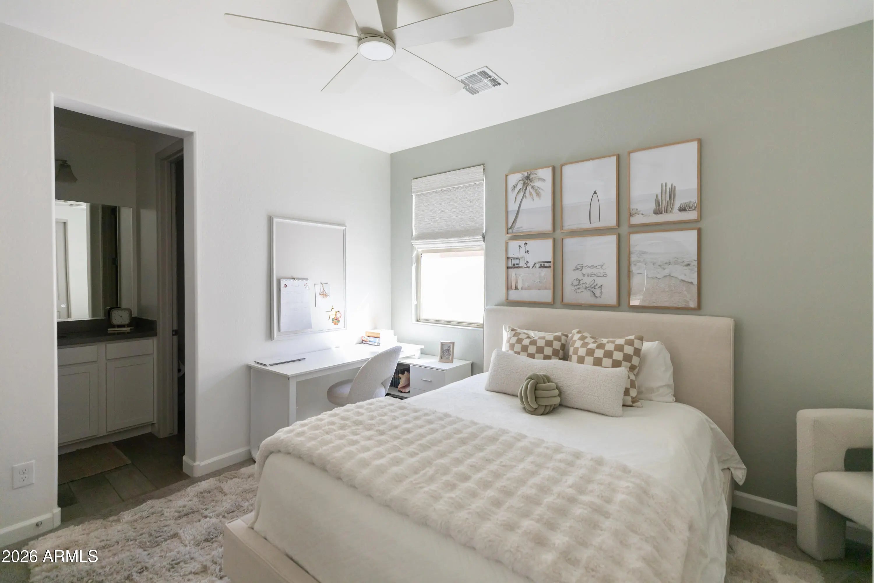 A True Must-See! This stunning home shows like a model and was thoughtfully designed by a professional interior designer, offering elevated style and effortless comfort throughout. Ideally located near the heart of Queen Creek, you'll enjoy convenient access to shopping, dining, and everyday amenities while still savoring the charm of this highly sought-after community. The home features 4 spacious bedrooms and 3.5 bathrooms, including a private first-floor ensuite. Upstairs, you'll find the luxurious primary suite along with a conveniently located laundry room for added ease. A generous loft provides flexible living space, , while a dedicated study space on the 1st floor makes working from home both comfortable and functional.