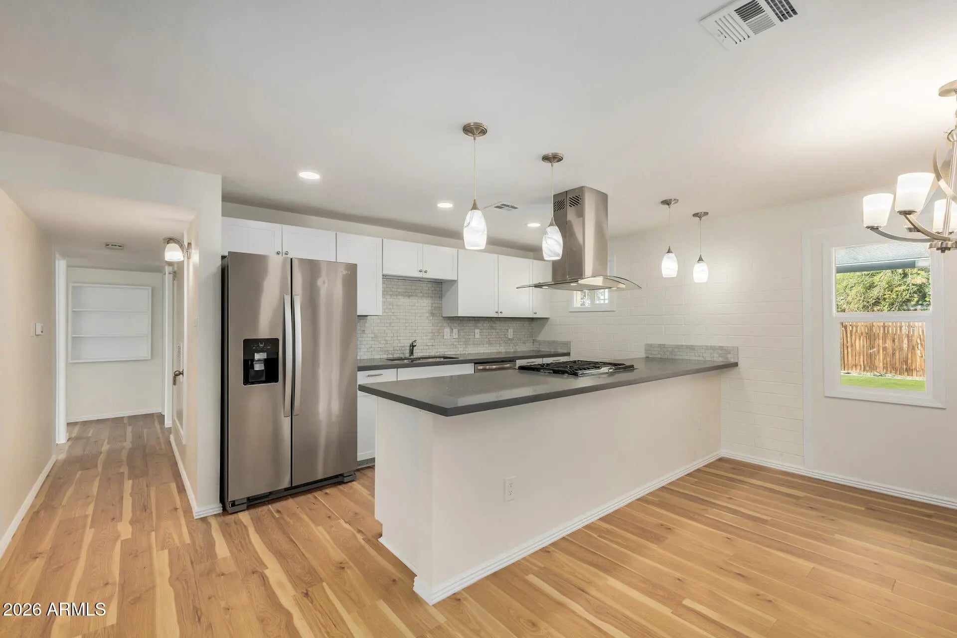Beautifully updated block home conveniently located near the 51 freeway and Greenway! This charming property features a single-car carport and attractive two-tone exterior paint for great curb appeal. Step inside to a fully remodeled interior showcasing vinyl wood plank flooring throughout -- no carpet anywhere. The home has been freshly painted, including walls, doors, and ceilings, creating a bright and modern feel. The kitchen is truly an entertainer's dream, opening seamlessly to the spacious great room. It features stone countertops, a stylish tile backsplash, white shaker cabinets, and stainless-steel appliances, including a gas range. Just off the dining area, you'll find a versatile laundry/pantry/storage space perfect for all your organizational needs. The backyard is designed for low maintenance and relaxation, complete with a metal patio cover, pavers, turf, decorative rock, and a wood fence accent that adds warmth and character. Additional highlights include a newly installed electrical panel and a functional layout offering 3 bedrooms and 2 bathrooms. The primary suite includes its own ensuite bathroom, while the guest bathroom features an upgraded shower/tub combination. This move-in-ready home blends modern updates with comfort and convenience -- a must-see!