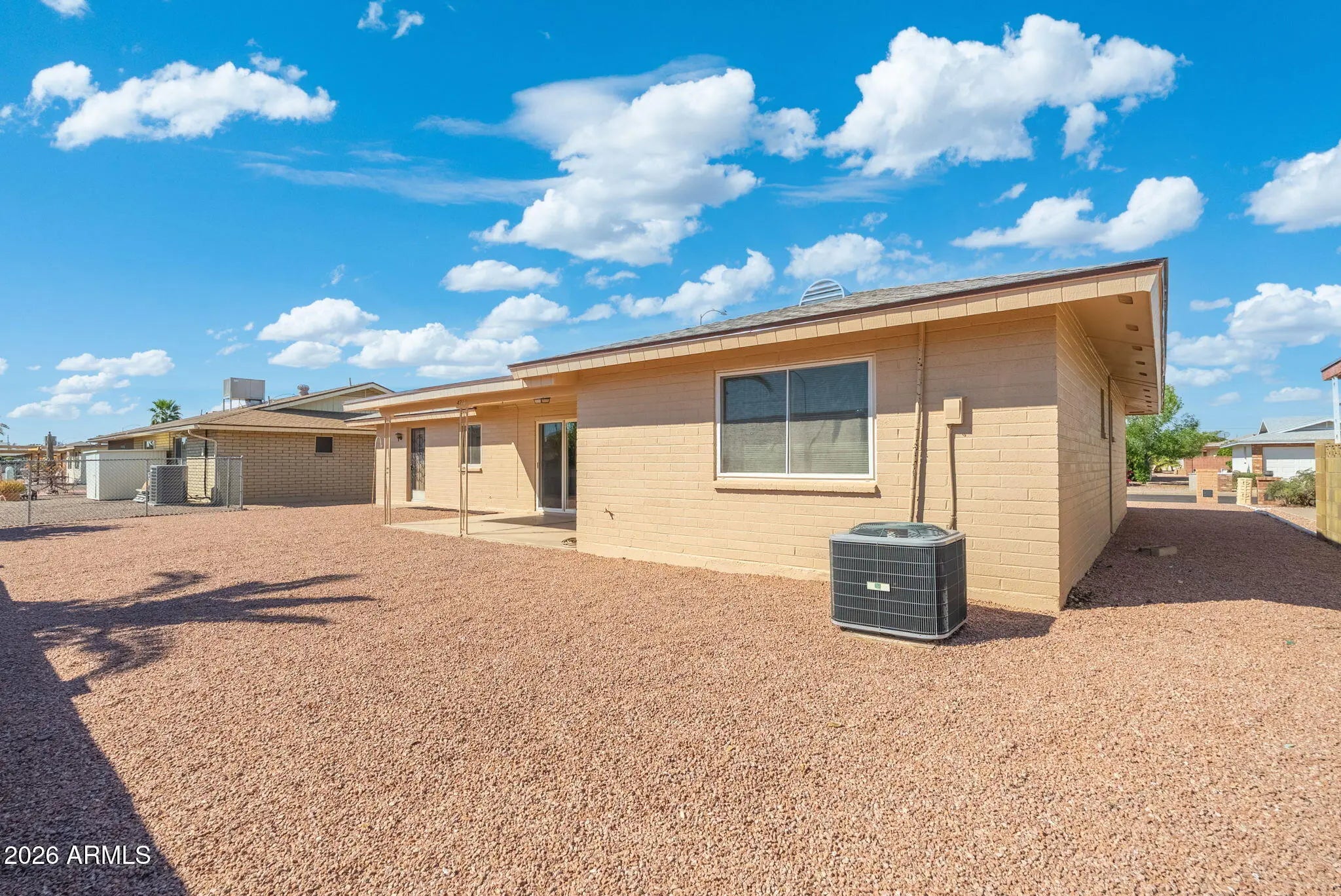 Well maintained 2 bed 2 bath with desirable floorplan including all new windows, roof, A/C and all popcorn ceilings removed. Sturdy block construction, attached 2 car garage with golf cart parking and interior laundry room. This house is freshly cleaned and painted (exterior) and the roof was just put on a few weeks ago. The yard is fenced on 3 sides and would be relatively easy to fully enclose if need be. Sunland Village is one of the best, low-cost active adult neighborhoods in the East Valley with tennis, pickleball, swimming pools, hot tub, exercise room, a mature 18 hole golf course, and neighborhood restaurant with awesome Fish Fridays. This home is across the street from the rest of Sunland Village, but is very close to a huge City of Mesa park, with plenty of space to walk This home is across the street from the rest of Sunland Village, but is very close to a huge City of Mesa park, with plenty of space to walk your dogs, play with kids or grandkids, and even fish in the stocked lake. It's a little quieter on this side of Greenfield, perfect for those that value their privacy but still want access to the clubhouse and all amenities offered by Sunland Village!