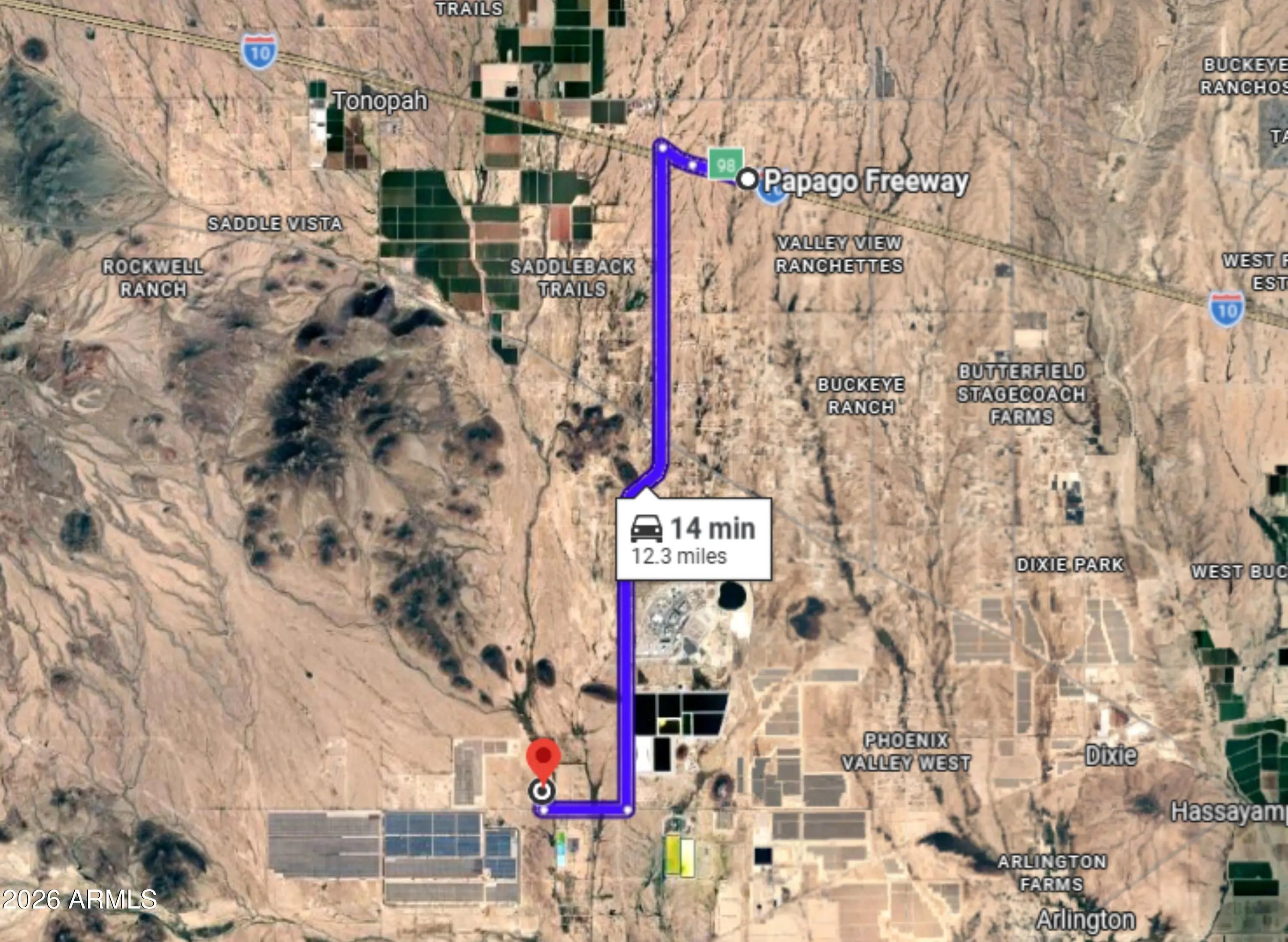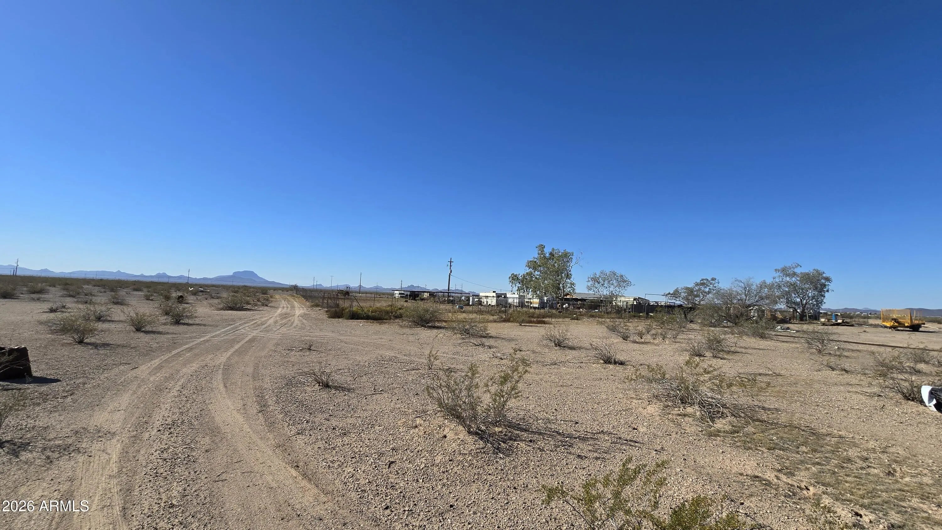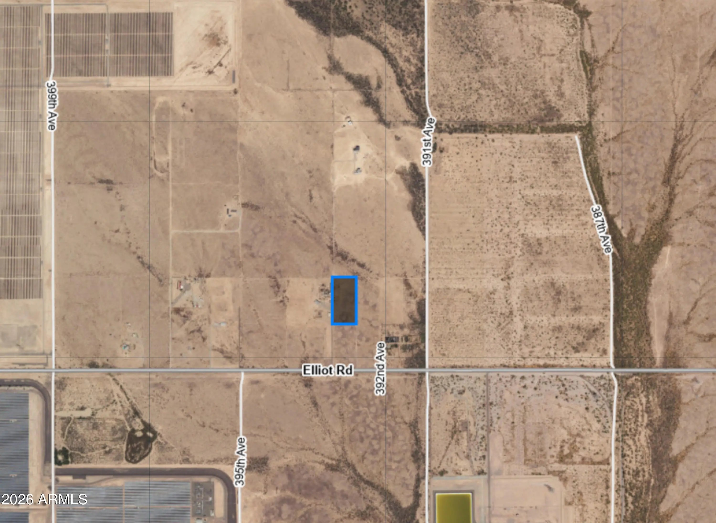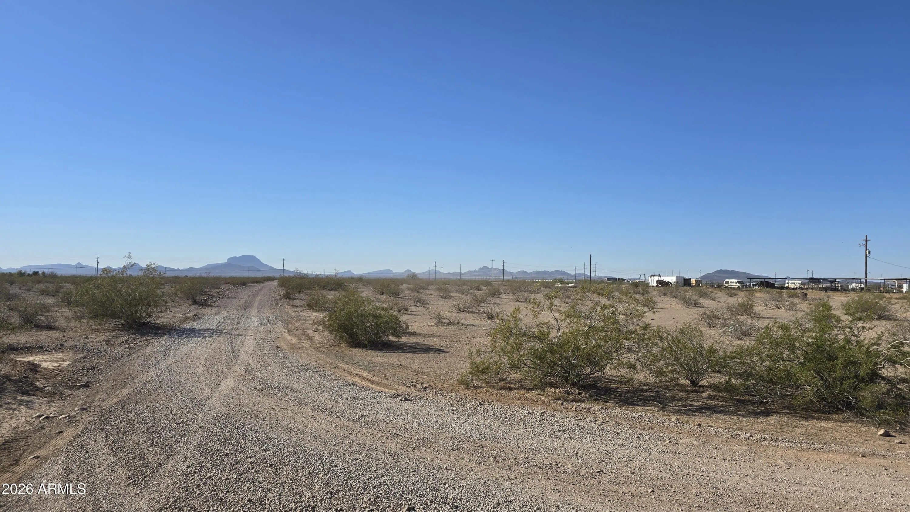 5+ Acre fully fenced property. Great access to your new spot with paved roads from the I-10 to Elliott Rd and just a short drive up the well maintained 391st Ave. Power on the property line. Flat land with natural vegetation. Mountain views and lots of room for your home and projects. The horse/cow corrals can stay with the property if buyer would like to have them. Seller is offering financing with 20% down. No HOA, no credit check. Build what you want when you want. If you like peace & quiet, rural areas and paved roads, this is the one for you!