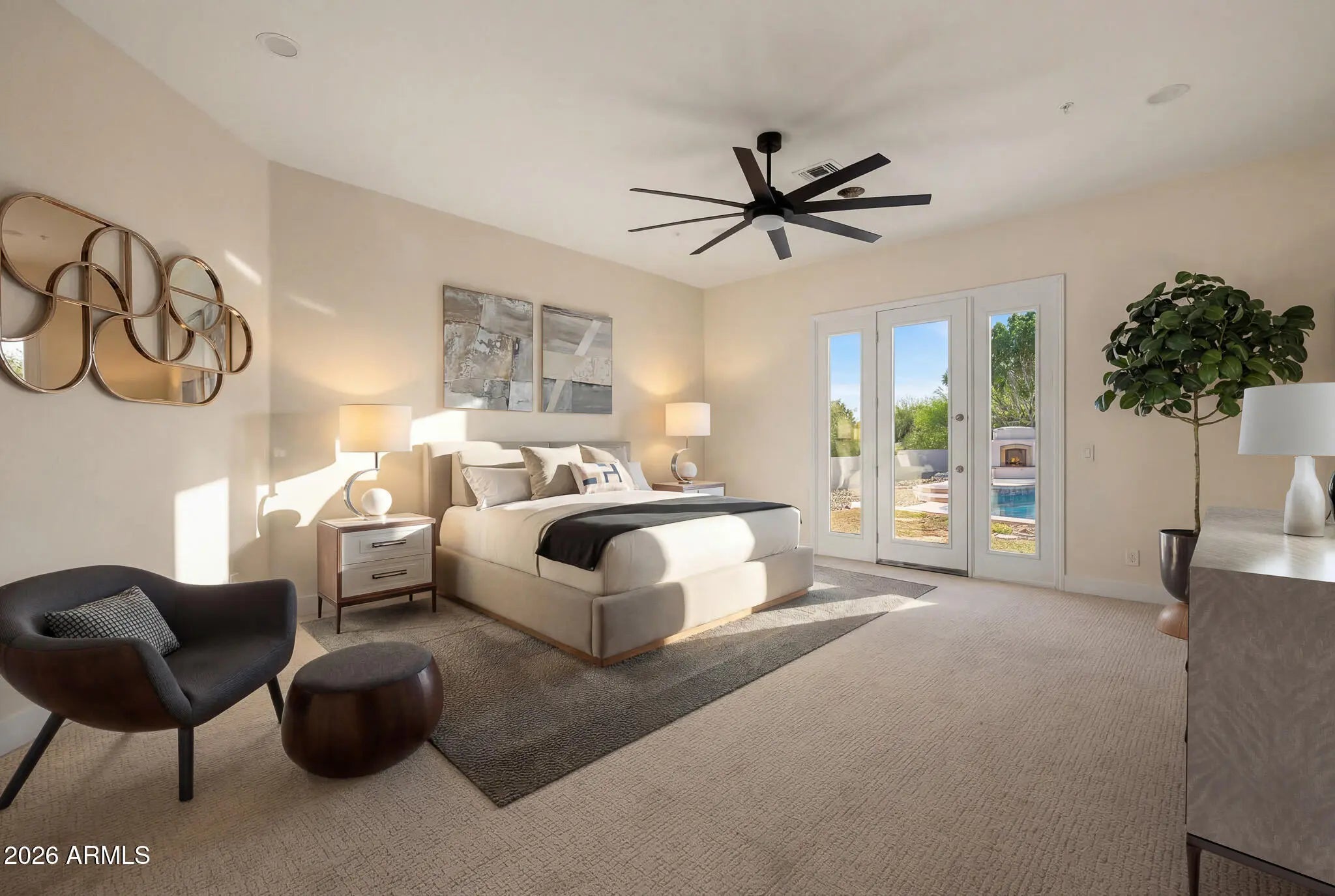 Experience Arizona living at its finest in in the heart of Cactus Corridor. This home sits at the end of a cul-de-sac on .65 acres. The home has been completely remodeled and includes 6 bedrooms 4.5 baths, a separate game room, movie/flex room and a 4 car garage. Soaring ceilings, designer fixtures, and refined architectural details create a sense of sophistication throughout. The gourmet kitchen boasts premium appliances, quartz countertops, and custom cabinetry, flowing into expansive living and entertaining spaces. This home boasts indoor and outdoor living at its finest with the addition of four 16 feet sliding glass doors that all open directly to the backyard. A large roof deck provides exceptional views of Camelback and the McDowell Mountains.