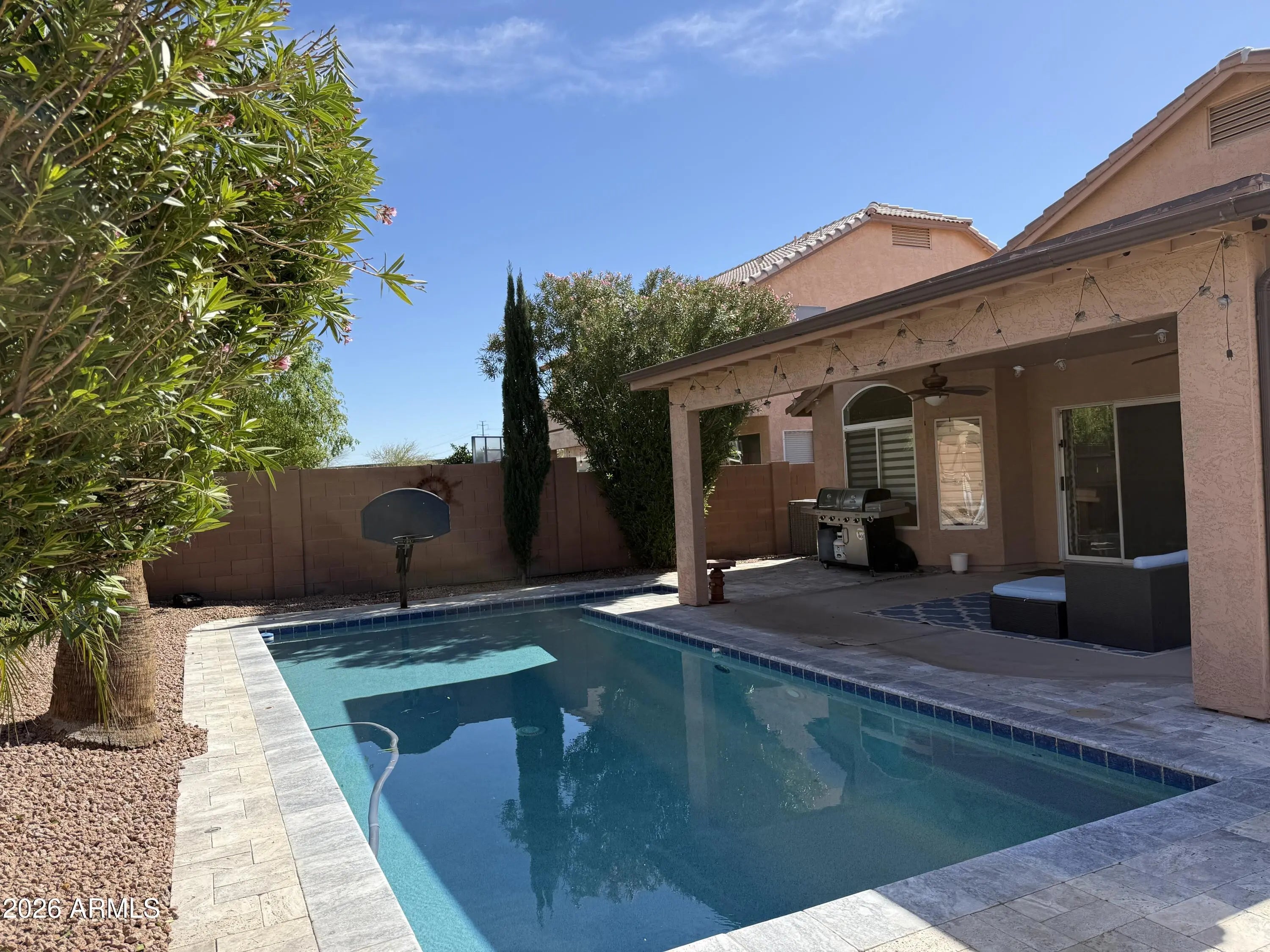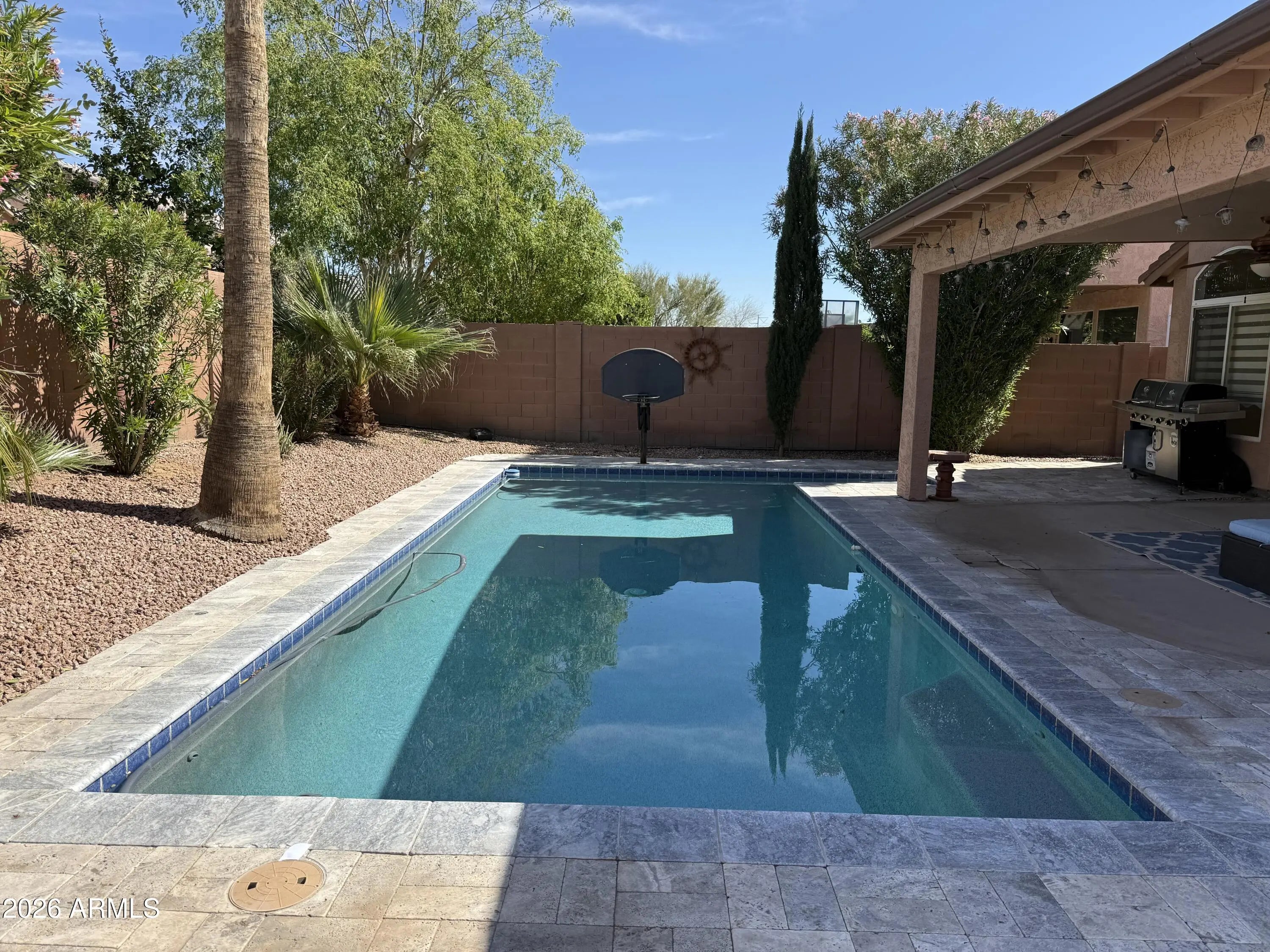 Welcome to this beautifully designed home offering just under 1,900 sq ft of thoughtfully laid-out living space, featuring 3 spacious bedrooms, 2 full bathrooms, and an expansive great room. The kitchen showcases sleek European-style cabinetry, stainless steel appliances, and a central island perfect for gathering--seamlessly connecting the dining and living areas for easy conversation and comfort. Fresh interior paint and vaulted ceilings enhance the bright, open feel throughout. Step outside to your own private backyard retreat complete with a sparkling pool, covered patio, and low-maintenance landscaping. Located in the heart of Ahwatukee, this stunning DR Horton home is one you won't want to miss! More photos to come!