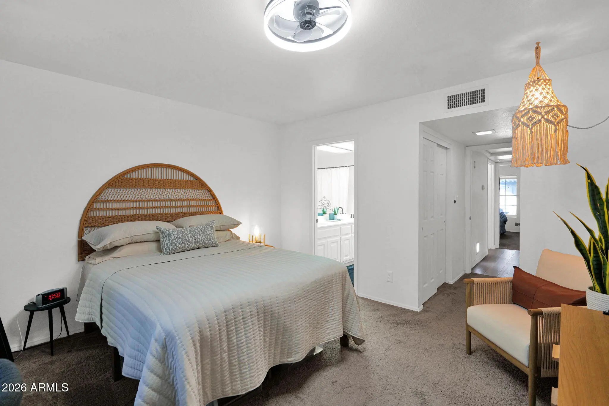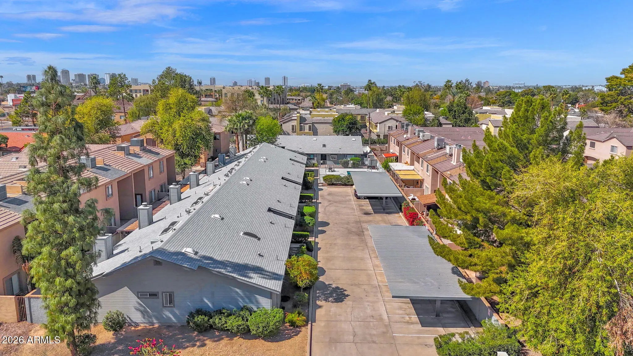 Experience the perfect blend of urban convenience and private retreat in this beautifully remodeled 2 bedroom, 2 bathroom condo located in the heart of Phoenix. Tucked away inside a quiet community of just 10 homes, this end unit offers privacy, style, and the largest patio/outdoor space in the complex. Step inside to a welcoming, modern layout that feels like home from the moment you enter! Thoughtfully remodeled with stylish upgrades throughout. The kitchen shines with white cabinetry, beautiful quartz countertops, a designer tile backsplash, stainless appliances, and a charming garden window above the sink that fills the space with natural light. The living areas flow seamlessly to your expansive private outdoor retreat, making this gem perfect for entertaining or soaking up Arizona's sunny days. With designer accent walls, a striking fireplace, vaulted ceilings, durable vinyl plank and tile floors with cozy carpet in the bedrooms, and beautifully updated bathrooms, this home is completely move-in ready! Additional highlights include 2 assigned parking spaces, affordable HOA fees, and a small, boutique community atmosphere. Plus, removable sun shades on all windows and doors add comfort and energy efficiency while maintaining the clean, contemporary aesthetic. Ideally located with quick access to the SR-51 freeway, Downtown Phoenix, Sky Harbor Airport, and the exclusive Biltmore and Arcadia areas, you're truly close to everything while still enjoying a quiet, tucked-away setting. A true must see!
