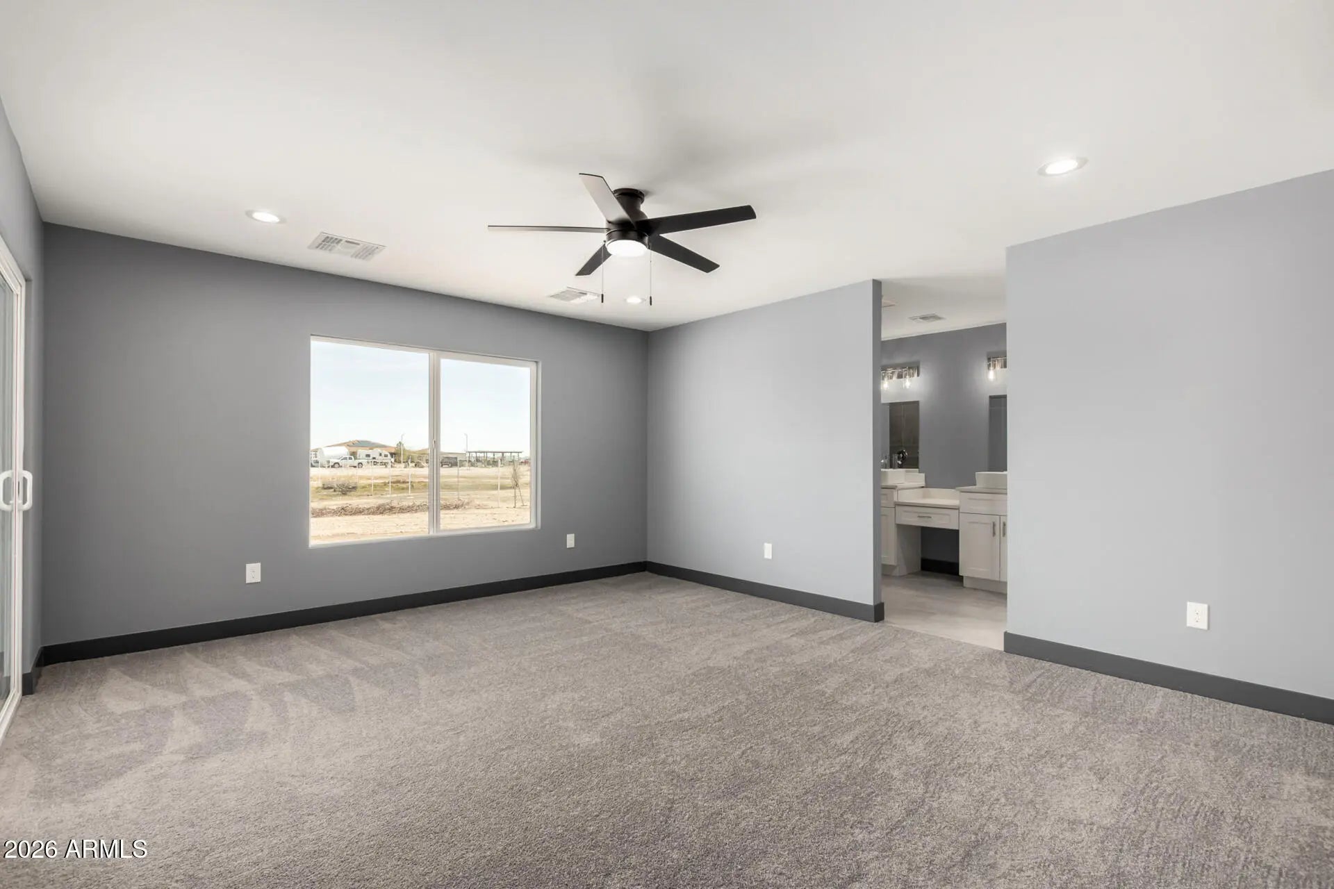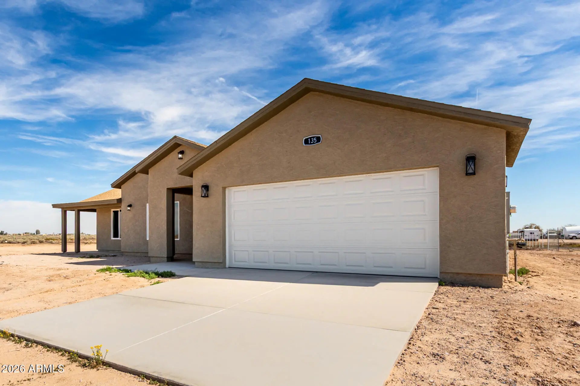 Welcome to wide-open space and incredible mountain views! This beautiful 4-bedroom home sits on a 1-acre lot, giving you plenty of room to dream big--add a pool, build a shop, create the backyard oasis you've always wanted, or simply enjoy the peaceful desert surroundings. Inside, the home feels bright and inviting with tile flooring, modern lighting, tons of natural light, and a clean neutral palette. The kitchen shines with shaker cabinetry, quartz countertops, stainless steel appliances, and a large island that's perfect for gathering, cooking, and entertaining. The spacious primary suite offers a walk-in closet, dual sinks, and private access to the backyard. Step outside and take in the sweeping desert and mountain views--this expansive lot is a blank canvas ready for your vision.