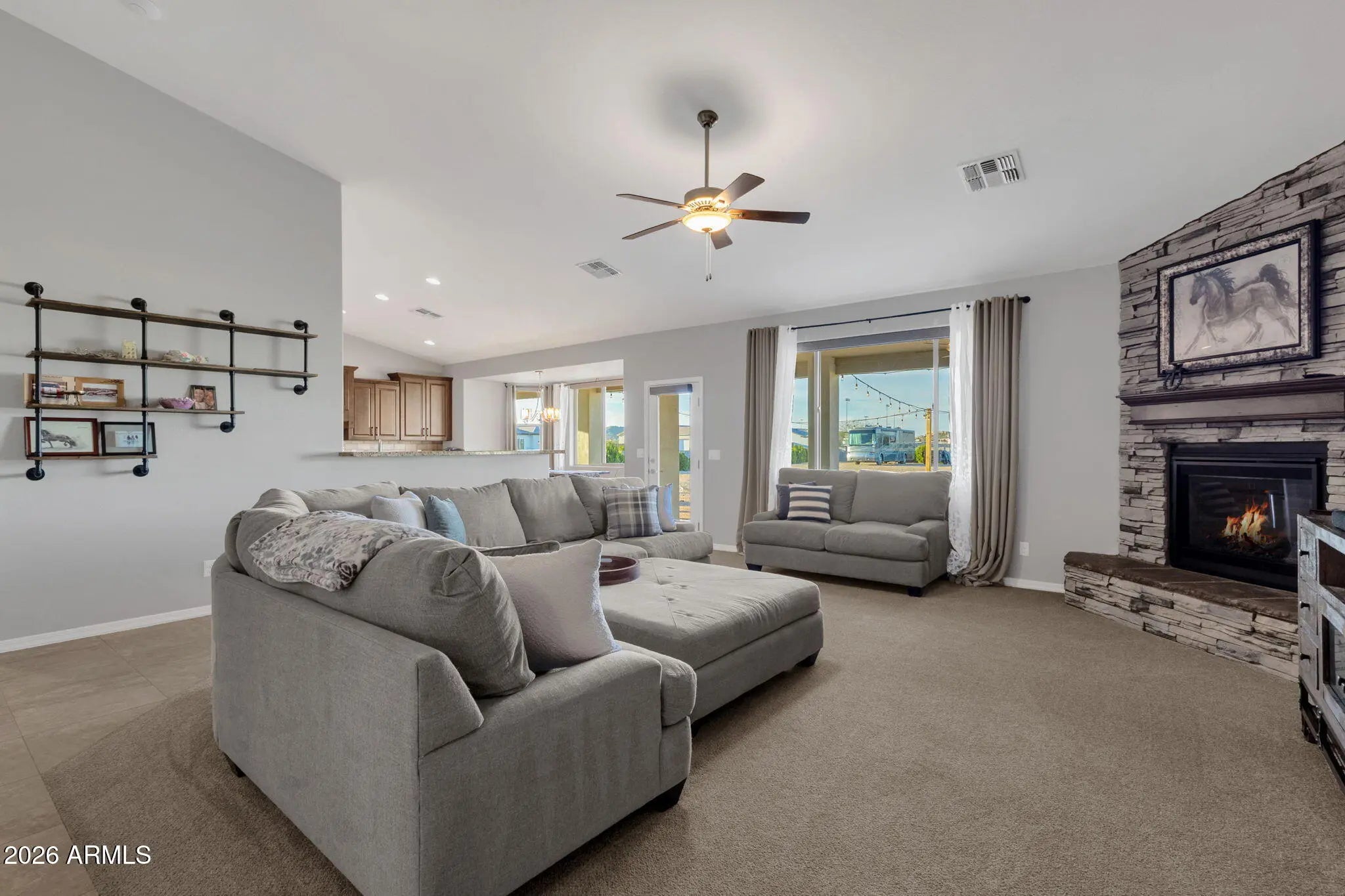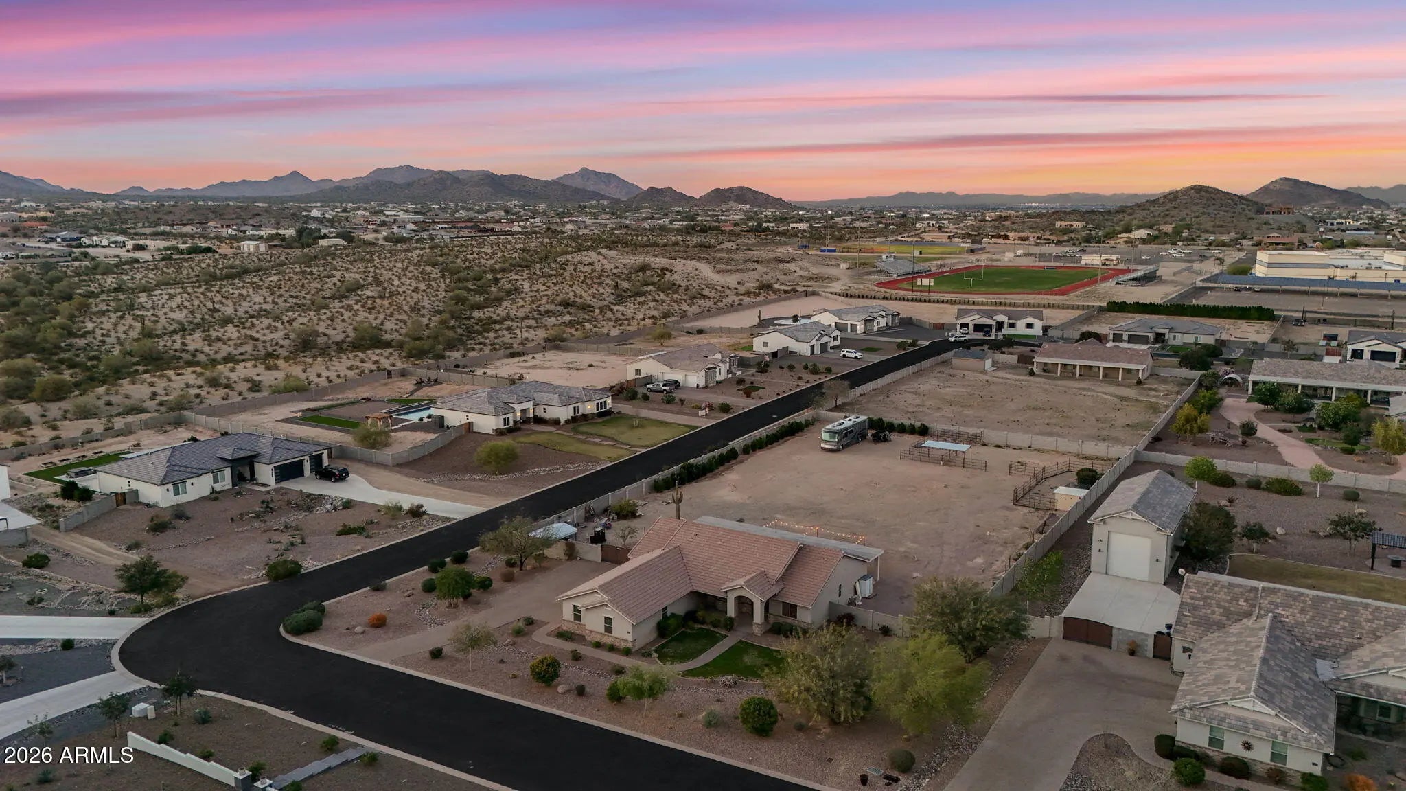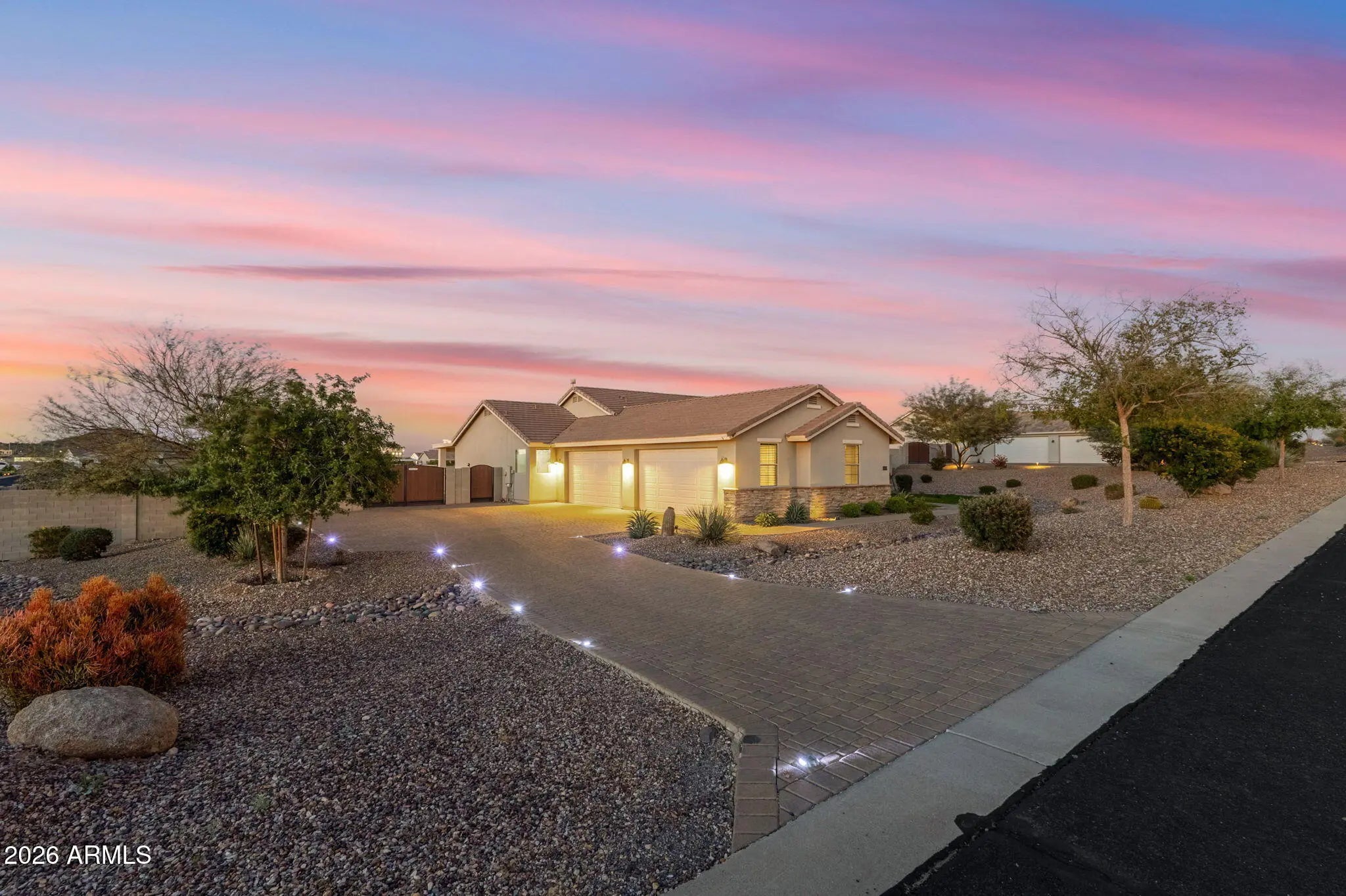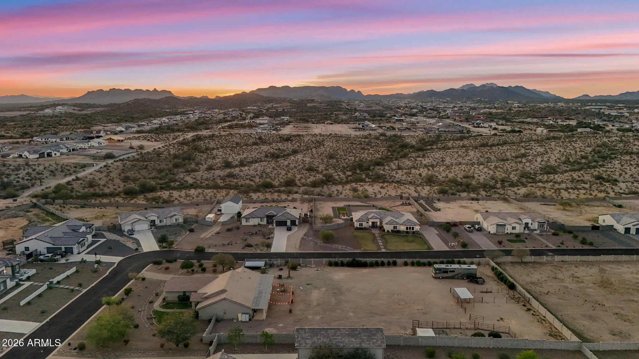 Welcome to a rare opportunity in a small, gated enclave of newer homes in San Tan Valley -- where space, privacy, and flexibility come together in a way that's hard to find. Built in 2019, this 2,328 square foot home offers 4 bedrooms, 2 baths, and a highly sought-after 4-car garage -- plus an RV gate and dedicated RV parking. Whether you need room for vehicles, toys, a workshop, or extra storage, this property delivers. Situated on an expansive 56,000 square foot lot (well over an acre), the possibilities here are truly exceptional. The lot is fully enclosed with a block wall for added privacy and security, and there's already a horse corral at the rear of the property -- perfect for equestrian enthusiasts or anyone wanting space to spread out. Inside, the home features a modern, open layout built for comfortable living and easy entertaining. The split floor plan offers privacy, while the generous living spaces create a welcoming environment for gatherings or quiet evenings at home. The backyard is currently a blank canvas -- giving you the freedom to design exactly what you want. Dreaming of a resort-style pool? Detached guest house? RV garage? Outdoor arena? Lush landscaping? With this much land, you don't have to choose -- you can create it. Homes in gated communities with this lot size, garage capacity, and flexibility rarely come to market. If you've been waiting for space without sacrificing newer construction, this is the one you need to see.