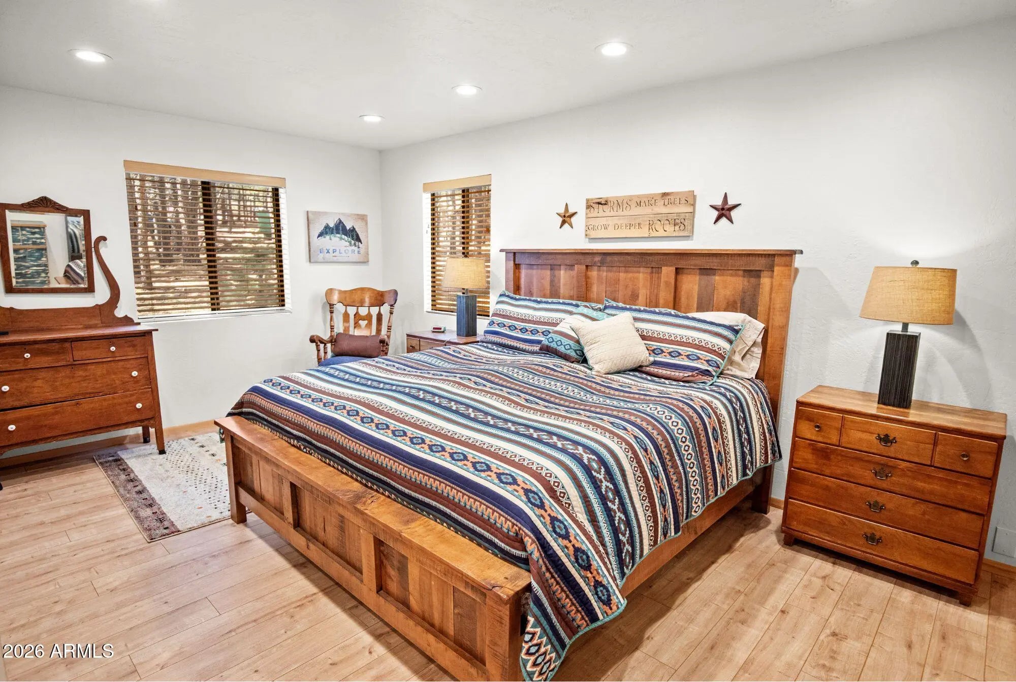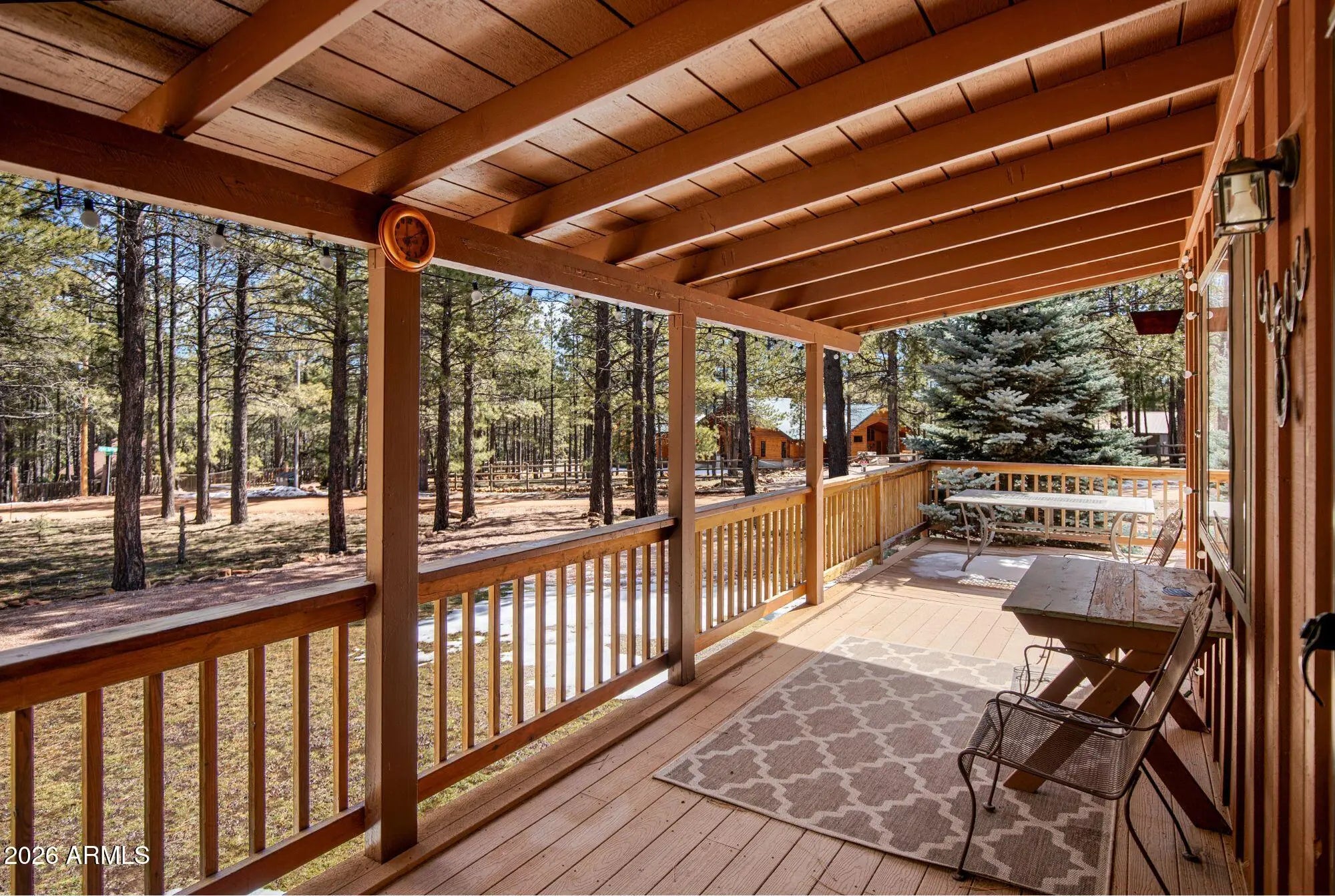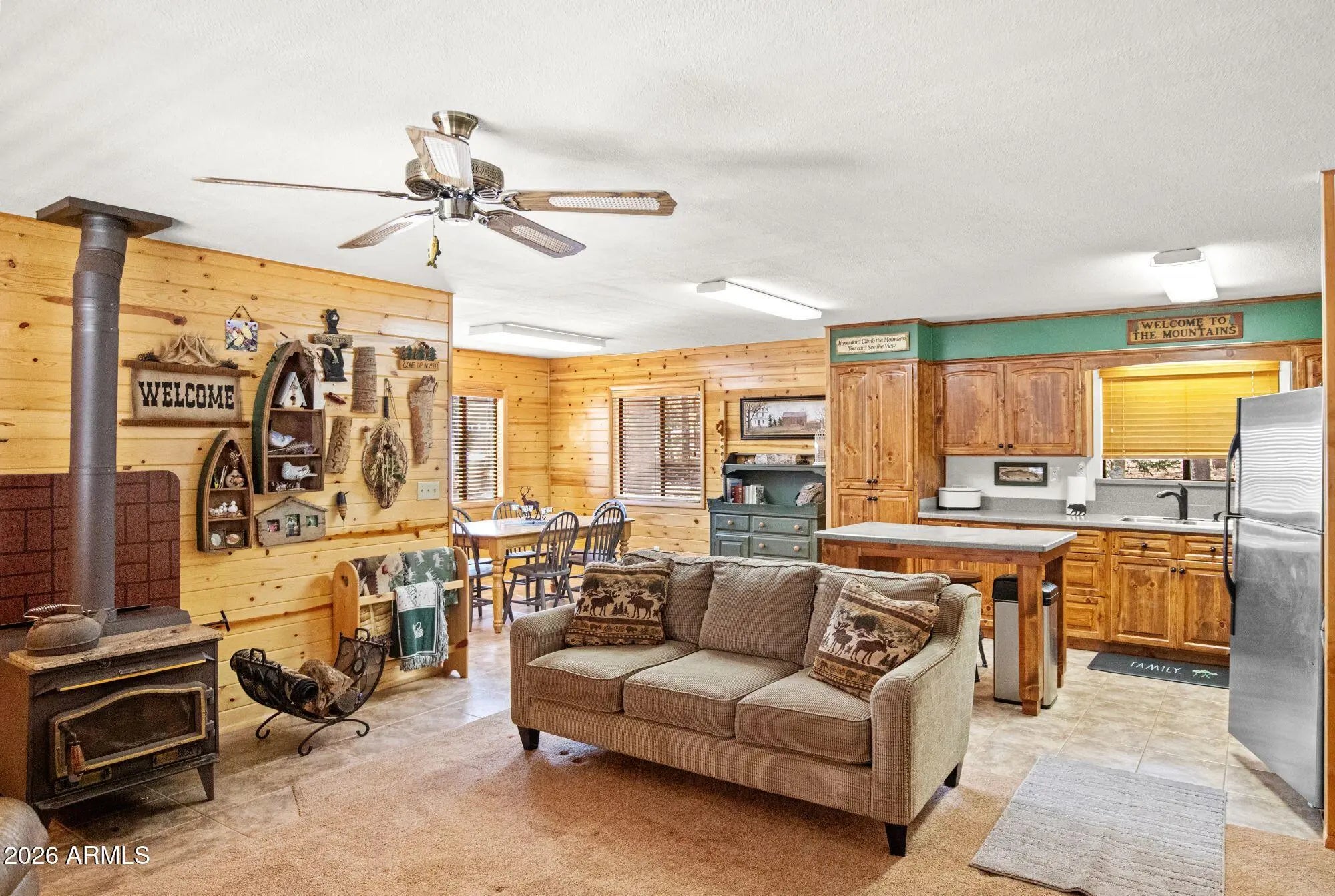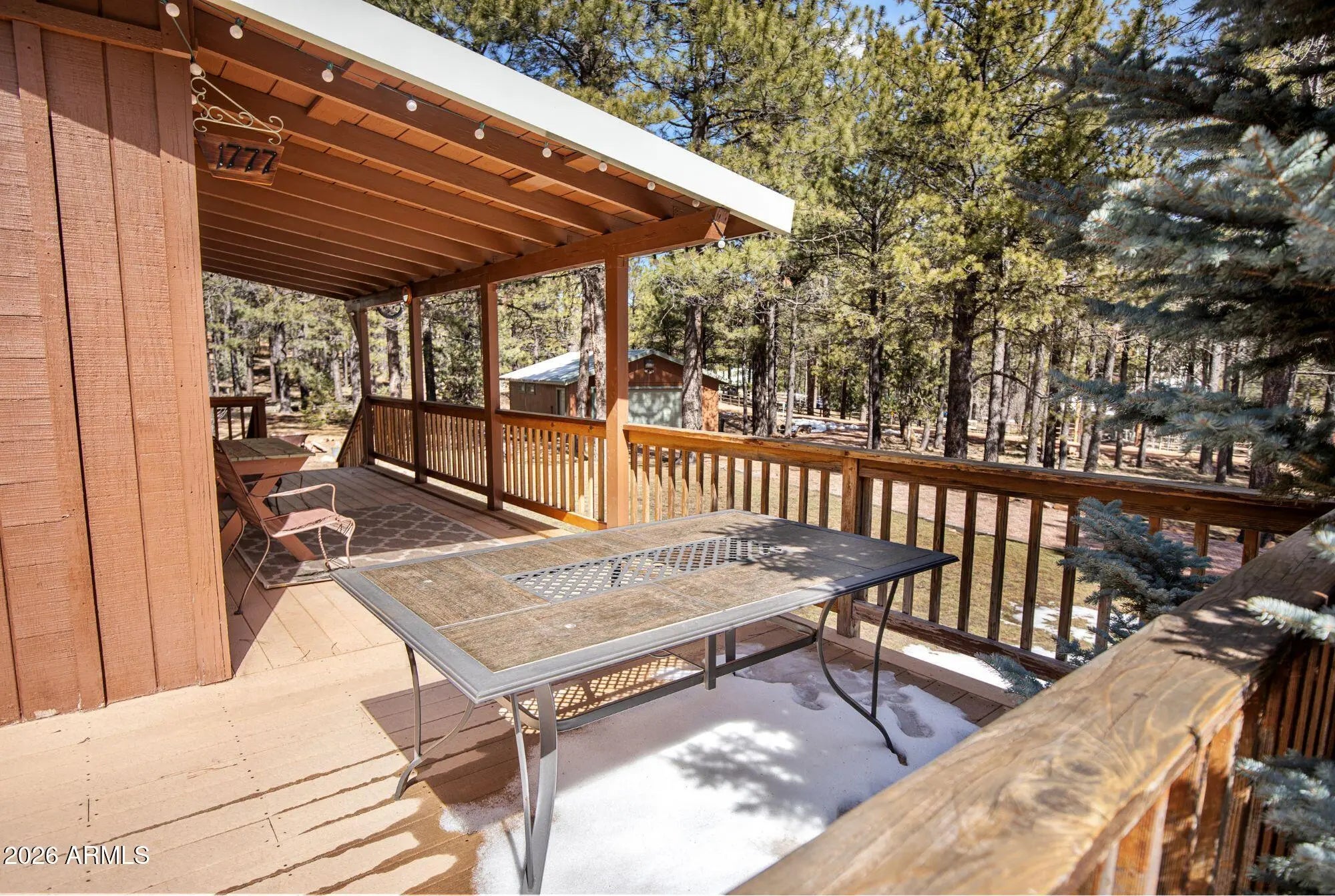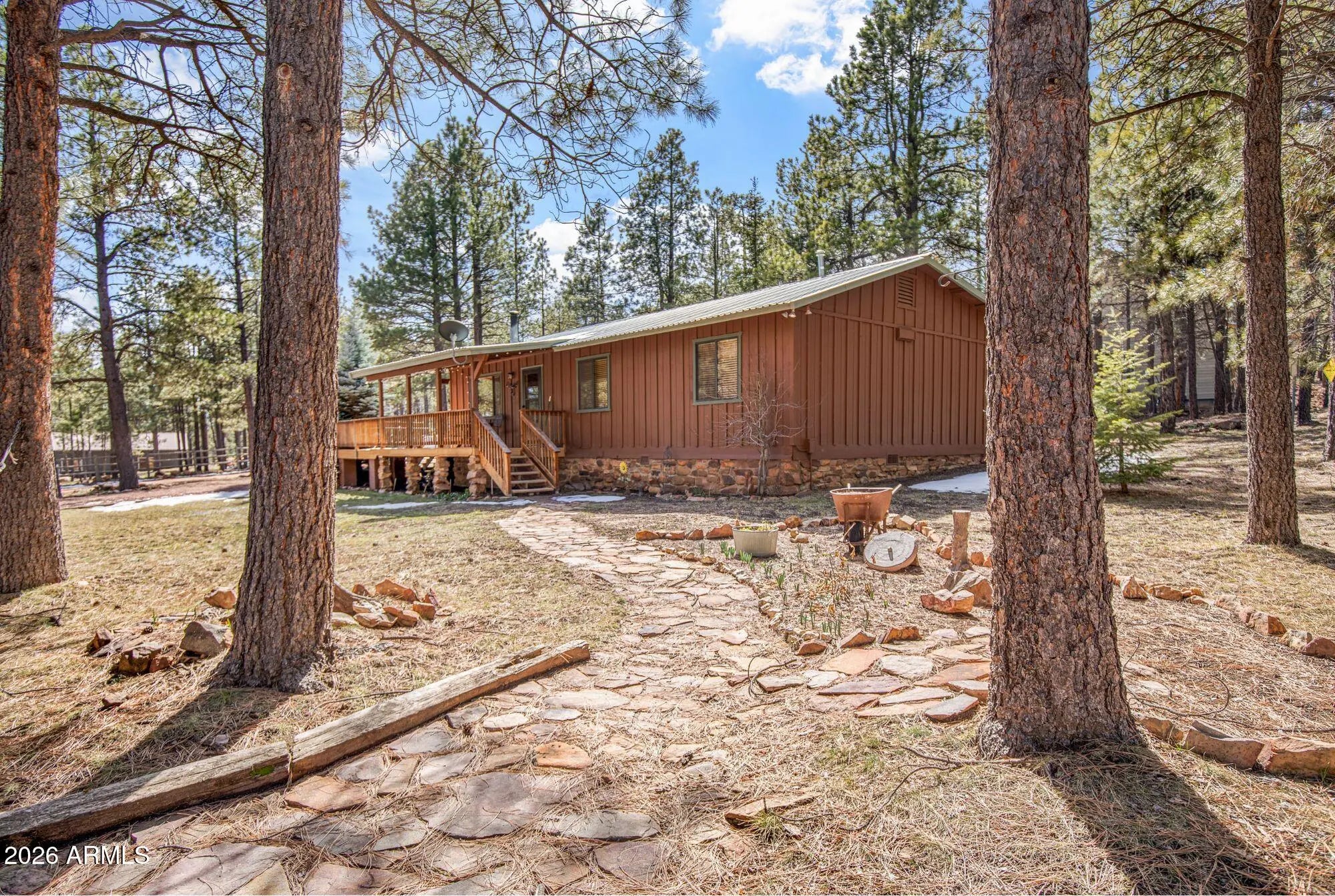 Welcome to your perfect tall-pines retreat in Forest Lakes -- a beautifully updated 3 Bed / 2 Bath cabin that is truly move-in ready and designed for easy, relaxed mountain living. Set on a coveted south-side corner lot (with fewer homes and added privacy), this lovingly maintained cabin offers thoughtful upgrades and a layout that simply works. The property features a 3-way entry driveway with pull-through access, making camper or trailer storage simple and stress-free. The large detached garage provides plenty of room for your forest toys -- ATVs, kayaks, bikes, and all the gear that comes with cabin life. The spacious front porch is made for slowing down. Morning coffee in the cool mountain air, summer dinners with friends, or quiet evenings listening to the breeze through the... ... pines, this is where memories are made. Inside, the home offers an open-concept layout where the kitchen, dining, and family room all flow together comfortably in one welcoming space. The newly remodeled kitchen is perfect for gathering -- imagine the kids lined up at the island for weekend pancakes while you cook in your beautifully updated kitchen. From here, you can easily watch the family in the living area or keep an eye on the kids heading in and out to the porch. The family room is warm and inviting, anchored by an adorable freestanding wood-burning stove and offering another easy access point to the porch -- ideal for entertaining, hosting holidays, or simply cozying up after a day outdoors. Rustic wood walls add authentic cabin charm while maintaining a clean, refreshed feel throughout. The owner's bedroom suite is a rare and special feature for the area. Generously sized, it includes dual "his and hers" closets and its own private bathroom -- something not commonly found in Forest Lakes. The en-suite bath has been newly remodeled with a beautiful walk-in shower and a convenient laundry/storage area. Two additional bedrooms share a separate guest bath with a tub/shower combo, offering comfort and convenience for family and visitors. Major updates have already been completed, including a tankless water heater, so you can enjoy modern efficiency with mountain charm. The home is being offered mostly furnished (a detailed list will be provided), making your transition into cabin life simple and seamless. Beyond the home itself, the lifestyle is what truly sets this property apart. Just a two hour scenic drive from Phoenix, you can revel in the world's best summer weather with average temps in the mid 70's and a true 4 season climate to enjoy year round. Forest Lakes is surrounded by towering pines, scenic hiking trails, nearby streams, peaceful lakes for fishing, and abundant wildlife. The community is welcoming and close-knit, hosting frequent family-friendly social events throughout the summer -- adding to the true vacation feel of the area. If you've been dreaming of a well-cared-for cabin where everything has been thoughtfully updated and meticulously maintained -- a place where you can simply unpack and start living -- this Forest Lakes retreat delivers the relaxing mountain lifestyle you've been waiting for.