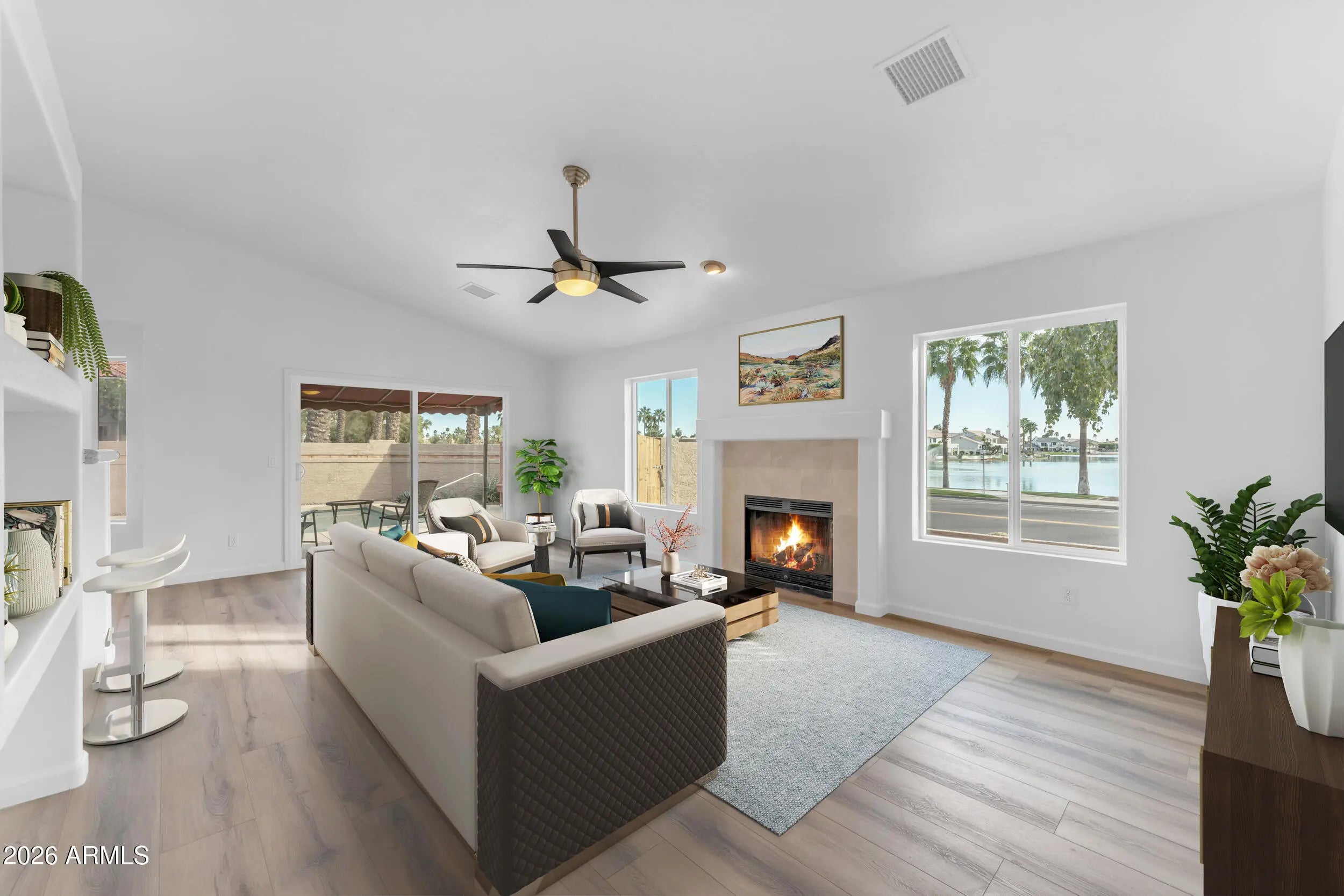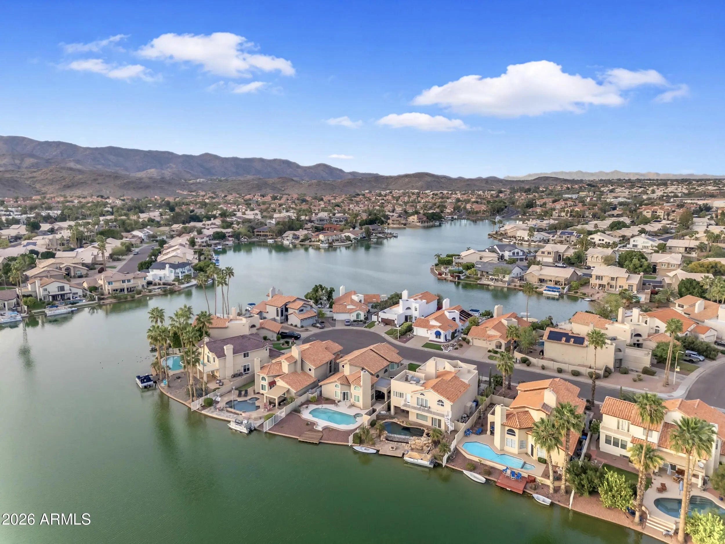 PURSUE EXTRAORDINARY ARIZONA ISLAND WATERFRONT Living in Ahwatukee's Destination Lake community... LAKEWOOD. Soak in AZ Sunsets all year around with 180 degrees of unobstructed Southern Waterway Views & Swaying Resort Lined Palm Trees. This recently transformed Phoenix Magazine Model Residence delivers that AZ Lifestyle you've been searching for! Consider it all... Centralized Ahwatukee Proximity w/all the must-have attractions surrounding your doorstep including Multiple Freeway Systems, Renowned South Mountain Trail Systems, Multiple Tech/Business Corridors & Scenic Lake Master Plan with Boating/Fishing Privileges & Water Lined Walking/Biking Trails, The desired Great Room Floor Plan influences everyday functionality & features 3 beds, 2 baths, Open Vaulted Ceilings with Bright Natural Light throughout, Central Great Room/Kitchen with Fireplace & Lakefront Views from Multiple Home Spaces! Secluded Owner's Retreat modeling Vaulted Ceilings, SPA-STYLE Bath & Private Slider for Backyard access/views, MOVE-IN READY Interior showcasing NEW OWNER UPGRADES | FEATURES | FINISHES EVERYWHERE... including New Premium Interior Plank Flooring & Baseboards throughout, New Interior & Exterior Paint Schemes, Newer 2022 Primary Luxury Bath Design, Upgraded Kitchen Finishes, 2022 HVAC System & Complete ROOF Replacement 8/2024 (see upgrade list for all details), Step outside to Open Palm Line, Mountain/City & Waterfront SUNSET Views... YES ALL THREE!! Private Backyard Sanctuary showcases a sizeable pebble-sheen swimming pool, multiple decorative shade awnings, recently finished pool deck surround and reconstructed Lakeview VIEWING DECK! A truly remarkable AZ Lakewood Residence that offers A UNIQUE RESORT WATERFRONT LIFESTYLE ALL YEAR AROUND!