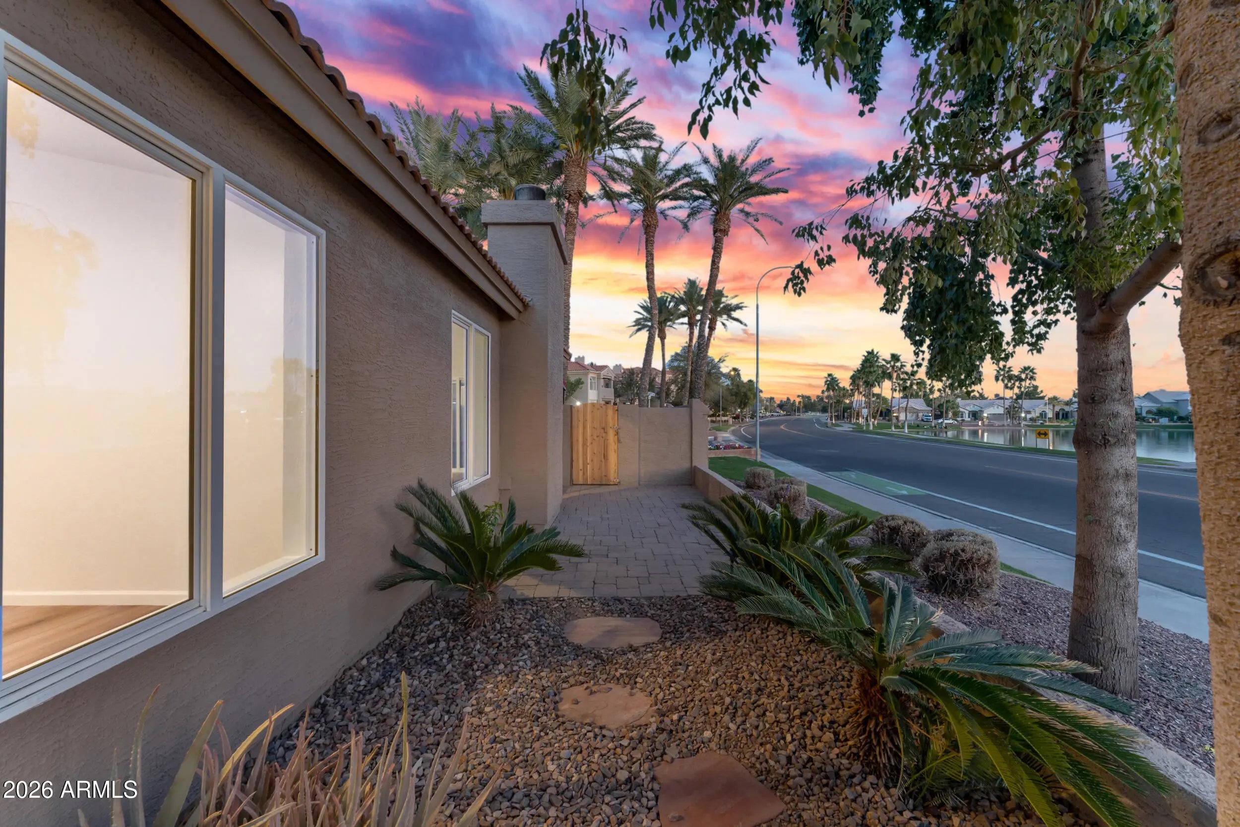 Borders Common Area, East/West Exposure, Waterfront Lot, Sprinklers In Front, Corner Lot, Desert Back, Desert Front, Auto Timer H2O Front