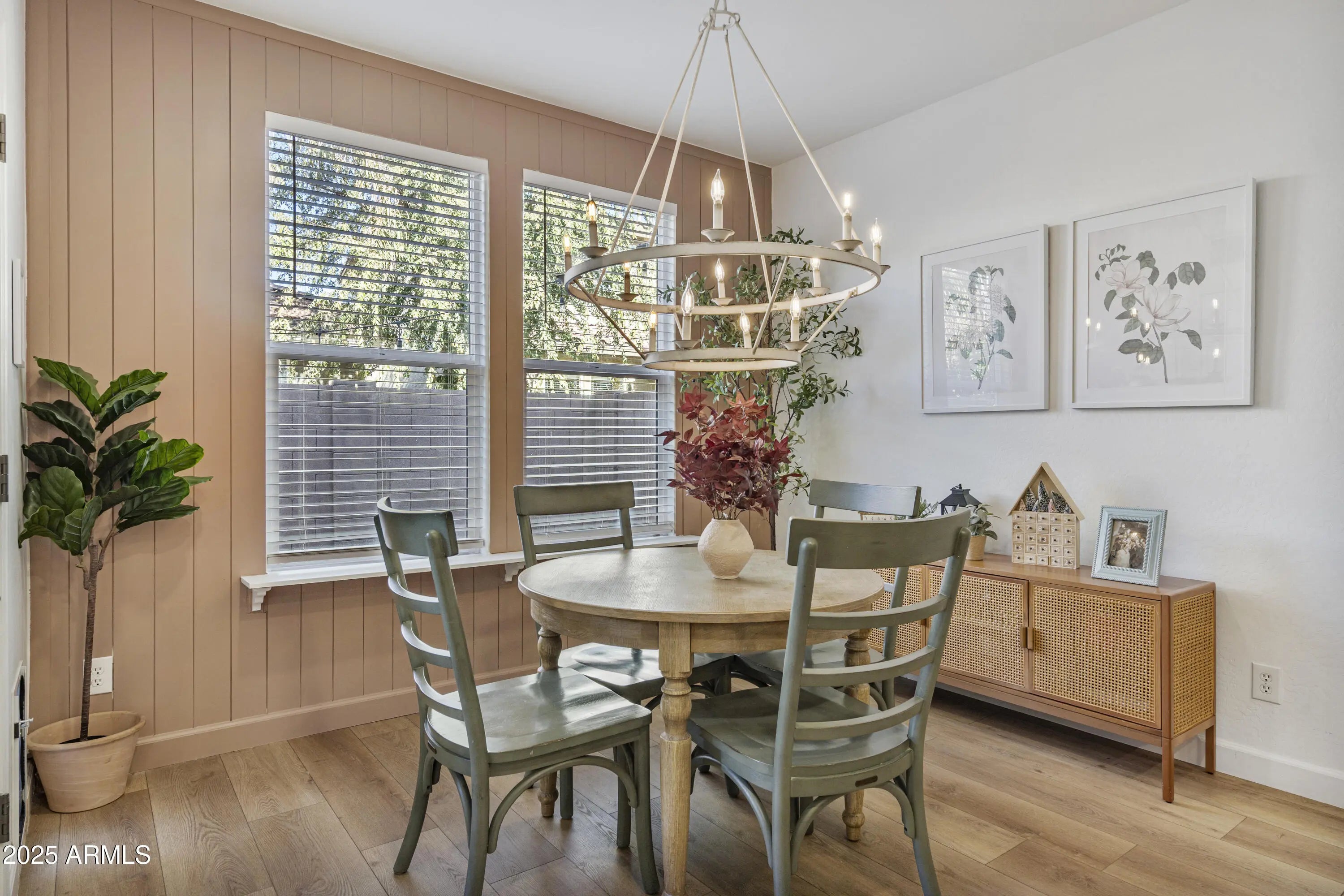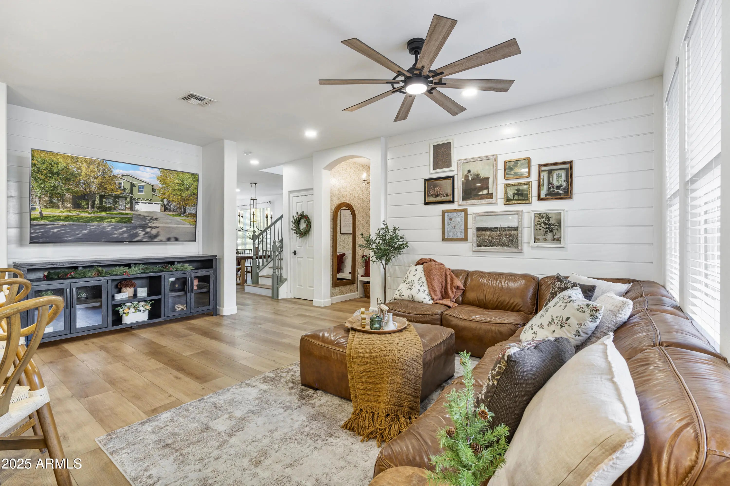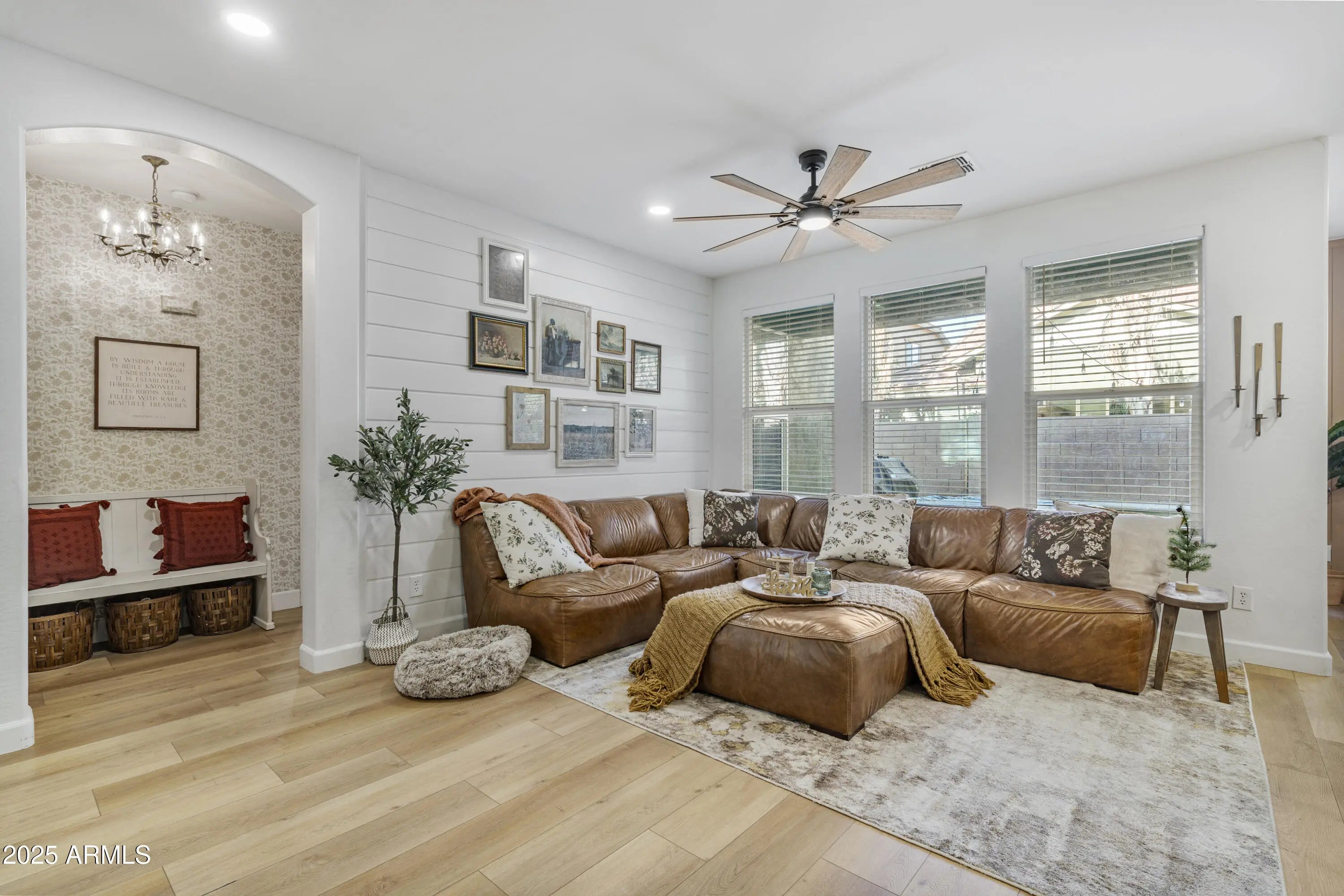 Nestled along a picturesque, tree-lined drive surrounded by lush greenery, this 3-bedroom (Plus 2 rooms with windows that can be used as bedrooms), 3-bath home blends timeless Victorian charm with traditional elegance. Featuring extensive upgrades and luxurious finishes throughout, every space feels warm, inviting, and beautifully designed. Step outside to a backyard with newly installed artificial turf. Perfect for low-maintenance enjoyment and stay comfortable year-round with a newer A/C unit. Enjoy the unbeatable location, just a short walk to the iconic Four Silos, Bashas, and Starbucks, as well as the scenic community lake ideal for peaceful walks and catch-and-release fishing. Plus, a brand-new Mountainside Fitness facility is currently being built just up the road, adding even more convenience. Experience classic beauty and modern living in one of Gilbert's most beloved communities.