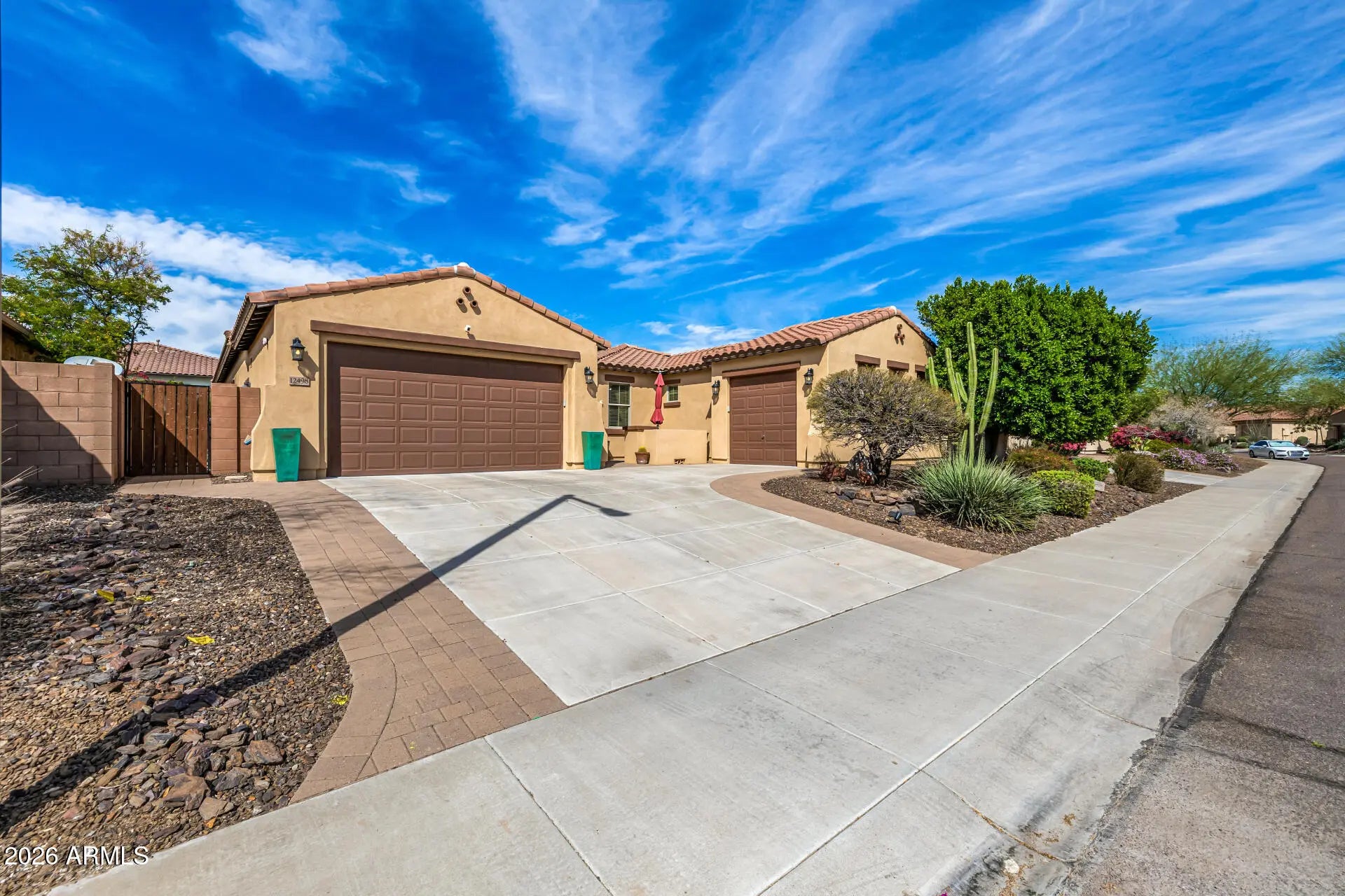 Exceptional home with 4 BEDROOMS + DEN and 4-CAR GARAGE. Situated on an elevated lot with desirable NORTH/SOUTH EXPOSURE in award-winning Vistancia, this impeccably maintained 4-bedroom, 2.5-bath home offers tremendous curb appeal, exceptional upgrades, and true pride of ownership. The expansive open-concept layout features 10-FOOT CEILINGS, a split primary en-suite, formal dining, and a private DEN/OFFICE. The chef's kitchen is the heart of the home, showcasing WALNUT RAISED-PANEL KNOTTY ALDER CABINETRY, GRANITE COUNTERTOPS, designer TILED BACKSPLASH, oversized breakfast bar, and a gourmet KITCHENAID STAINLESS APPLIANCE PACKAGE with 5-burner gas cooktop. Cabinet upgrades include ROLLOUT SHELVES, recycle center, spice racks, and sink tip-outs for enhanced functionality. The split pr suite offers DUAL WALK-IN CLOSETS and a private exit to the backyard. The SPA-STYLE BATH includes DUAL VANITIES, soaking tub, walk-in shower, custom framed mirrors, and comfort-height toilets. RECENT IMPROVEMENTS include: " NEW 50-gallon water heater (2025) " NEW garage door opener & springs (2025 - main 3-car garage) " Exterior painted with high-quality paint (2022) " NEW dishwasher " Updated sprinkler system with NEW PVC Both garages feature EPOXY FLOORS, insulated garage doors, and extensive HIGH-END BUILT-IN CABINETS AND SHELVING, creating exceptional storage and workspace flexibility. The private backyard is designed for enjoyment with an EXTENDED COVERED PATIO, stamped concrete, PAVERS, decorative rock, and a PUTTING GREEN. Additional upgrades include laundry room cabinets, satin nickel hardware, ceiling fans, and 2" wood blinds throughout. Just blocks from the elementary school and surrounded by all that Vistancia has to offer, this move-in-ready home truly needs nothing but its new owners.The community of Vistancia is a master-planned development that includes beautiful homes, parks, pools & hiking trails, award winning community centers & golf courses, commercial & retail shops, along with incredible rolling hills & desert landscape all around! The future 320-acre 5 North at Vistancia commercial core is coming soon, home to the new ALA K-12 charter school. Vistancia has ranked as the #1 Master Planned Community in AZ for 13 years in a row (2013-2025)! Resort-style living at its best. Come & see why!