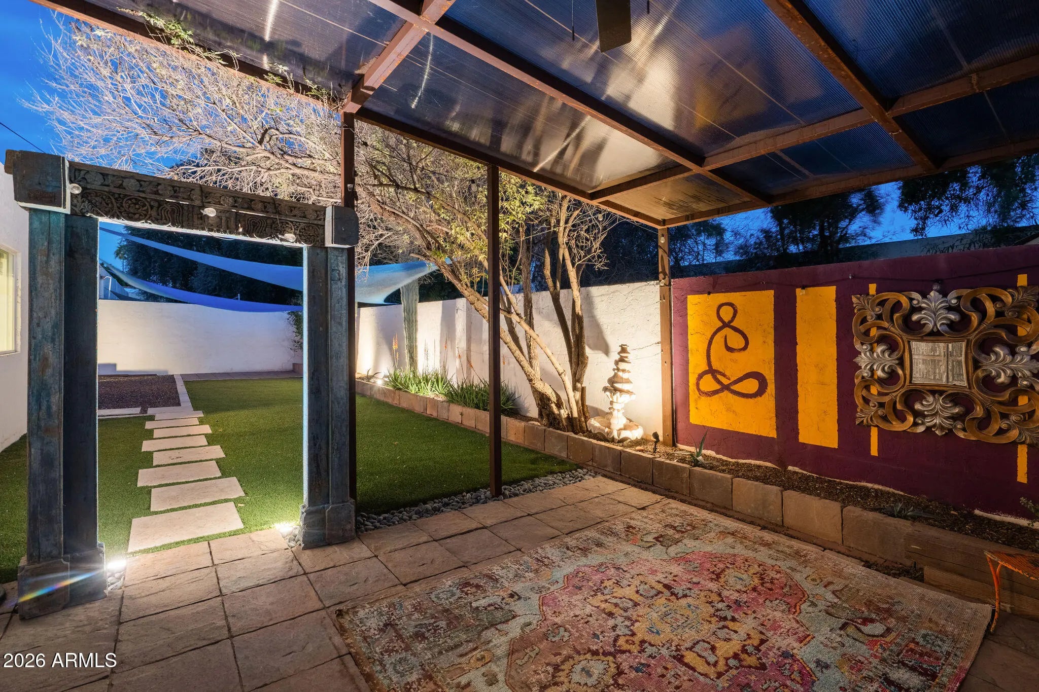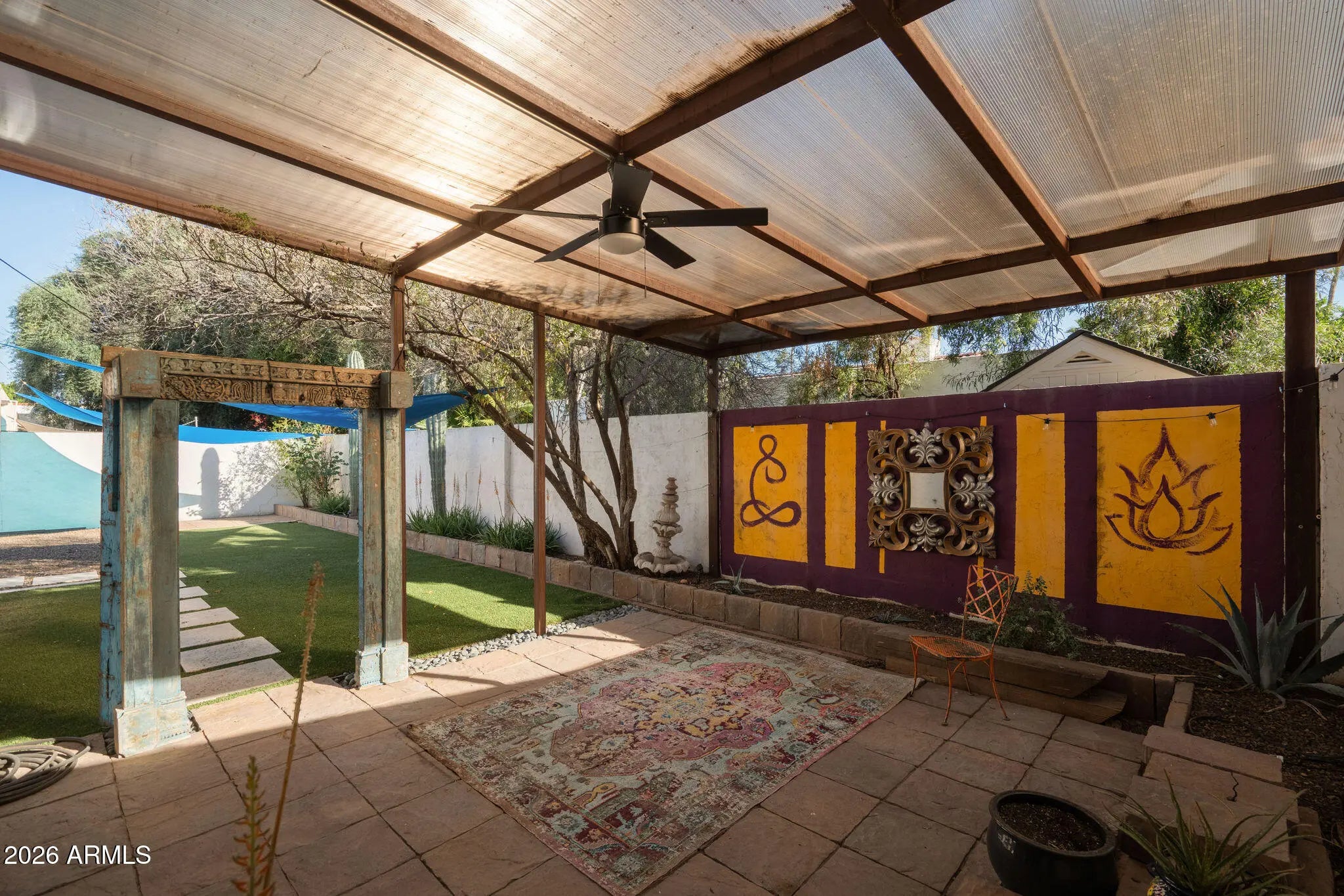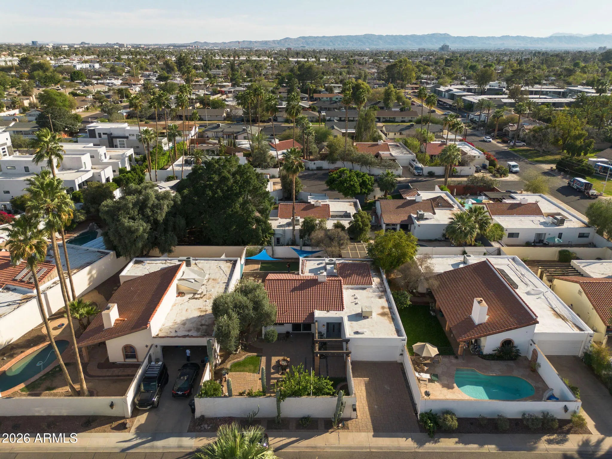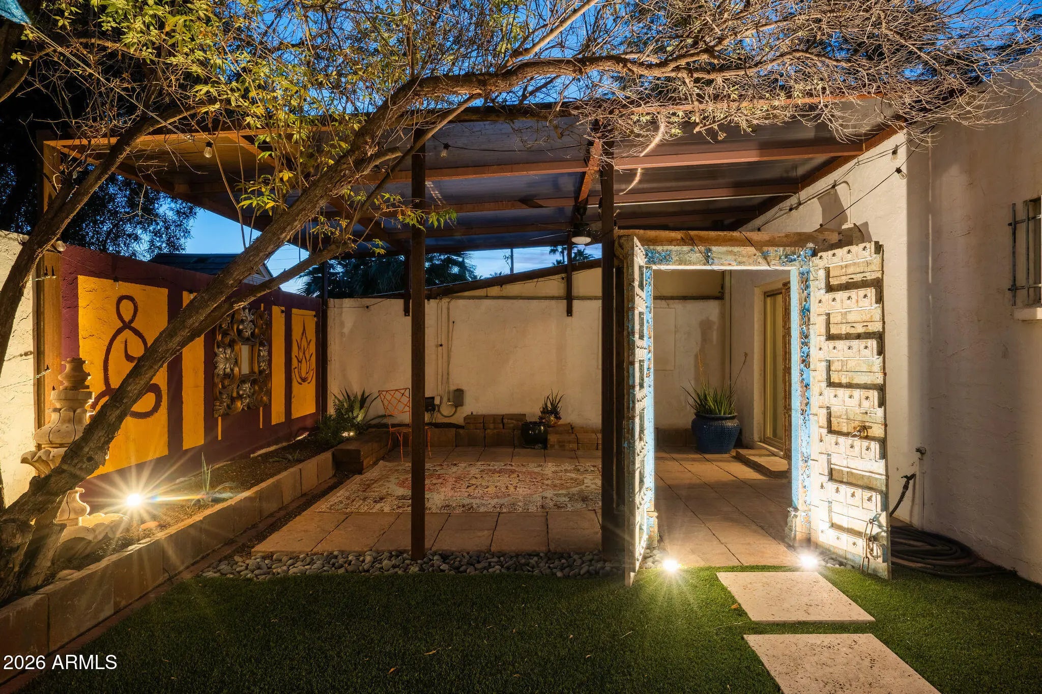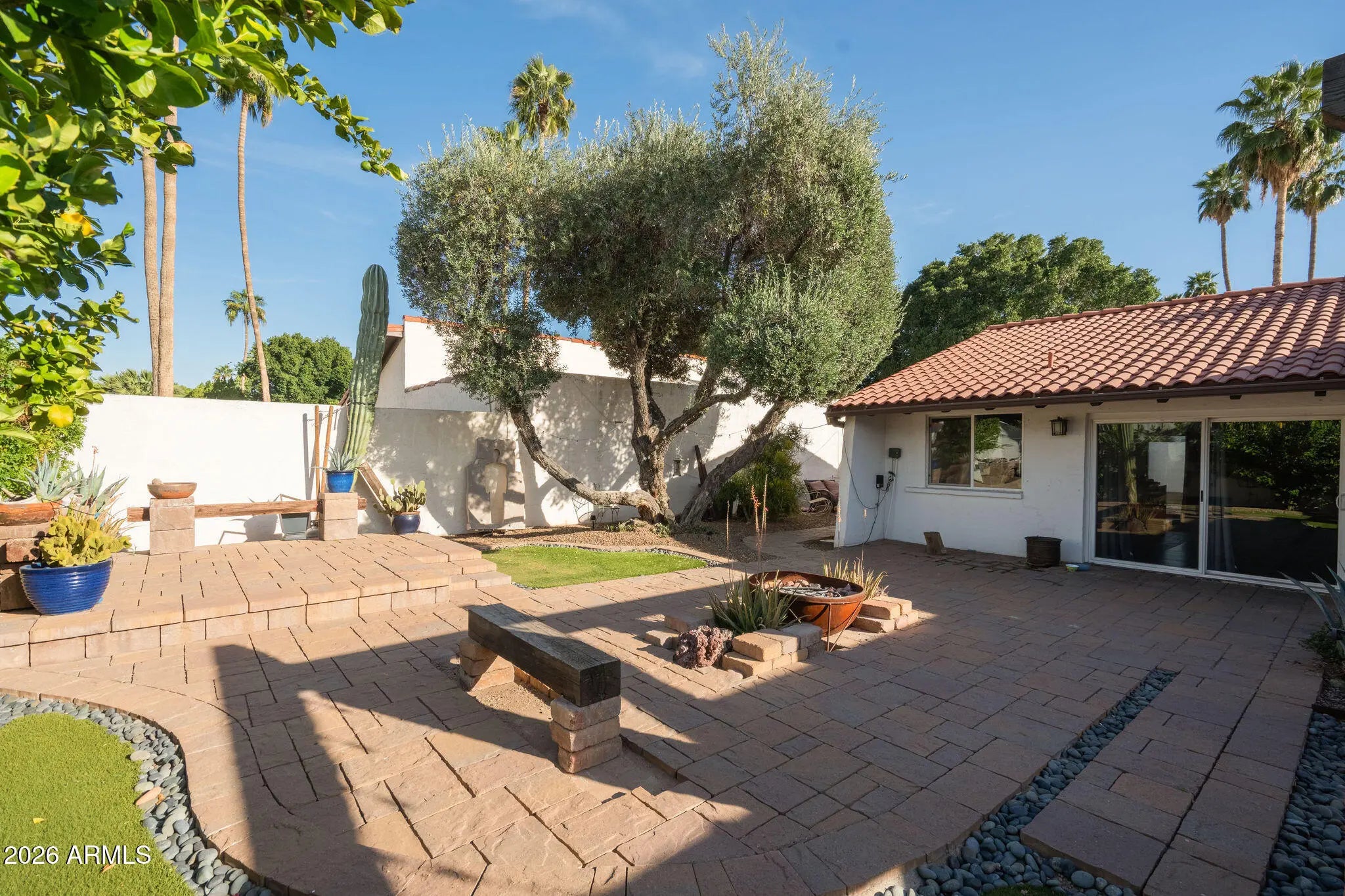 Welcome to 3015 East Weldon, where indoor comfort meets extraordinary outdoor escape. Inside, the floor plan offers spacious proportions across three bedrooms and two well-appointed bathrooms. Modern updates such as the crocodile-pattern quartz kitchen island and beautifully remodeled primary bath add personality, while an attached two-car garage rounds out the practical side of the home with reliable storage and everyday convenience. Step outside and let the real magic unfold! Upgraded Mega-Bergerac pavers define the entertaining area while lush artificial turf delivers year-round greenery without the upkeep. The mature European olive tree casts elegant shade overhead, and the striking Argentine giant cacti adds bold desert personality to a landscape that feels both curated and effortless. This is a backyard designed for gathering, relaxing, and soaking up the Arizona sun. The location is equally impressive, situated between the popular Biltmore and Arcadia neighborhoods. The Pomelo Dog Park sits just moments away, while popular dining destinations like Beckett's Table, Glai Baan, The Wondering Tortoise, and The Starving Artist are all nearby. And easy access to AZ 51, I-10, Loop 202 and Phoenix Sky Harbor Airport keep you connected to everything the Valley offers. This home provides character, comfort, and an unbeatable central location. And the best part? No HOA!