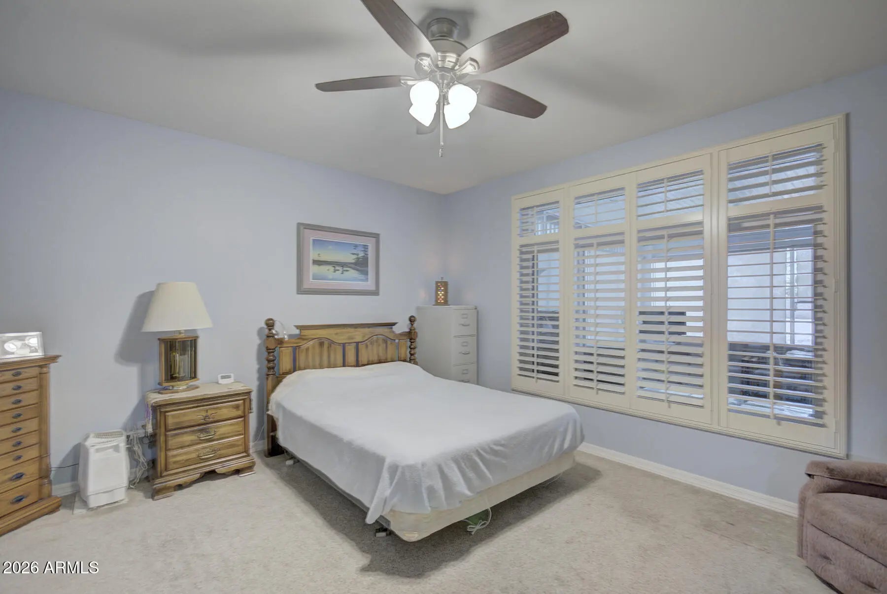 Meticulously maintained property located in Sun City West. Updated 2 bed, 2 bath home on an oversized lot (18,814 sq ft) beautiful mature landscape w/covered front & back patios-perfect for entertaining! The expansive 524 sq ft sunroom offers incredible versatility perfect for a hobby space, game room, office, or additional entertaining area. Upgrades completed in 2020 include carpet & laminate flooring in all the right places, new interior paint & fully remodeled bathrooms. New AC 2023. Plantation shutters enhance key windows, and the PAID-OFF solar system offers energy savings. Gas stub ready for your outdoor BBQ. Garage offers 2 car w/golf cart extension w/built-in cabinets & Mini Split AC (2021). Spacious layout, great curb appeal, & move-in ready condition make this home a must see.