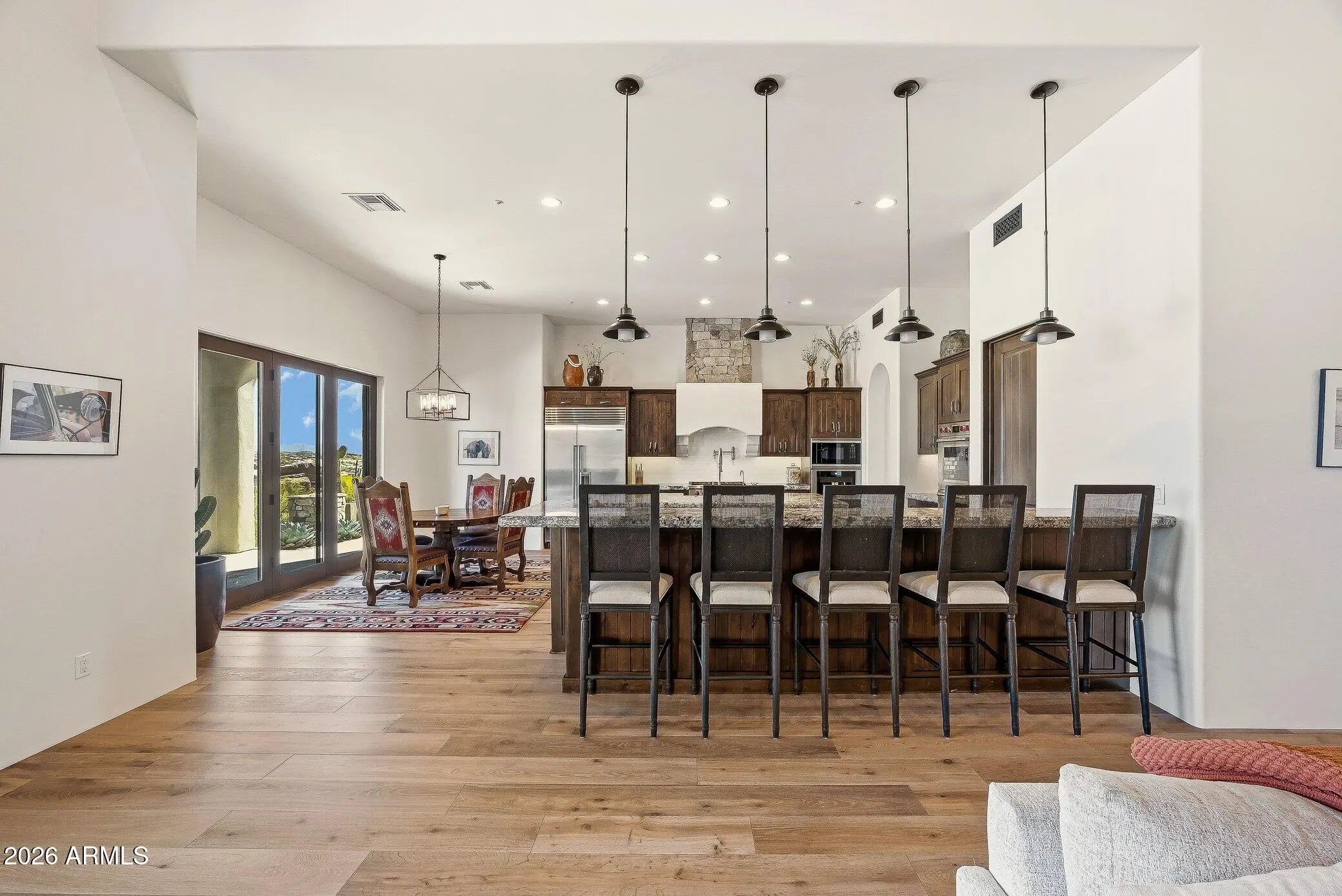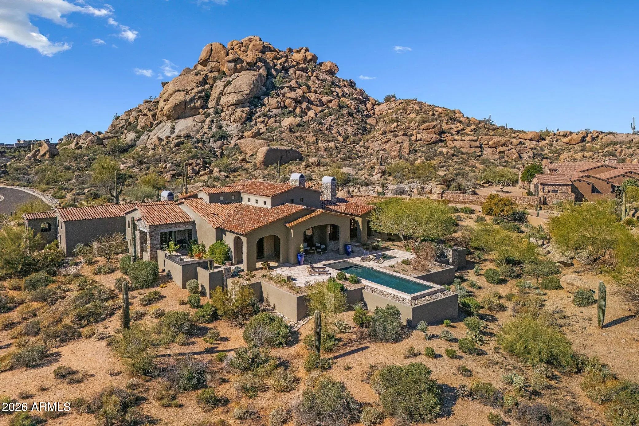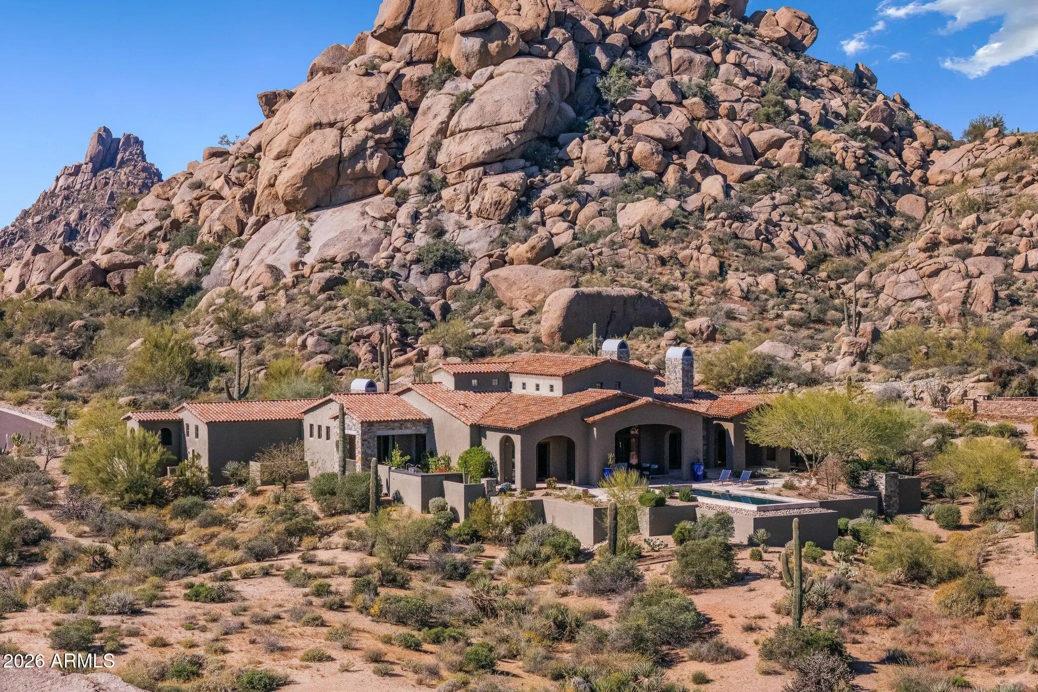 This Pinnacle Canyon estate is where dramatic desert beauty meets elevated desert living. Set against striking boulder outcroppings and sweeping mountain views, the home feels both private and inviting, with a warmth that is rarely found. Inside, timeless architecture is enhanced by thoughtful recent updates, including engineered French oak hardwood flooring completed in February 2026 and a full interior paint refresh in July 2024. Rich stonework, natural textures, and a custom mesquite office door installed in August 2025 add depth, character, and craftsmanship throughout. The chef's kitchen opens effortlessly to generous living spaces designed for relaxed daily living and seamless entertaining. Outside, a resort style pool, expansive outdoor living areas, and updated landscaping completed in October 2024 create a private North Scottsdale retreat for quiet mornings, sunset gatherings, and everything in between. Surrounded by the natural beauty of Pinnacle Canyon, this is a home that feels tucked away, yet deeply connected to the best of the desert lifestyle. A property with this kind of presence, setting, and polish is truly a rare find.