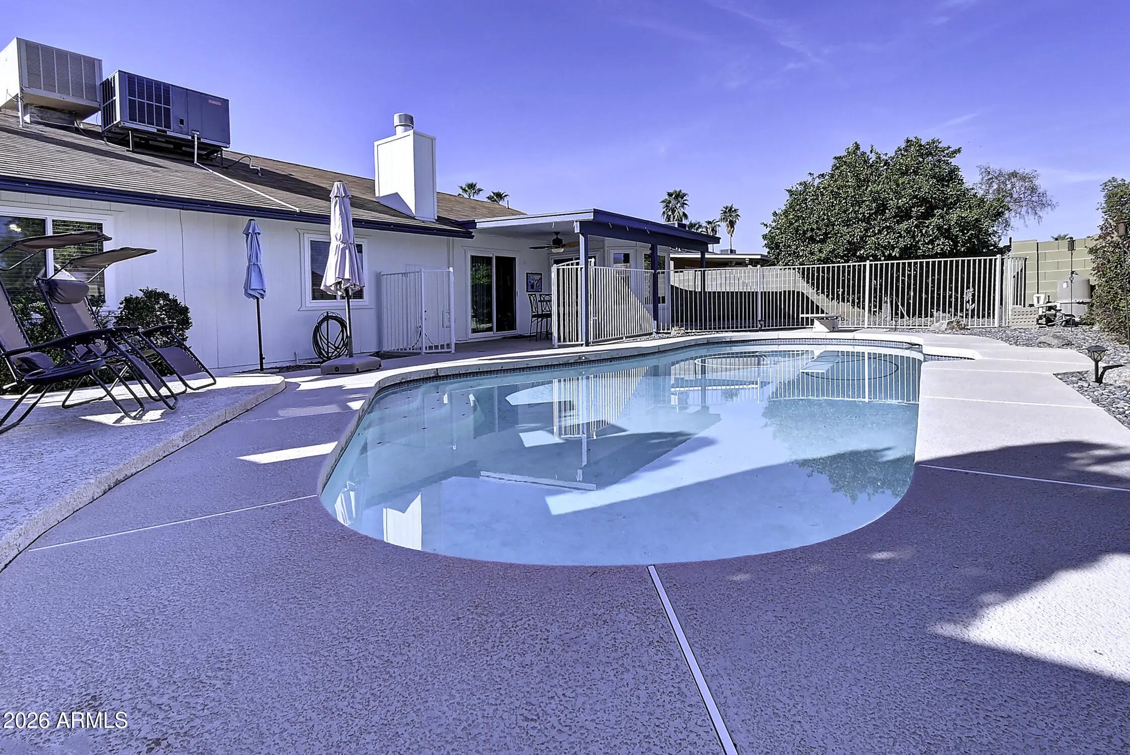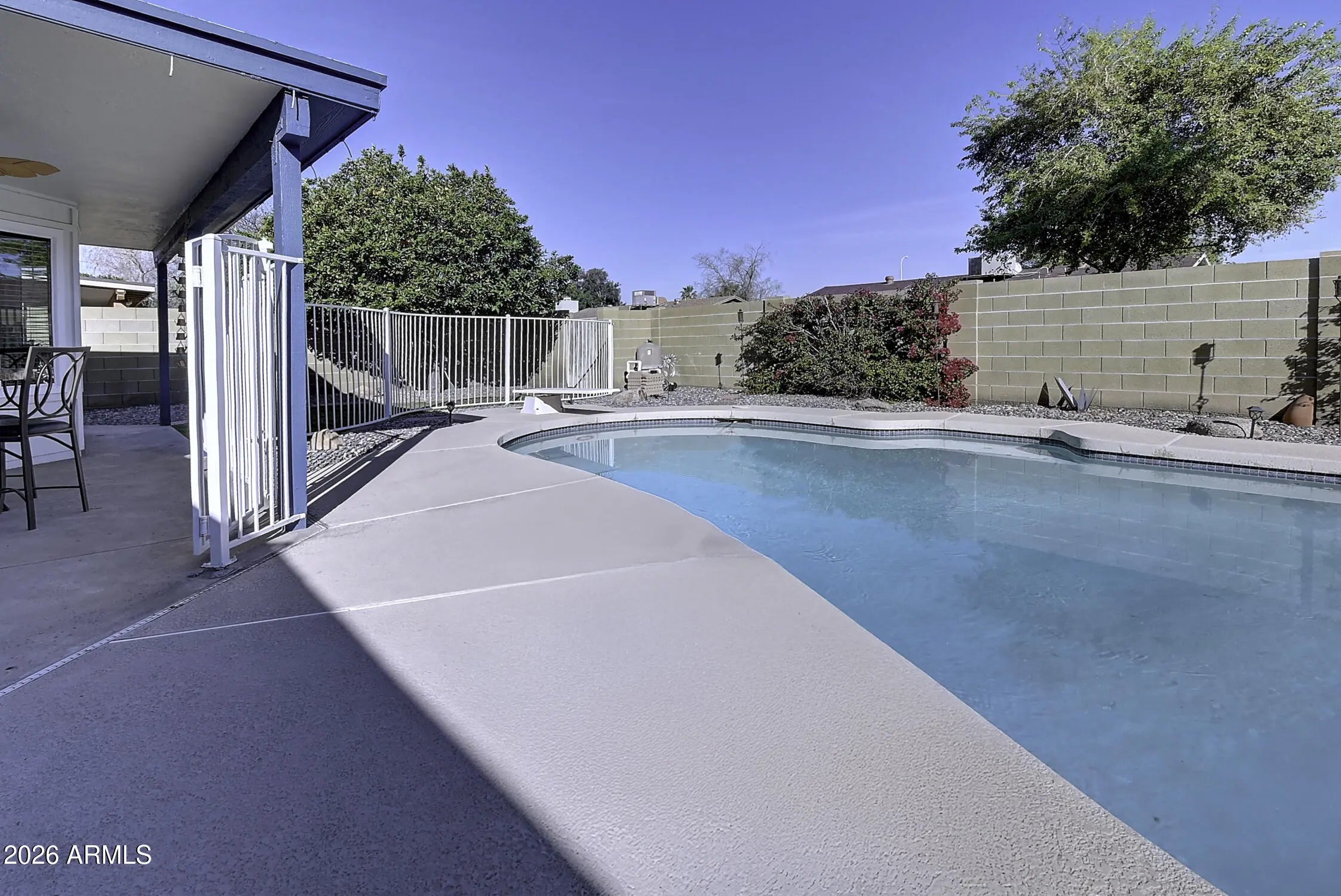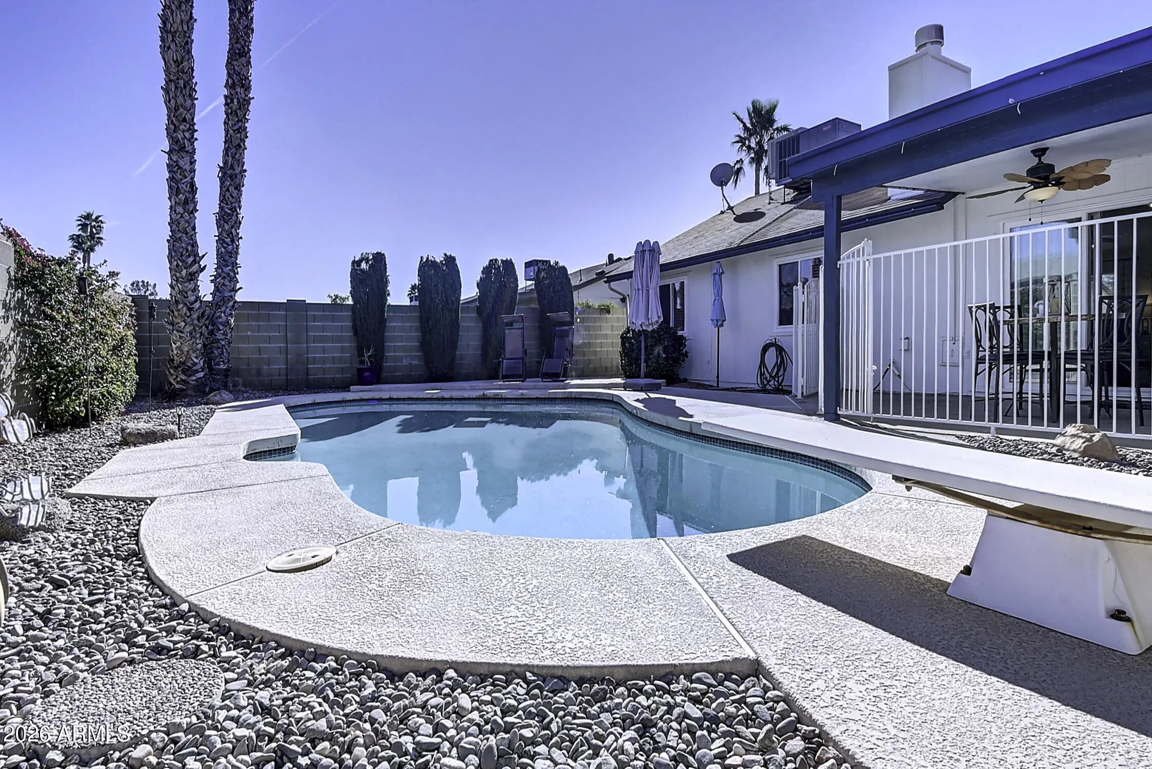 Welcome to this fantastic single-level pool home in the heart of Chandler! At 1,395 sq ft, this 3-bed, 2-bath provides the extra elbow room that is hard to find at this price point. Inside, the open floor plan features updated windows, crisp tile flooring throughout, and a cozy gas fireplace perfect for gathering. Step out back to a private oasis on a North/South facing lot. The low-maintenance yard showcases a rare diving pool to keep you cool all Arizona summer long. Located just minutes from the vibrant dining of Downtown Chandler, with fast access to the 101 and top-rated schools. This hits the ultimate checklist: the right size, the right updates, and a private pool.