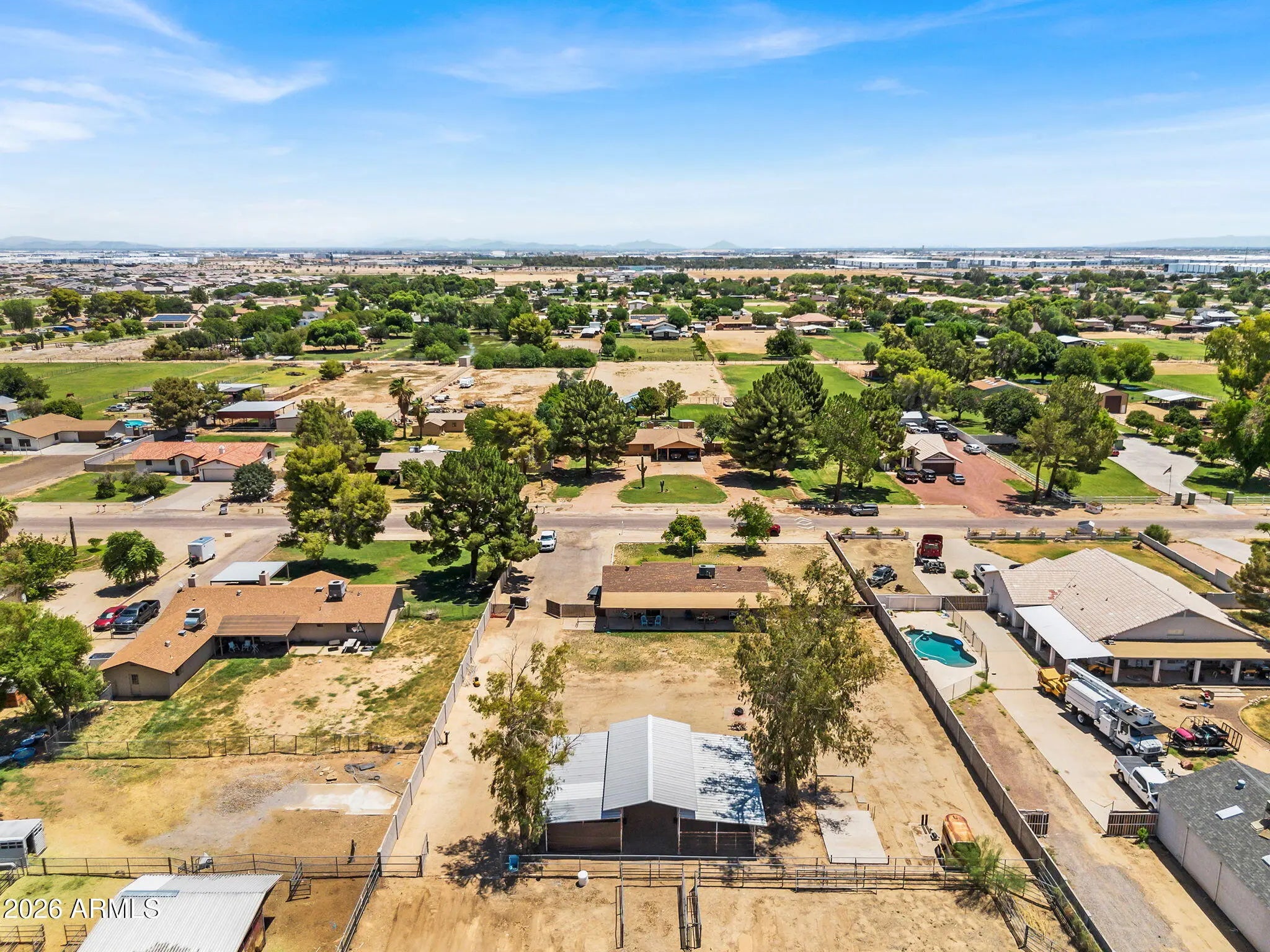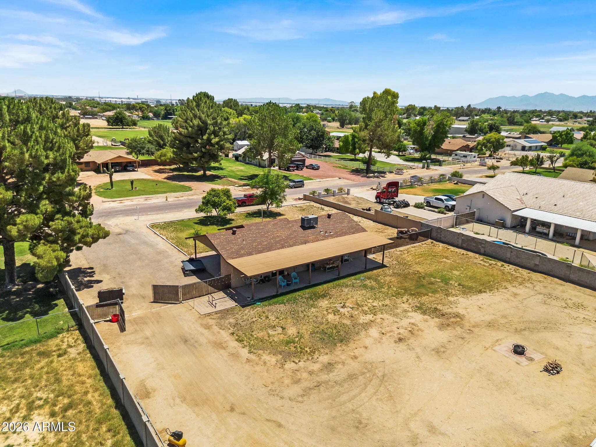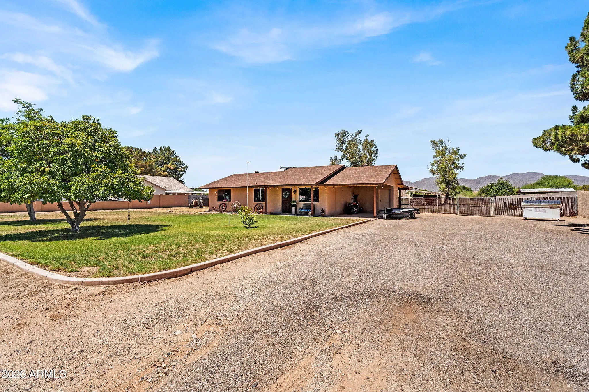 Beautiful 2-acre horse property in Waddell featuring stunning mountain views. The spacious home layout includes a functional kitchen with a center island and beautiful granite countertops. The large covered patio is ideal for taking in Arizona's breathtaking sunsets. The expansive yard and existing animal corrals make it perfect for livestock, horses, or anyone seeking land with flexibility. This amazing property offers valuable space and opportunity in a quiet, desirable location. Bring all your animals and all your toys, there's room for it all!