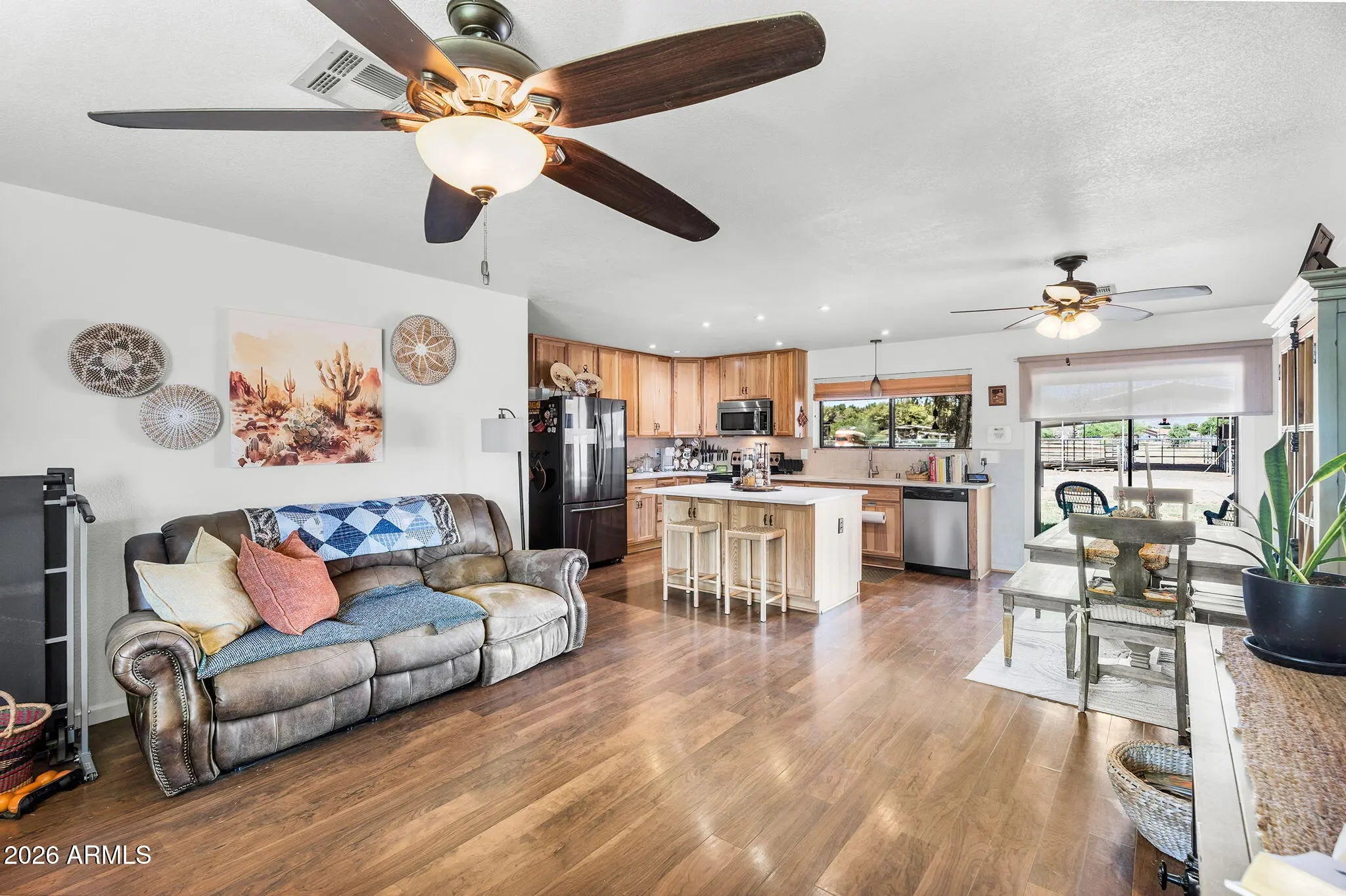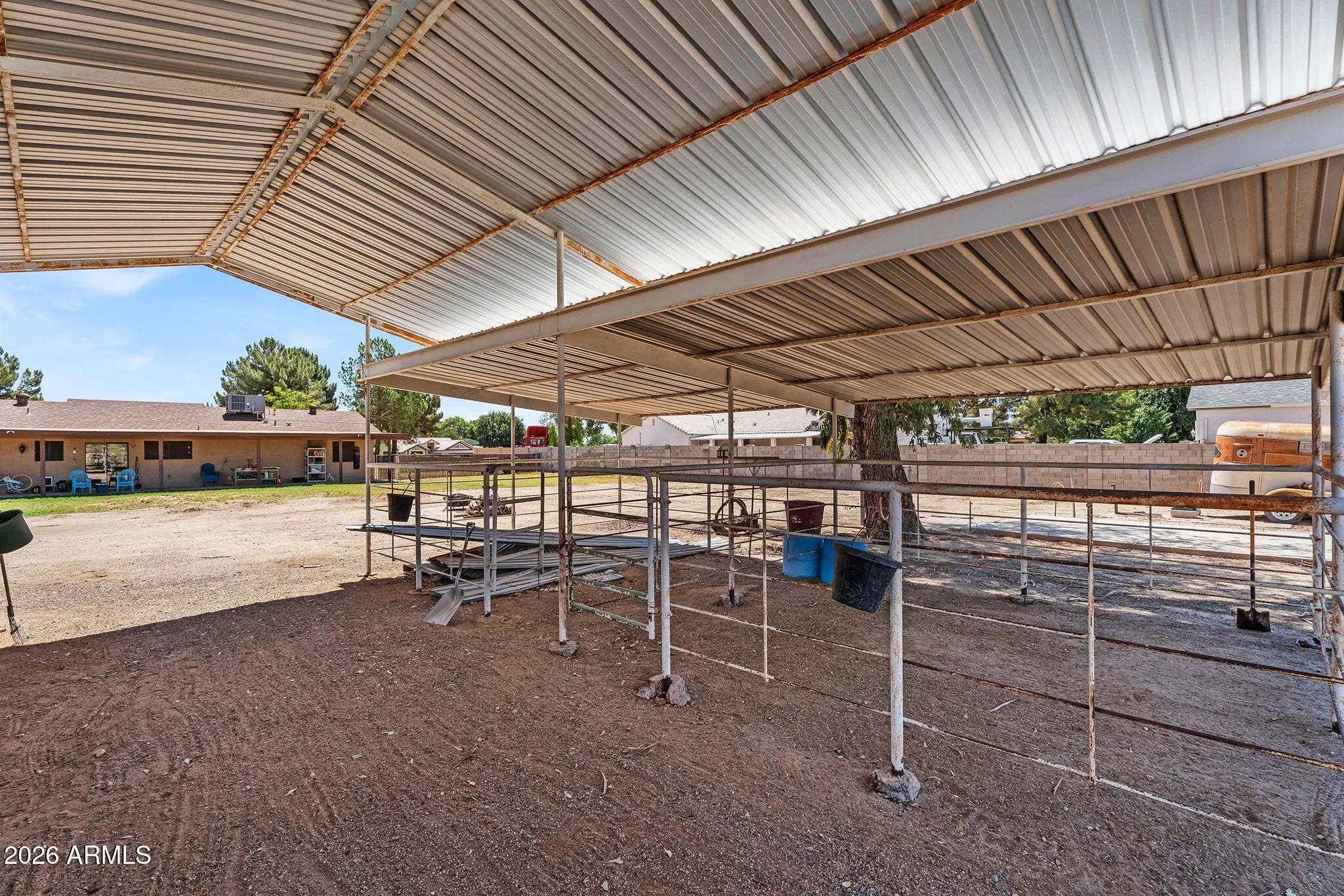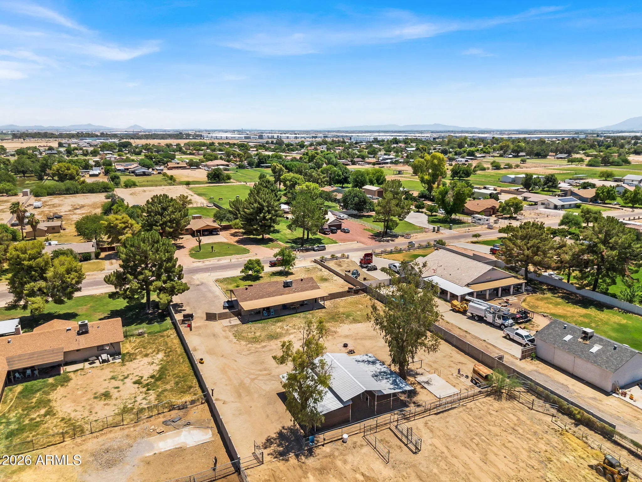 Beautiful 2-acre horse property in Waddell featuring stunning mountain views. The spacious home layout includes a functional kitchen with a center island and beautiful granite countertops. The large covered patio is ideal for taking in Arizona's breathtaking sunsets. The expansive yard and existing animal corrals make it perfect for livestock, horses, or anyone seeking land with flexibility. This amazing property offers valuable space and opportunity in a quiet, desirable location. Bring all your animals and all your toys, there's room for it all!