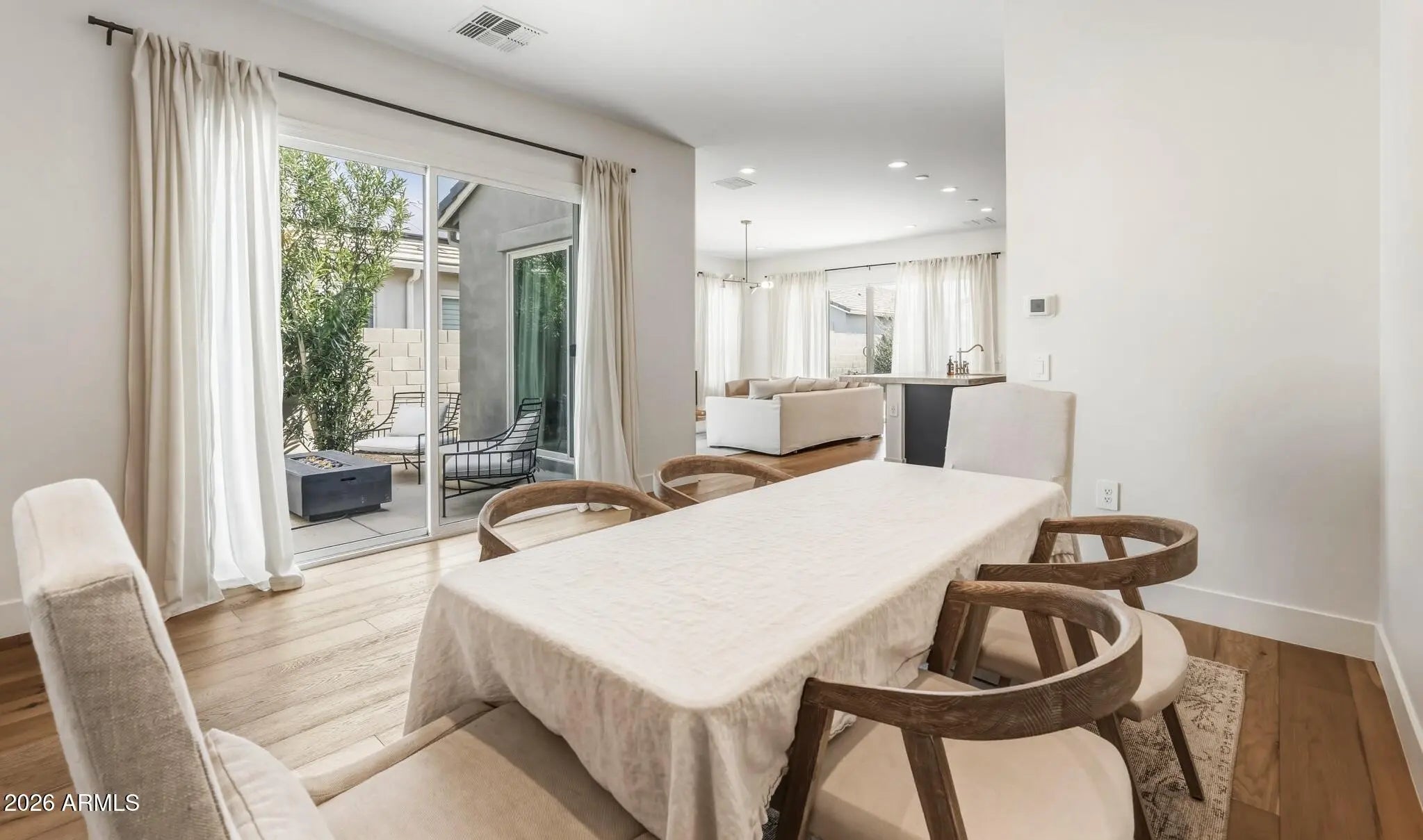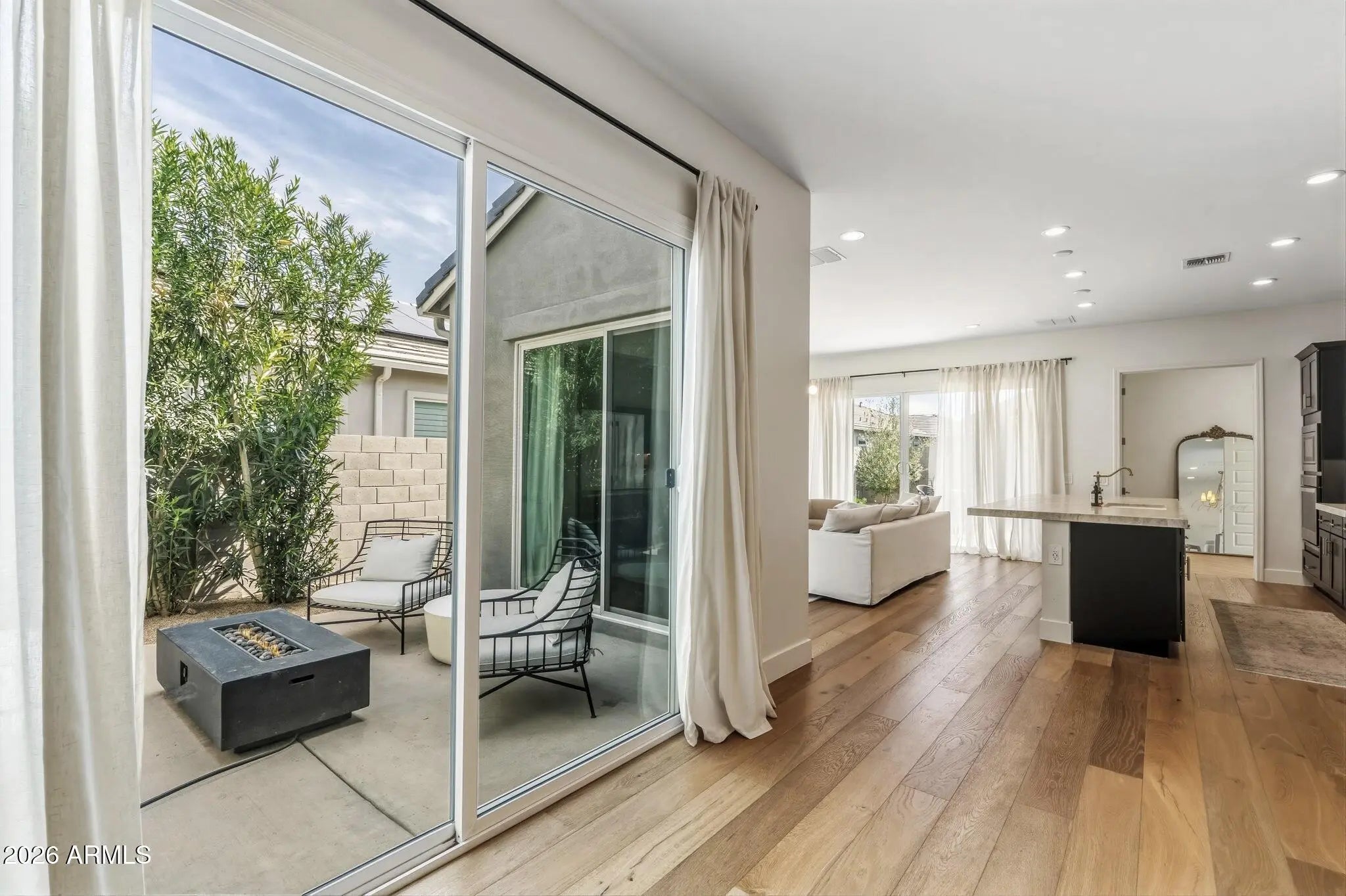 Beautifully upgraded and move-in ready, this single-level 3-bedroom, 2-bath home offers 2,165 square feet of refined living in a residence with desirable north/south exposure. The open-concept layout is filled with natural light and features engineered hardwood flooring and custom Taj Mahal quartzite countertops that add warmth and elegance throughout the main living spaces. The kitchen is both stylish and functional, complete with soft-close cabinetry, a gas cooktop, and seamless flow into the dining and living areas, perfect for everyday living and entertaining. The oversized primary suite offers a private retreat with custom herringbone wood flooring, a spacious walk-in closet, and a glass-enclosed shower. A thoughtful design allows direct access from the primary closet into the oversized laundry room for added convenience. Designed for modern living, the home is fully integrated as a smart home with lighting, door lock, garage door, doorbell, and HVAC controlled from your mobile device, and is wired with fiber optic internet. The spacious 2.5-car garage provides extra storage or workspace. Outside, custom landscaping with irrigation creates effortless Arizona living, featuring turf, mature greenery, olive and lemon trees, and a private courtyard lined with tall oleanders. Located in sought-after North Peoria near top-rated schools, dining, shopping, and outdoor recreation, this beautifully maintained home delivers upgraded finishes, spacious layout, and effortless Arizona living.