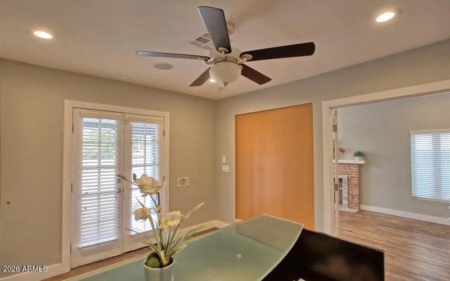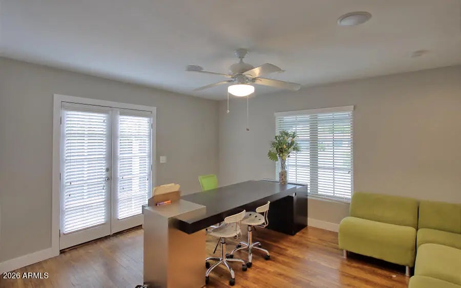 Historic House converted to a Modern office space. Nicely remodeled with beautiful refinishing touches. Large reception area w/counter, ceiling fans, & recess lighting. Large conference room off of reception area consists of fireplace, several windows, private entry, & high ceilings. Each office has its own window with natural lighting. Office 2 has both hall entry private entrance with French doors. Office 3 has its own hall entrance & private entrance. Upgraded full kitchen plus additional kitchen w/sink, oven, microwave, and fridge. Portion of the office can be subleased to separate tenant. Suite B includes its own private bathroom, kitchen & finished basement with windows. Also includes Private patio/courtyard and separate parking with RV Gate.