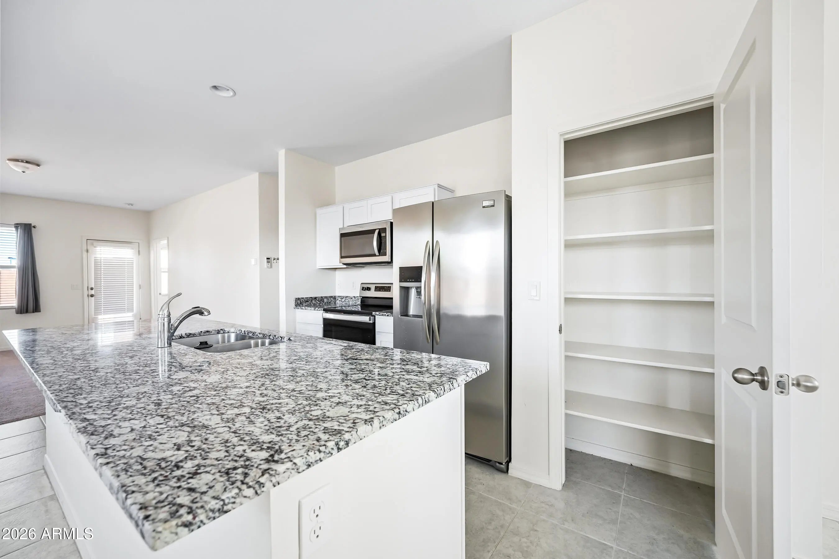Practically Brand New Home!! Huge lot with over sized back yard this delightful home on a desirable corner lot adjacent to a community walking path! Amazing community pool and water slides! Lovely curb appeal, 2-car garage, and well-kept exterior set the tone for what awaits inside. The open layout offers a comfortable flow, with soft carpet in the living area. The wide-open kitchen features granite counters, stainless steel appliances, white cabinets, a pantry, and an island with a breakfast bar. The primary bedroom includes a walk-in closet and a private bathroom, offering a peaceful retreat. Easy-care backyard, complete with a covered patio and plenty of play space. Tour Today!