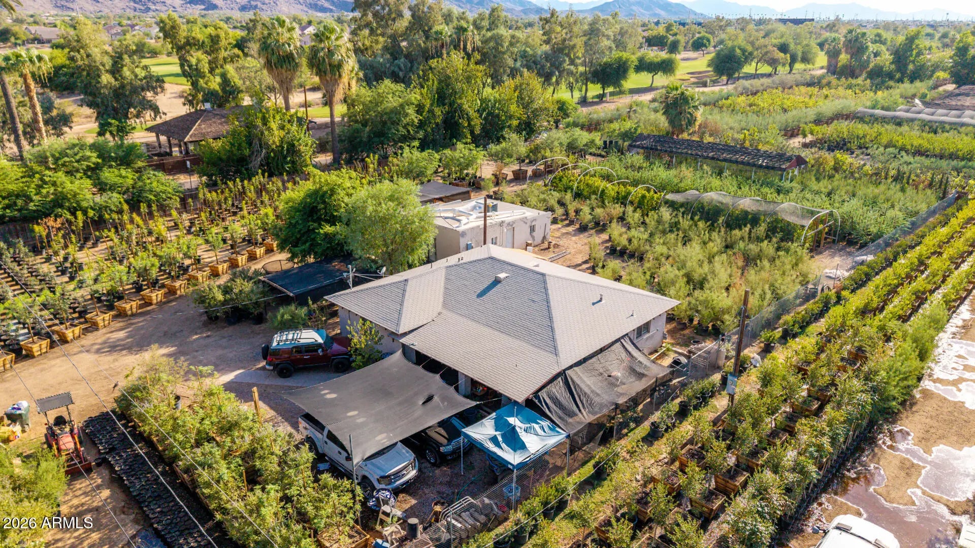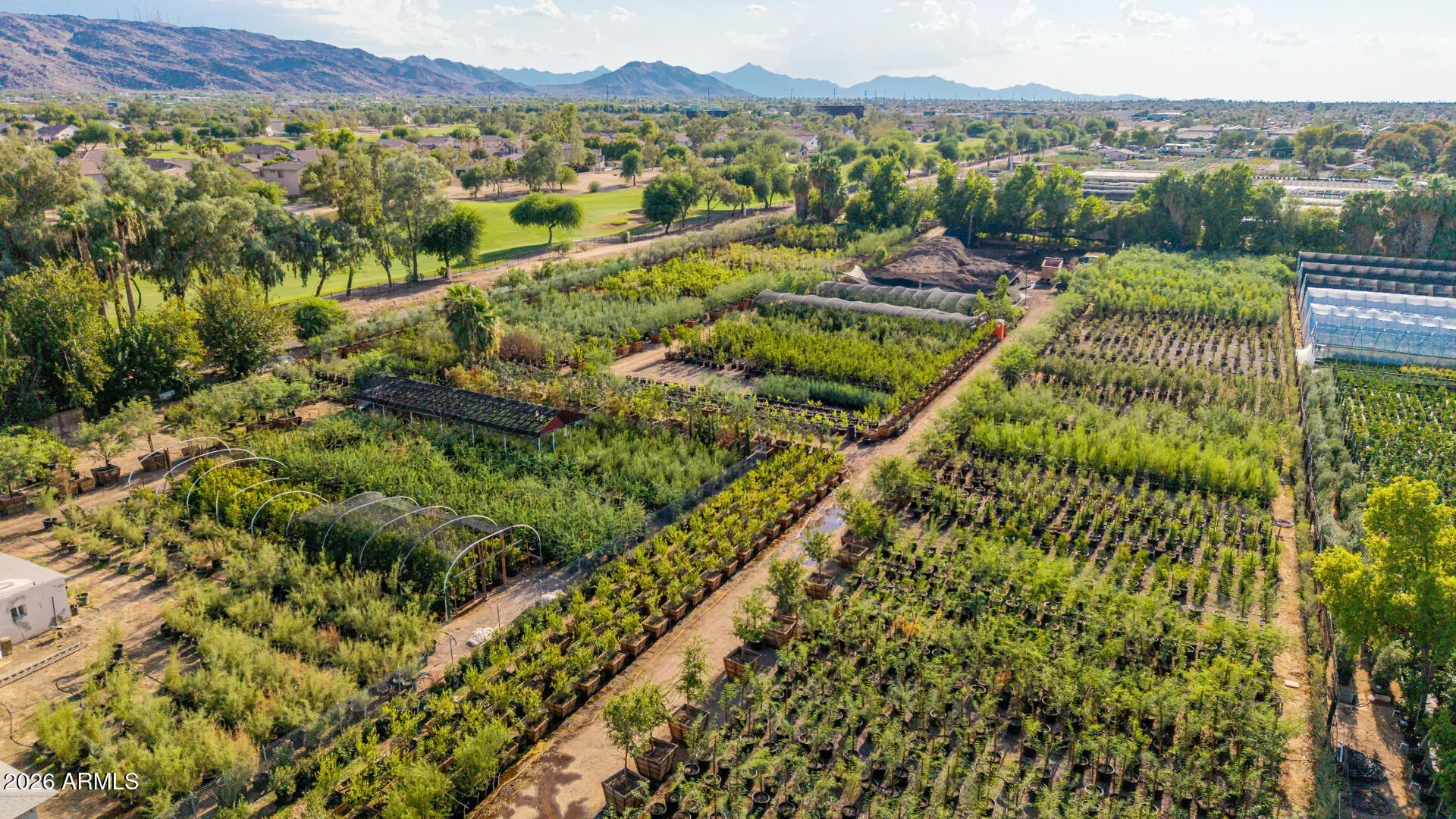 Seize a rare opportunity to own ±4.75 prime acres just a few miles south of Sky Harbor Airport, offering an exceptional blend of privacy, accessibility, and long-term potential. Located just north of Legacy Golf Resort's 1st and 18th fairways, this property includes two homes: the larger is 1,443 SF and the smaller is 770 SF. It is an irrigated, fully fenced, rectangular parcel which enjoys a quiet, secluded setting while being minutes from I-10, I-17, SR 143, Downtown Phoenix, Tempe, and Scottsdale. Currently leased to an established nursery through September/October 2027, with annual rent escalations, it provides immediate income and future upside. Surrounded by nurseries, single-family homes, and resort amenities, this property is ideal for continued nursery operations, residential... redevelopment, or mixed-use (buyer to verify zoning and uses with the City of Phoenix). Golf course adjacency adds prestige, while irrigation rights offer valuable water security. With Phoenix's strong population growth, limited central land inventory, and proximity to major economic hubs, the investment appeal is unmatched. Whether continuing current use, developing custom residences, or holding for appreciation, this is a rare infill opportunity in a fast-growing metro. Note: Plants, trees, irrigation systems, and piping are not included in the sale. (This property also listed with MLS #6906772)