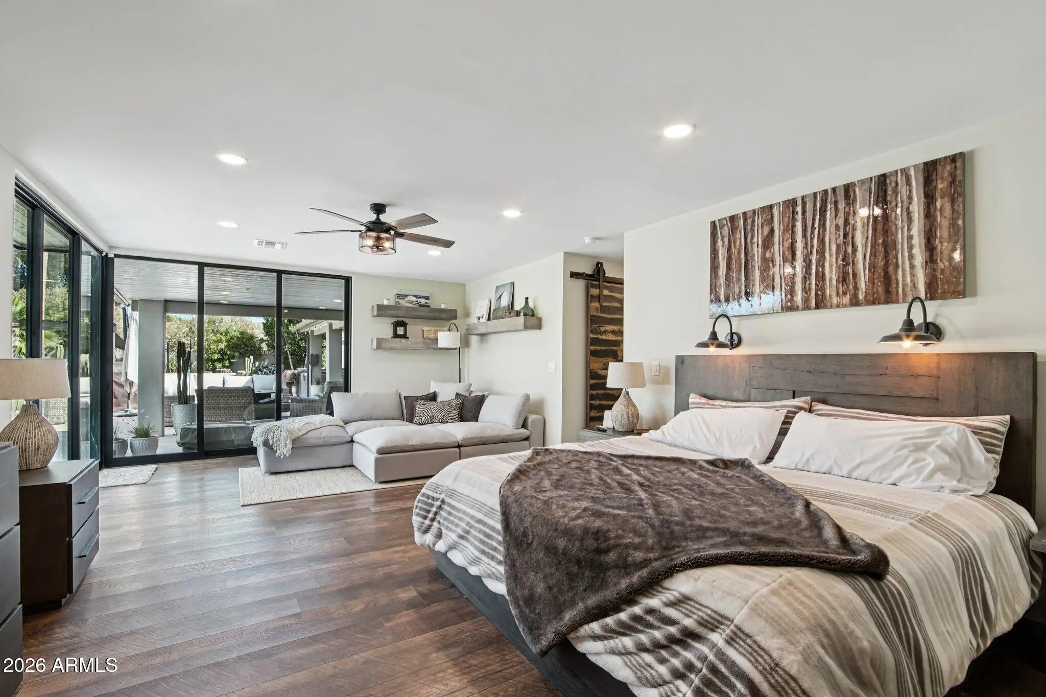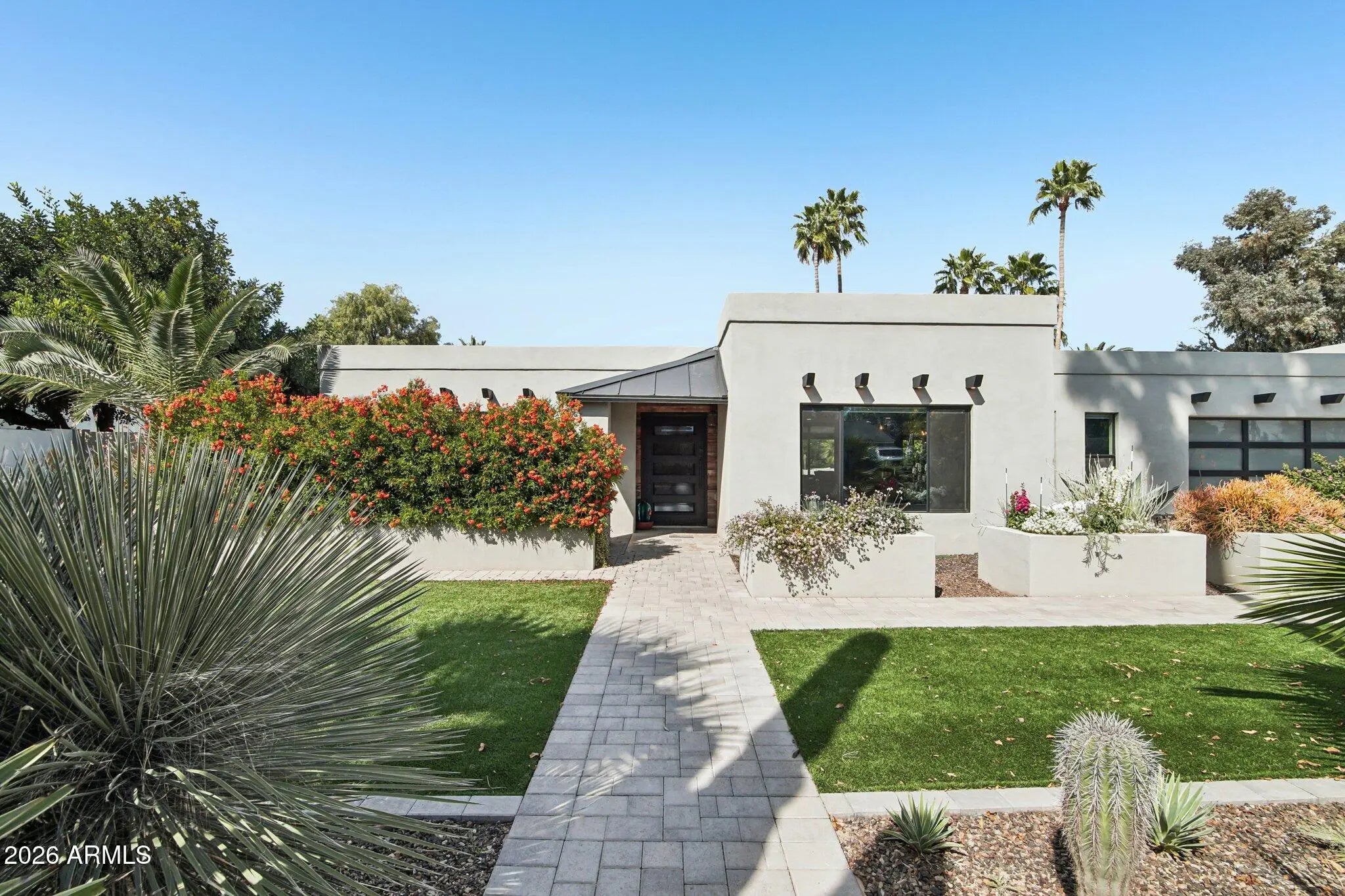 PRIME Scottsdale Location w/ NO HOA on a huge lot! Stunning fully remodeled single-level home offering the perfect blend of modern luxury & resort-style living. This beautifully updated 3-bedroom plus office, 2.5-bath residence features an oversized climate-controlled 3-car garage with epoxy floors, a brand-new roof, and exceptional curb appeal with a paver driveway & walkway. The striking entry welcomes you with a custom 44'' iron front door with rain glass and elegant custom soffit lighting on an automatic timer, creating a dramatic impression day or night. Inside, the open and thoughtfully designed floor plan showcases high-end custom finishes throughout. The chef's kitchen opens seamlessly to the family room and features waterfall-edge quartz countertops, rich dark mahogany cabinetry, slate stainless steel appliances, and an induction cooktop--perfect for both entertaining and everyday living. The primary suite is a true retreat, highlighted by a dramatic glass wall overlooking the resort-style backyard, creating a seamless indoor-outdoor connection. Step outside to your private paradise featuring a pebble-tech pool, artificial turf, pergola, and beautifully designed outdoor living spaces ideal for relaxing or entertaining. Ideally located in the highly desirable Scottsdale "Magic Zip Code" 85254, just minutes from Kierland Commons, Scottsdale Quarter, Desert Ridge Marketplace, world-class golf at TPC Scottsdale, and quick access to the Loop 101 & Sky Harbor Airport.