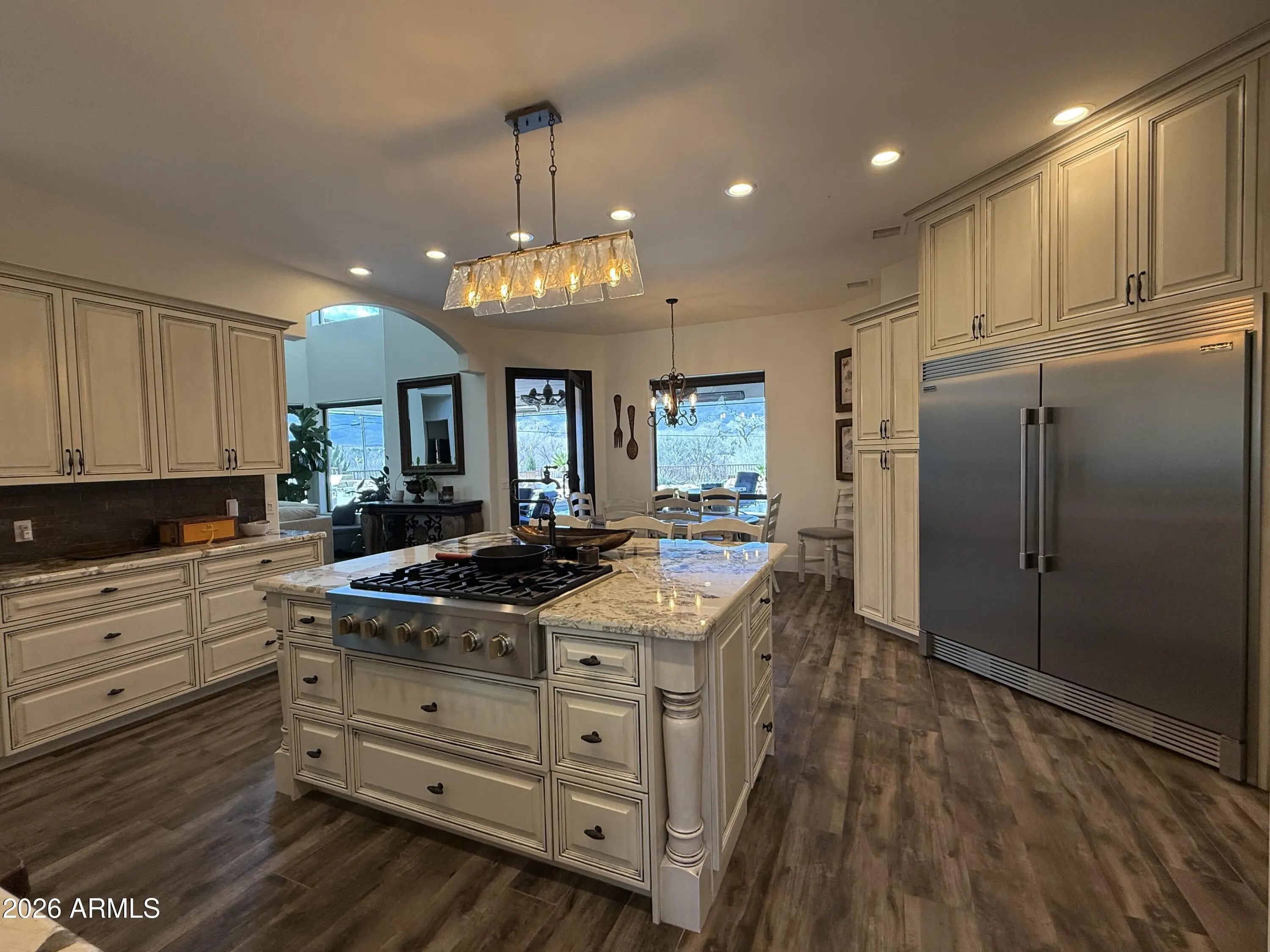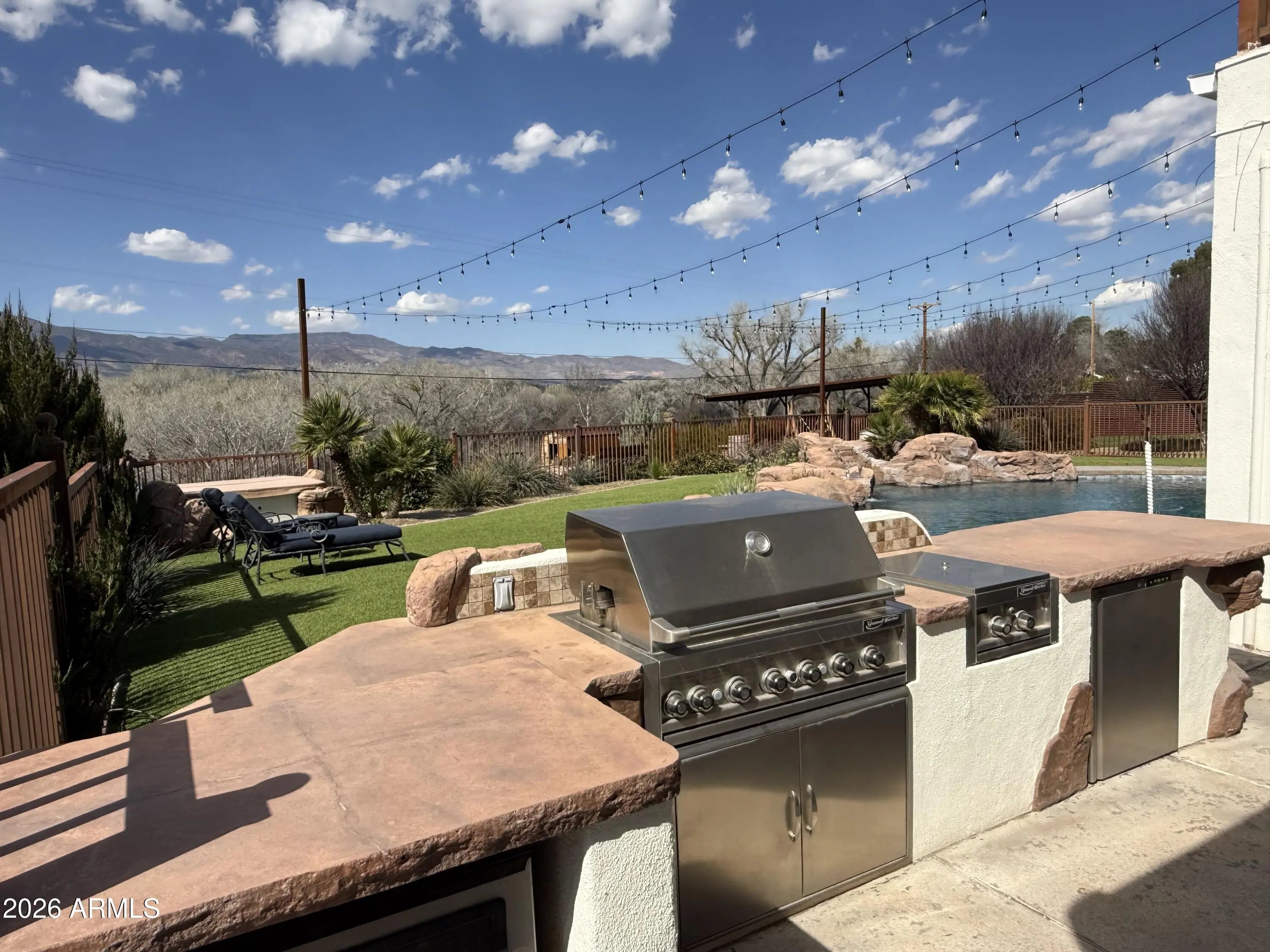 Riverside Luxury Awaits Experience the pinnacle of Arizona living in this exclusive 4,975-square-foot estate, where the tranquil Verde River flows directly through your own backyard. Situated on a private 2.5-acre lot, the grounds are a lush, meticulously landscaped sanctuary featuring vibrant green lawns, fruitful nut trees, and flourishing vines. While the home sits elegantly on a bluff safely elevated from the flood plain, the backyard features a series of stunning terraced gardens that lead you down to the water's edge. Inside, the home defines sophistication with a chef's kitchen and a palatial Master Suite, both boasting natural stone countertops and premium, highly upgraded fixtures. The master retreat offers a spa-like experience with a massive walk-in closet, a full master bathroom, and seamless direct access to the pool area. Designed for both productivity and wellness, the expansive floor plan includes four spacious bedrooms, a private office, and a dedicated gym. From the grand, gated entry to the elegant paver drive, every detail of this property radiates prestige and peace. The indoor kitchen is large with significant working space around the island. Out doors there is a Wood Fired Kitchen and a Propane heated grill. The property is filled with detail luxury at every corner. Heating and Cooling was updated in 2022 with Bosh Inverter Technology. The seer Rating is truly 20 SEER and the highest rated Bosh equipment available for this application.