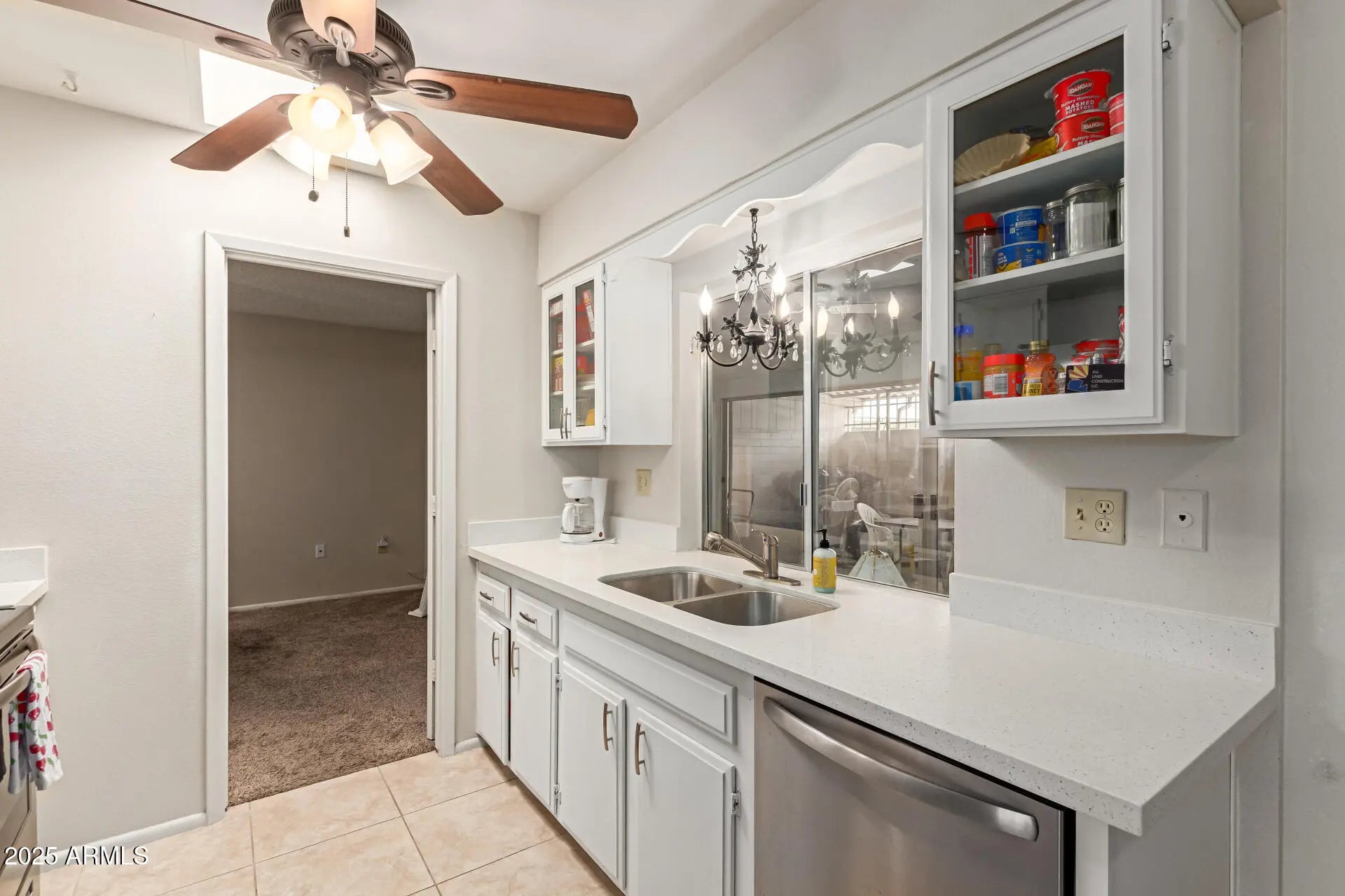 Enjoy comfortable and low-maintenance living in this delightful home in Sun City! Step inside to see the bright layout featuring carpet flooring, tile in all the right places, and neutral tones. The galley kitchen boasts white cabinetry, quartz countertops, and built-in appliances. New roof installed in 2023 with 3 new skylights. You'll love the two spacious bedrooms and bathroom. The secondary room has sliding doors to the sun room, where you can unwind after a long day, and is a great spot for entertaining guests, too. Don't forget to visit this welcoming adult community's pool, spa, golf, workout facility, clubhouse, tennis court, and other amenities to fill your days with fun! What's not to love? Make it yours!