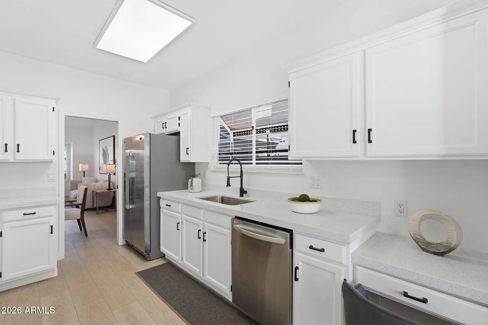 Beautifully updated in the coveted Cactus Corridor, this inviting home blends comfort with refined style. Thoughtfully upgraded throughout, the interior features gorgeous French oak flooring, quartz kitchen countertops, and stainless steel appliances. Spacious rooms offer generous layouts and walk-in closets, creating a sense of openness and ease. Recent improvements include updated lighting, luxury wood look flooring, new HVAC (2024), new carpet in the bedrooms (Feb 2026) and a new water softener (Feb 2026). Outdoors, a sparkling pool and private backyard with no neighbors behind provide a peaceful retreat--perfect for relaxing or entertaining. A move-in ready opportunity in one of Scottsdale's most desirable locations.