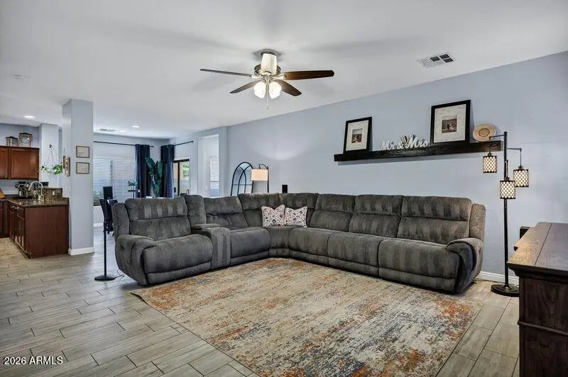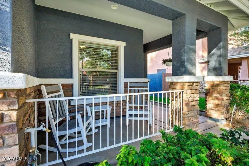 Welcome to this well maintained single level home in the heart of Gilbert's highly sought-after subdivision of Highland Groves at Morrison Ranch! Located on a quiet cul-de-sac street, this property offers exceptional curb appeal with its charming front porch, mature shade tree, and the classic Morrison Ranch aesthetic that makes this community so beloved. Inside, you'll find a popular great-room floorplan featuring 3 bedrooms plus a den/office--easily used as a 4th bedroom. The split layout places the primary suite privately away from the secondary bedrooms, creating a comfortable and functional flow. The kitchen is designed for both style and convenience, offering granite countertops, upgraded cabinetry, stainless steel appliances, and a seamless connection to the main living area. The home has been thoughtfully cared for, with details that make it truly move-in ready. The primary bathroom has been beautifully transformed into a modern wet room, showcasing an oversized shower, upgraded vanity, and abundant storage--an impressive retreat you won't find in many homes. Step outside to your private backyard, complete with a covered patio, lush green grass, and mature, easy-maintenance landscaping--perfect for relaxing evenings or weekend gatherings. Living in Morrison Ranch means enjoying a lifestyle unlike anywhere else. This community is known for its tree-lined streets, white picket fencing, greenbelts, walking paths, playgrounds, and stocked fishing lakes. It's also home to one of the area's most charming holiday light displays, adding to the neighborhood's year-round appeal. With a prime Gilbert location, you're just minutes from San Tan Village, Cactus Yards, the Riparian Preserve, top-rated schools, dining, shopping, nightlife, and major highways. Even your mailbox is conveniently located at your own home--no cluster boxes here! This home offers the perfect blend of comfort, convenience, and community charm. Location, lifestyle, and curb appeal all come together beautifully--don't miss this one, it won't last long!