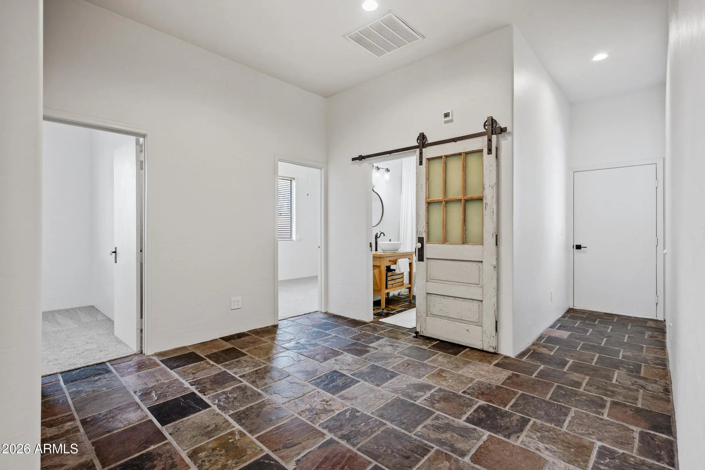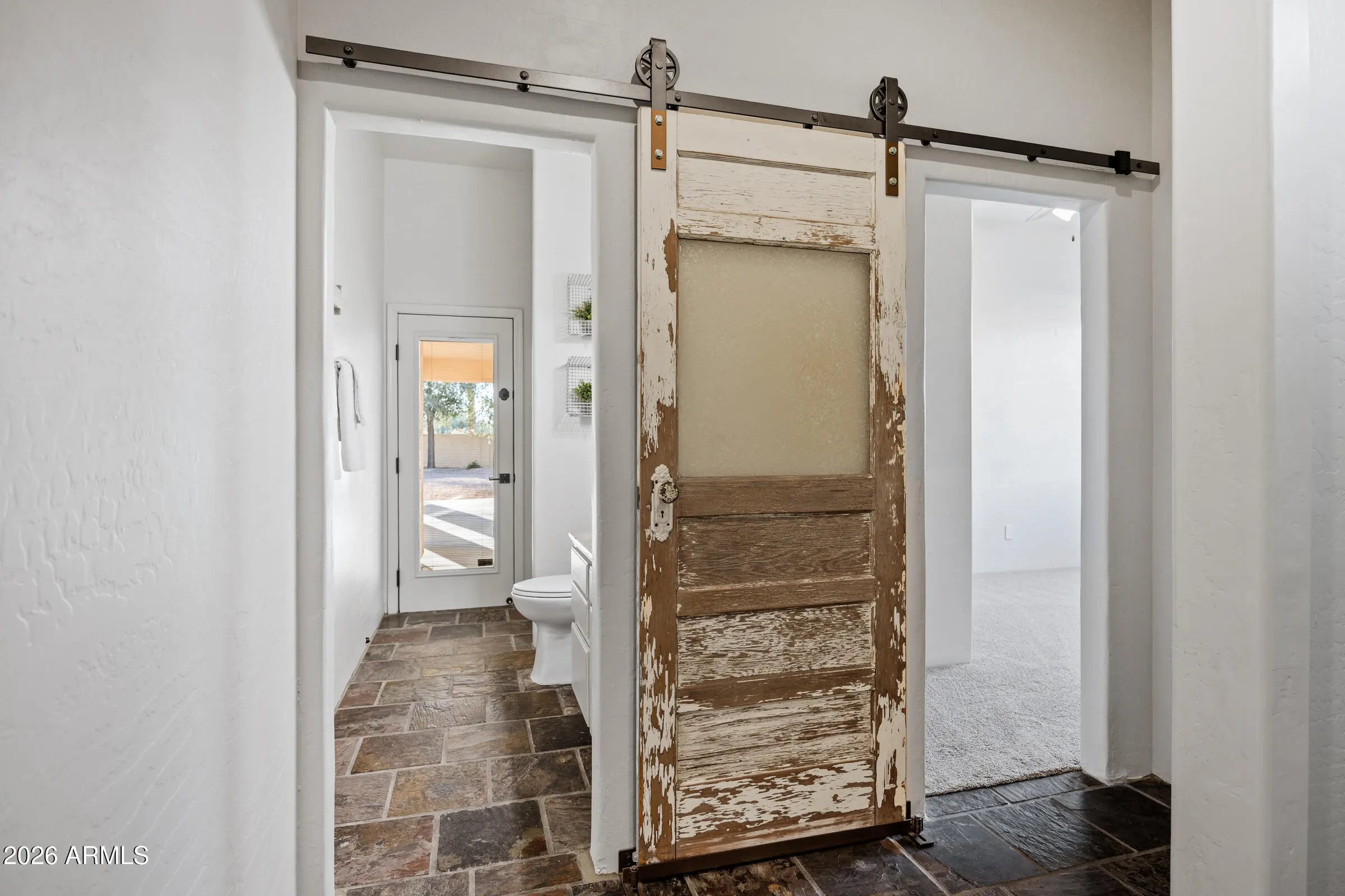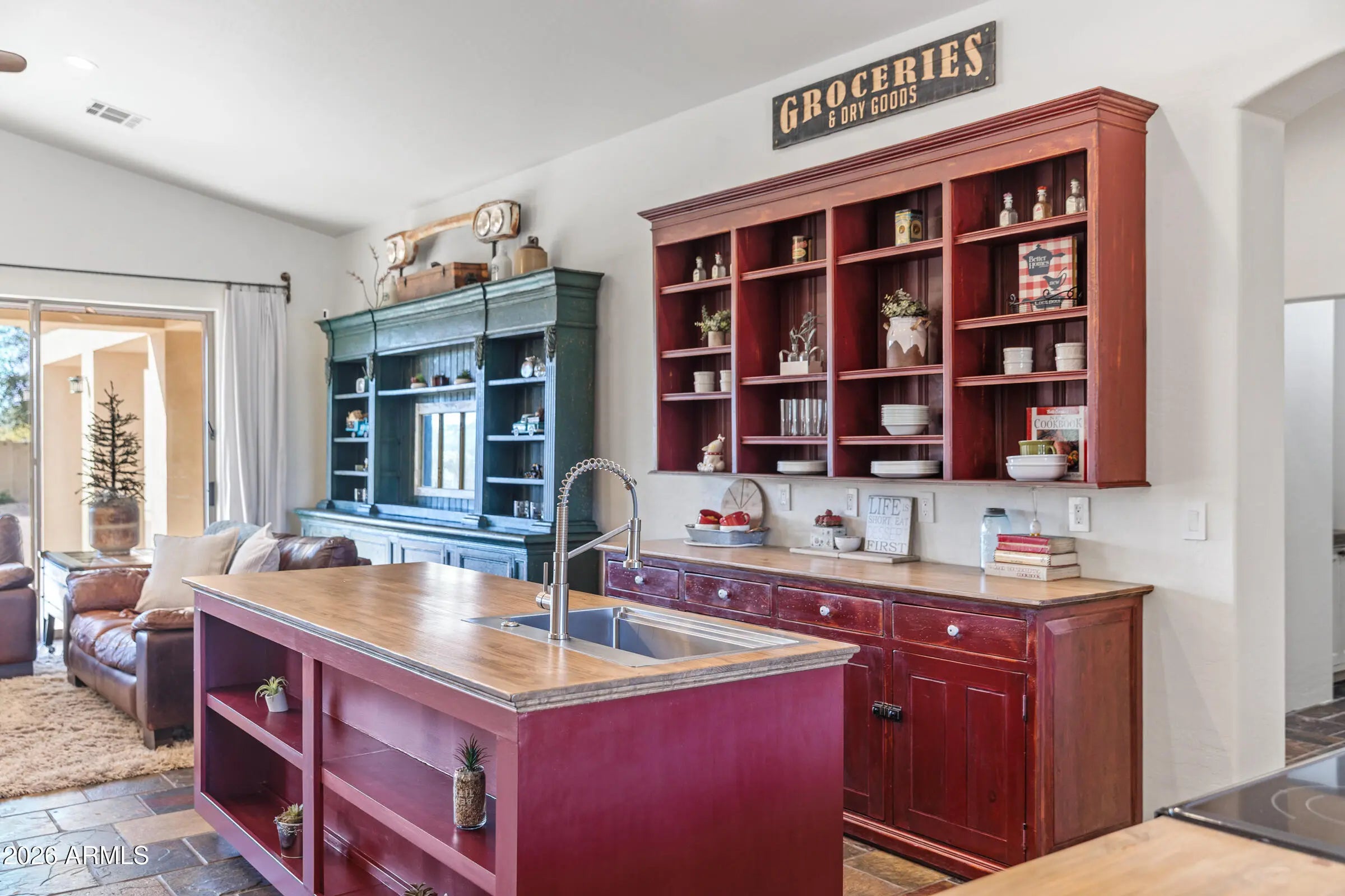 *A Slice of Country Living | Conveniences of the City * Situated on just shy of a ½ acre (.44 lot), this perfectly placed estate is quietly tucked away in Will Rogers Equestrian Ranch Community. This gorgeous ranchette screams ''country life in the city'' where desert views, stunning sunsets, direct access to riding trails, and the BEST of amenities the vibrant Town of Queen Creek offers, come together. From the moment you arrive, this home's stunning curb appeal highlights welcome home. From its sprawling driveway and 3 car gar that allow for ample parking, to copper details that adorn its façade, to the personal entrance & walkway that beckons you to the front patio for morning & evening reflection, this home delivers convenience, comfort, and relaxed living. Step inside this single story, 4bd 3ba + FlexRm home to find a thoughtfully designed open-concept layout that showcases soaring 10' ceilings with vaulted accents, elegant natural edge slate flooring, newly installed neutral carpet, and vintage farm style barn doors that add warmth and architectural charm. The inviting great room is anchored by a custom Dutch Lap Entertainment center with built-in storage, creating a polished yet comfortable gathering space for relaxation. The Kitchen is pure delight, both in its vintage charm & functional space perfect for executing your favorite meal. Its stainless appliances (yes, the fridge stays), abundant storage, expansive pantry, warm wood details, open shelving, and rustic style promote a chef's creativity, enjoyment & entertaining. A split floor plan ensures privacy for all, with 3bdrms & Private Guest Bath (the 2nd bathrm) on one side of the home, and an expansive Primary Suite with sitting room/work-out space, patio with private access, walk-in closet, garden tub, and spa-inspired step-in travertine shower. Step outside to your private backyard oasis where the extended covered patios and breezeway, along with the 3rd bath lead to the impressive 24x44 RV garage/workshop with 240V service creating easy indoor-outdoor living. The sparkling pool, complete with a variable-speed programmable pump, is surrounded by earth toned pavers/sitting area, mature Ocotillo landscape, all which create privacy, and a tranquil, resort-style setting. Additional highlights include an RV gate with huge side yard, newer outdoor ceiling fans, & electric sun screens. Will Rogers Equestrian Ranch Community stands unrivaled due to its unique offerings to its Residents. All residents will enjoy incredible resort-style amenities including a community pool, clubhouse, various sport courts, & firepit gathering areas. Those residents who are equestrian enthusiasts have option to utilize the private, and exclusive to residents, horse boarding facility, riding arena, and turn-out areas, along with the ability to store your RV/Horse Trailers in resident only parking areas. Don't sleep on this beautiful estate & community - yes, you can have it all !