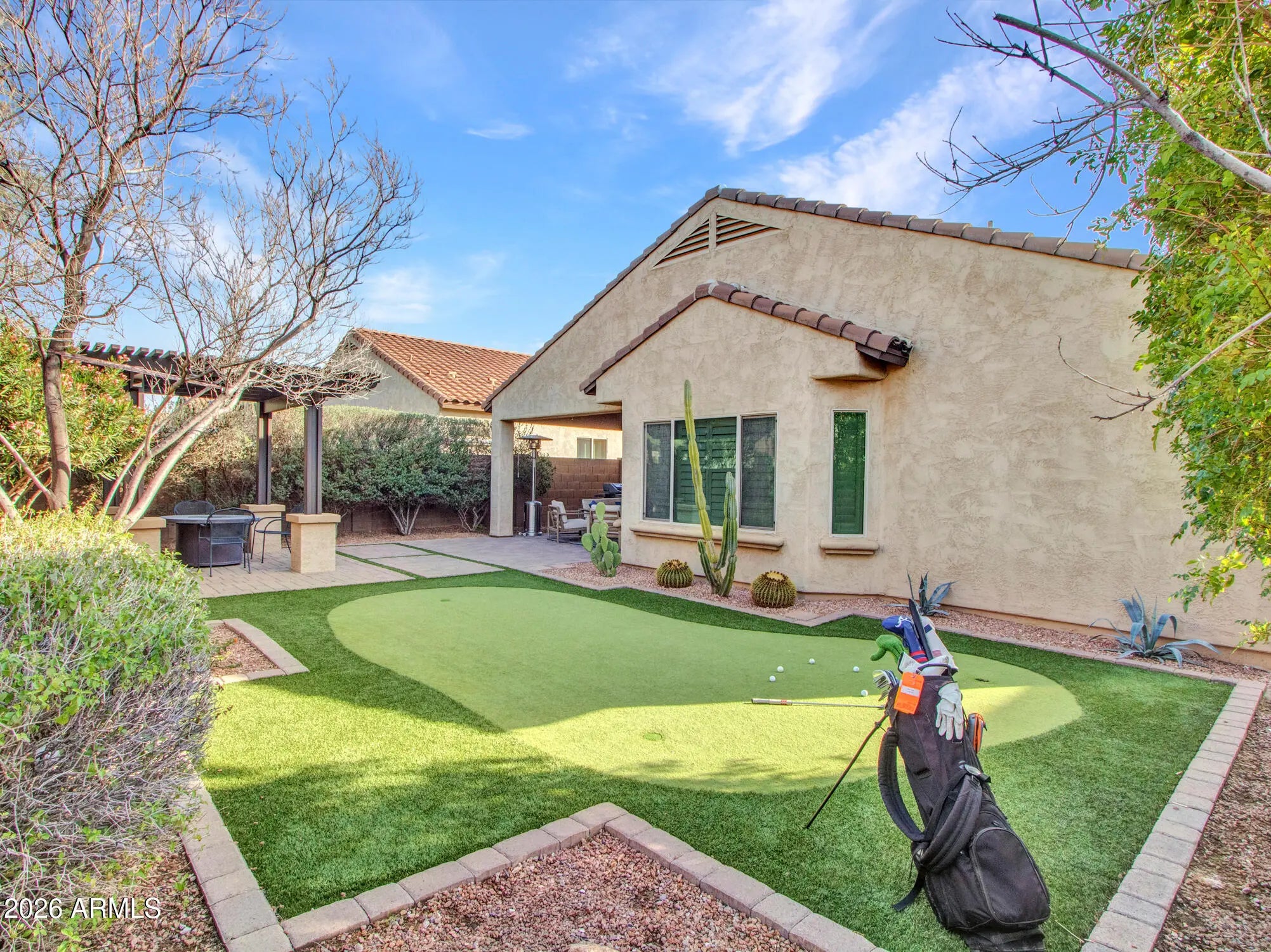 Single-Story Pulte Home in prime North Phoenix near the rapidly expanding TSMC tech corridor and the $7B Halo Vista development. Built in 2016 and located in the desirable La Solana community, this home offers 4 true bedrooms plus a large den with a spacious open-concept floor plan ideal for modern living and entertaining. Quality features include a striking iron and glass front door, beautiful tile flooring, granite countertops, modern cabinetry, walk-in pantry, and a gas range in the kitchen-offering both style and functionality with plenty of workspace and storage. The private, low-maintenance backyard is designed for entertaining with a turf putting green, pergola seating area, and a large covered patio-perfect for relaxing evenings or hosting friends and family. Located in North Phoenix 85085 just minutes from TSMC, Halo Vista, I-17, Loop 303, Norterra shopping, dining, and hiking trails, placing homeowners in the center of one of the Valley's fastest-growing technology and employment corridors.